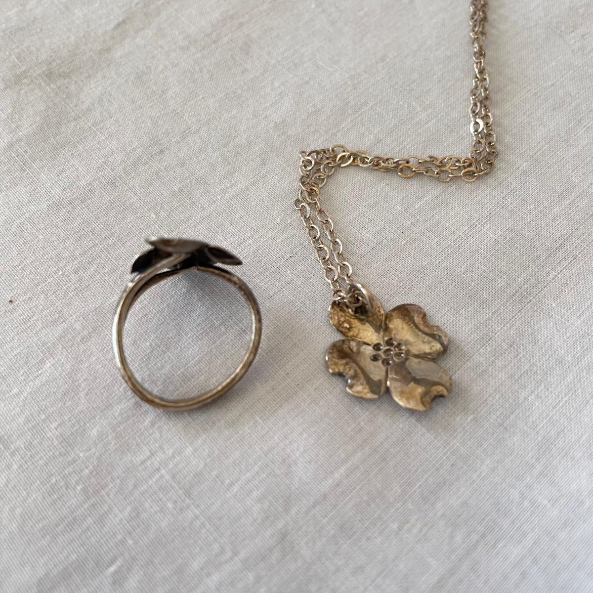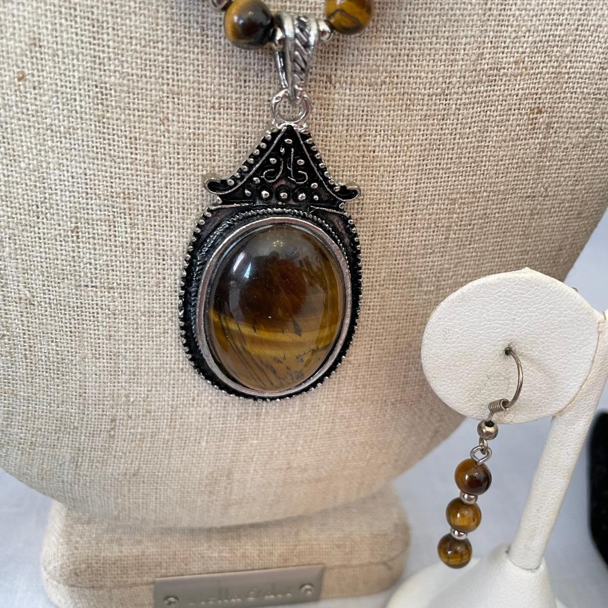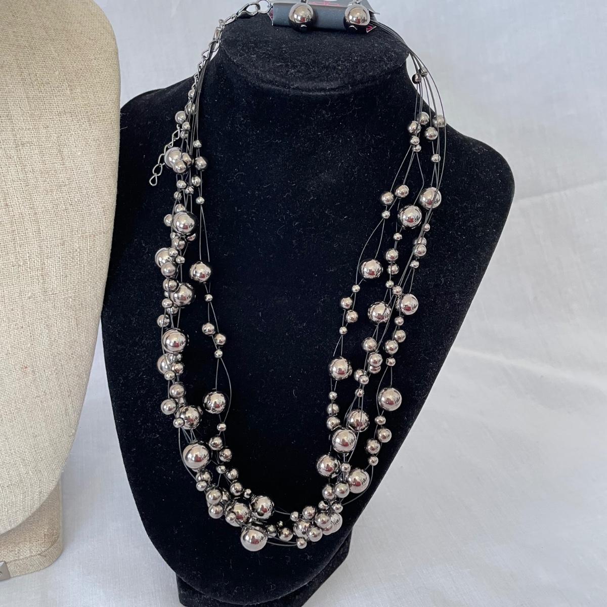 Three pretty jewelry sets. There is a vintage necklace and ring set that is stamped "Nye" and "Sterling" and two dangle earrings and necklace combos. The silver bead set appears to be unworn. See images. Shipping available. All sales are final. No returns or refunds. Please bid accordingly.