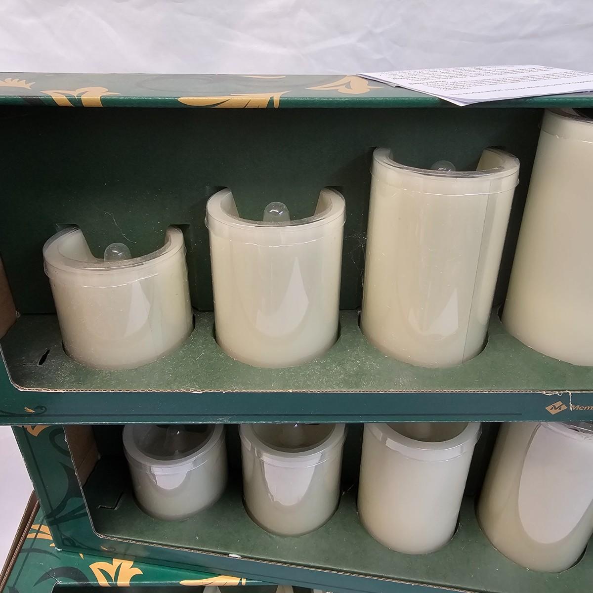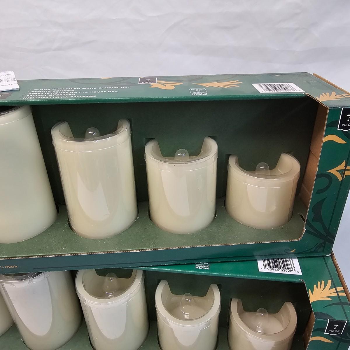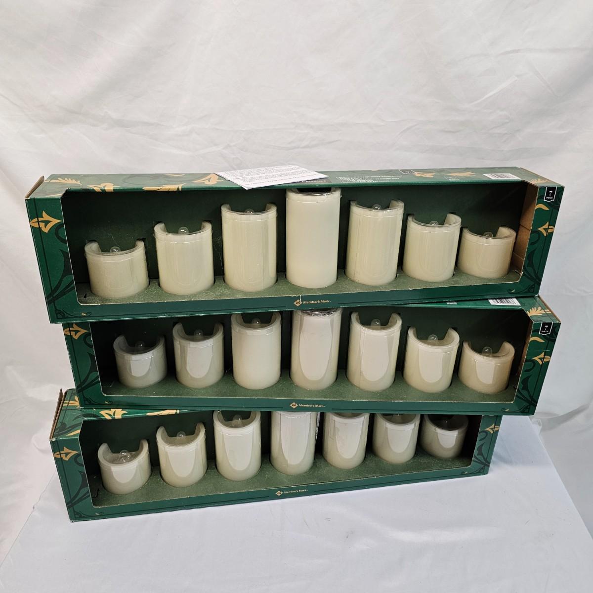 Three matching sets of LED battery operated candles from Member's Mark. Each set has seven candle units and a remote control. No items have been tested; batteries are not included. See photos for details. Shipping available.