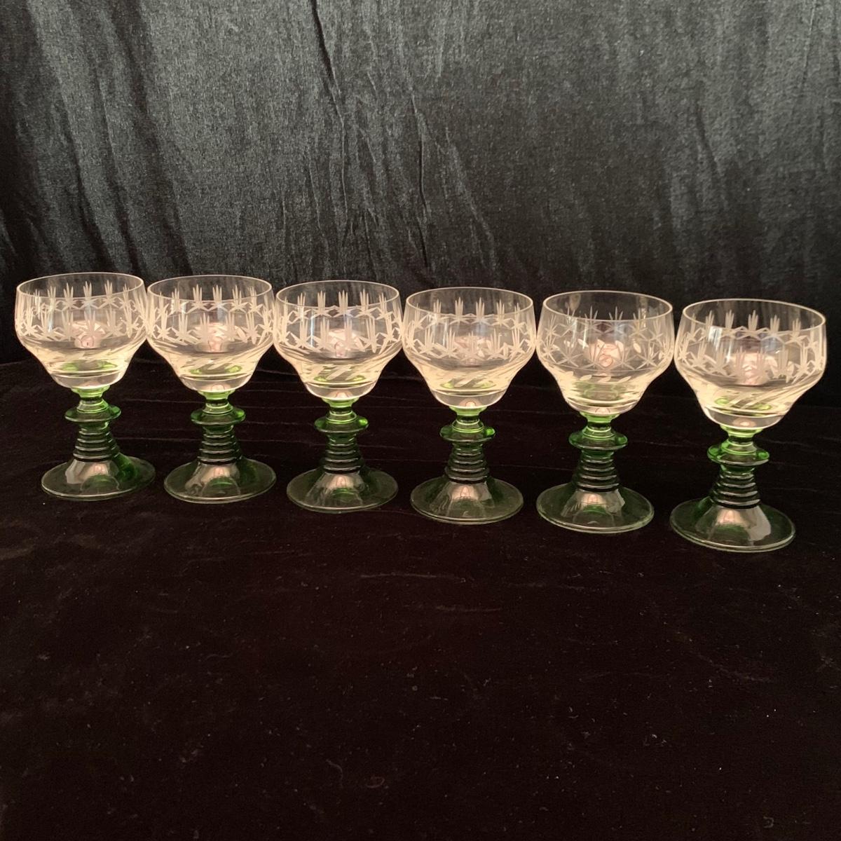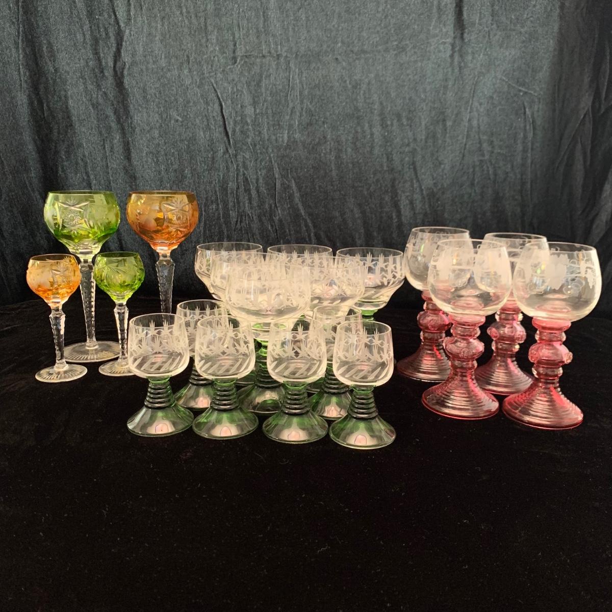 Three Sets of Small Colorful Etched Stemware (K-HS)