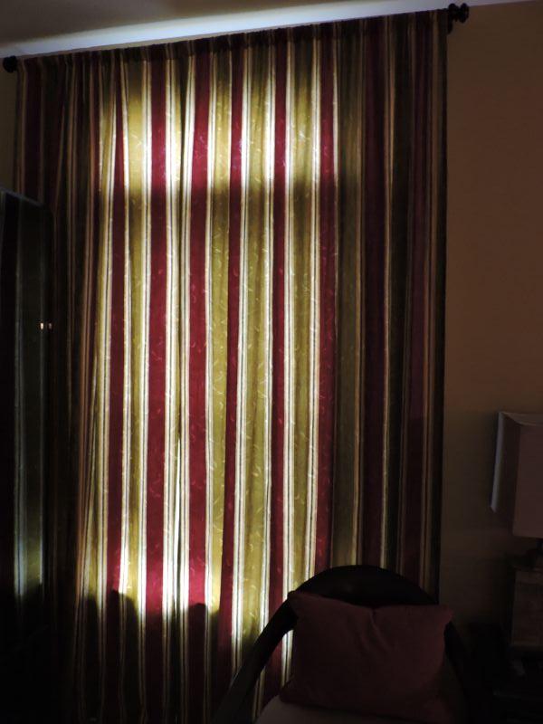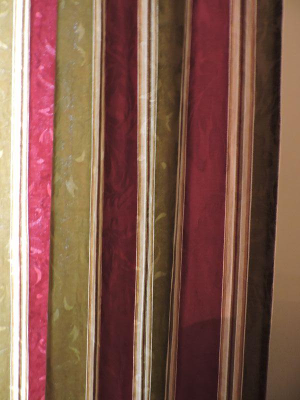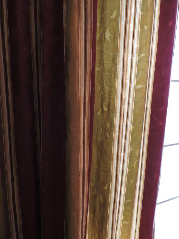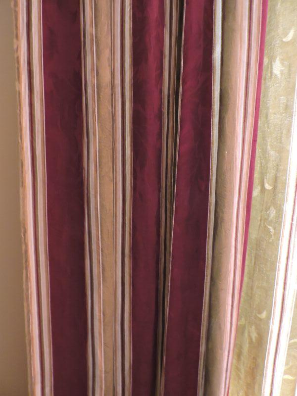 Three Sets of Striped Curtains.