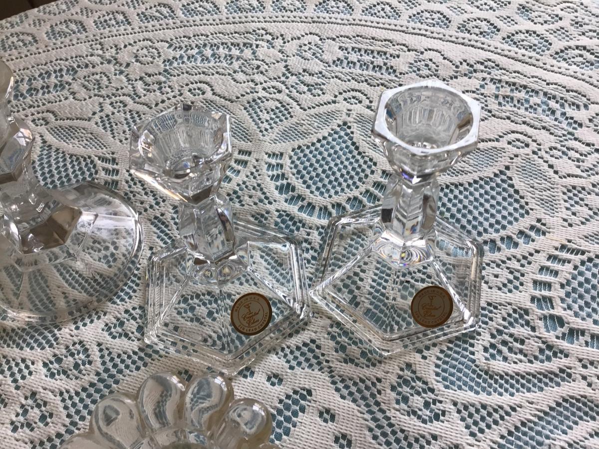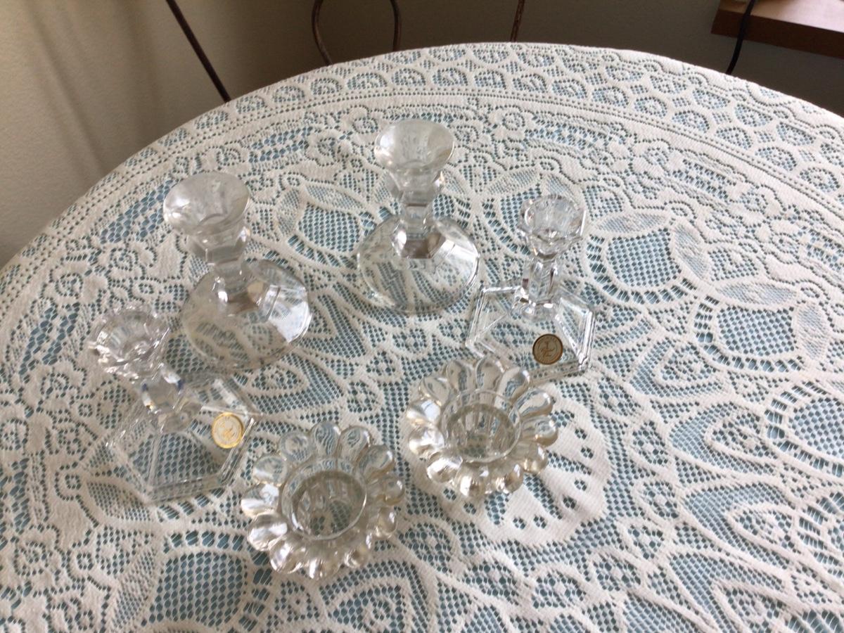 You get three sets of two crystal candle holder. On set has lead Crystal sticker on the.
