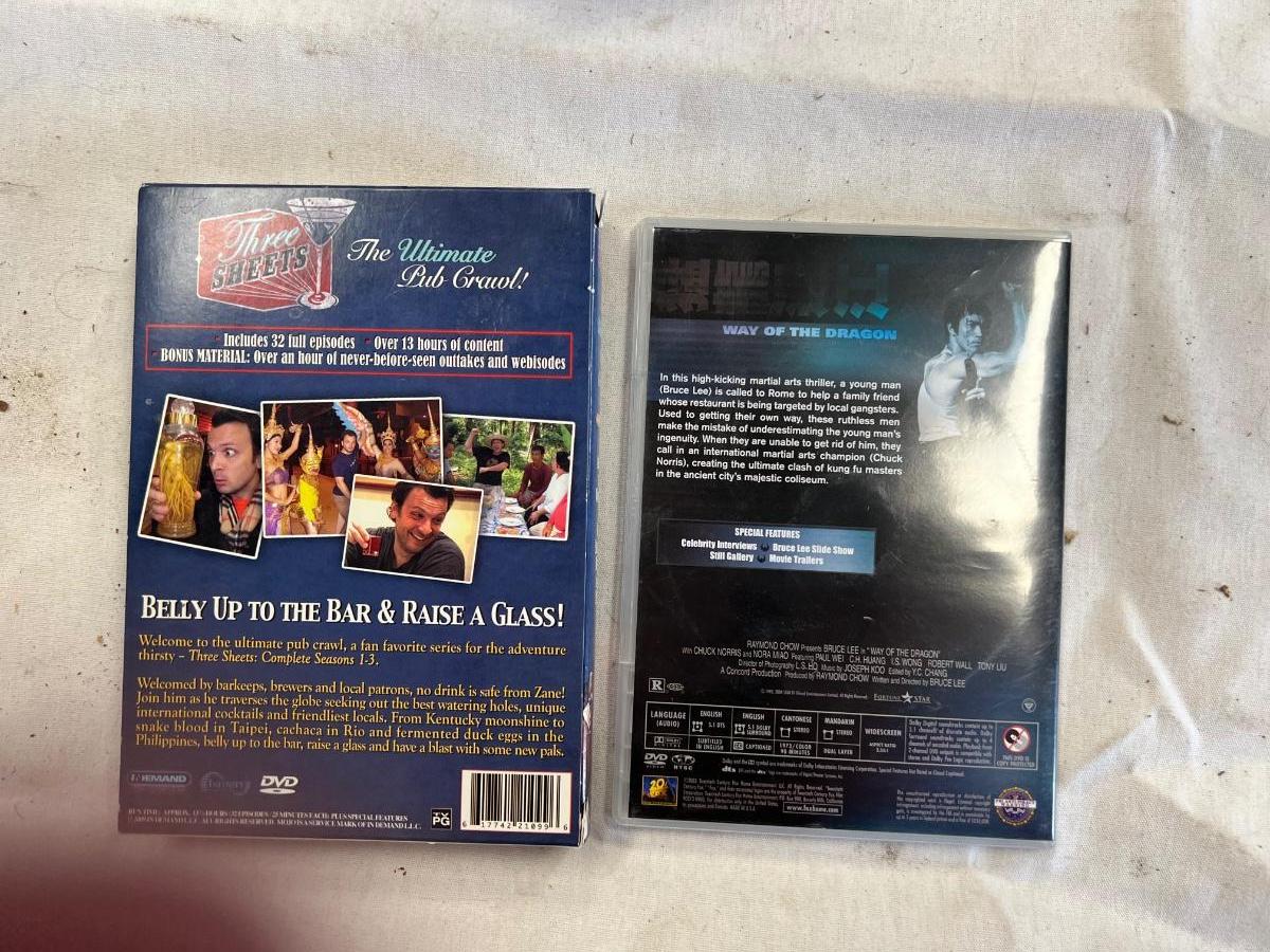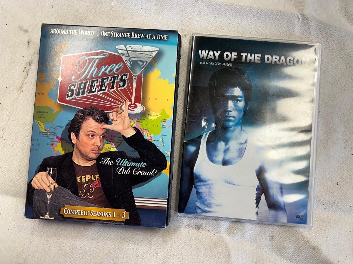 Seasons 1-3 of Three Sheets plus Way of the Dragon DVDs appear to be in good shape. TV comedy collectors box set, martial arts Bruce Lee