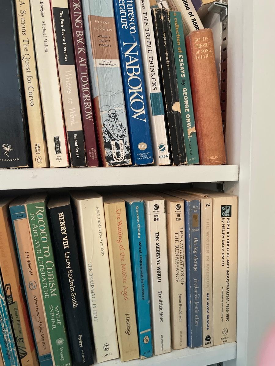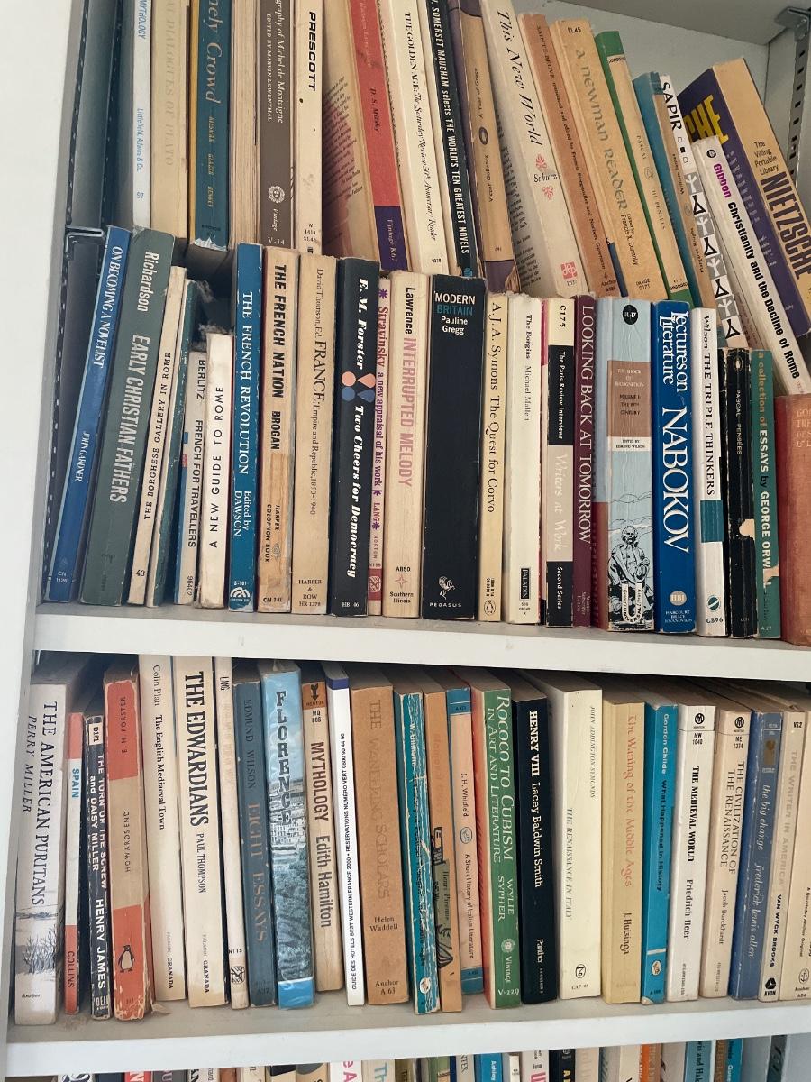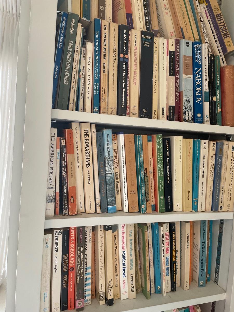 Three shelves of assorted books