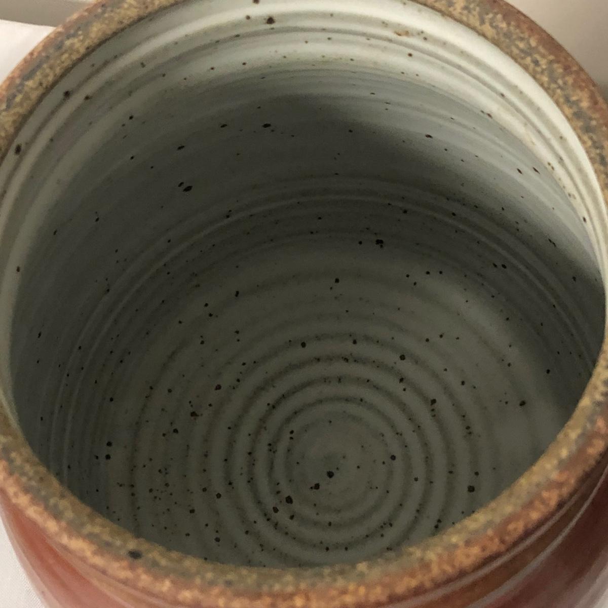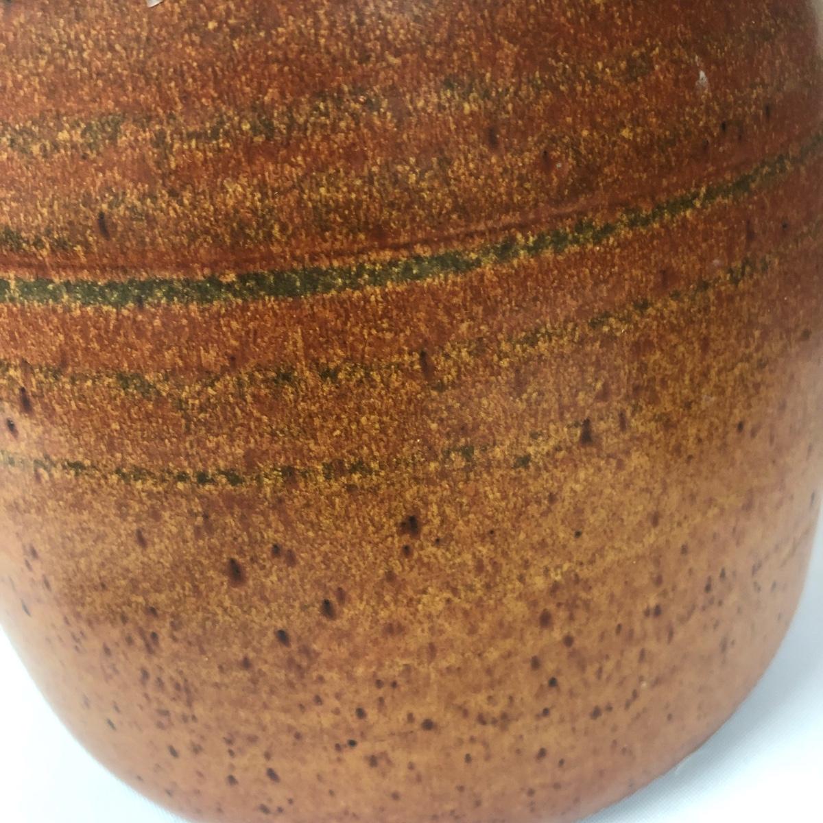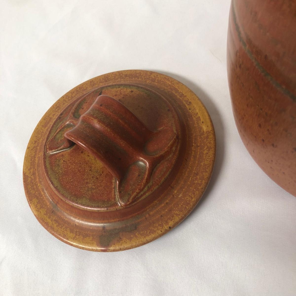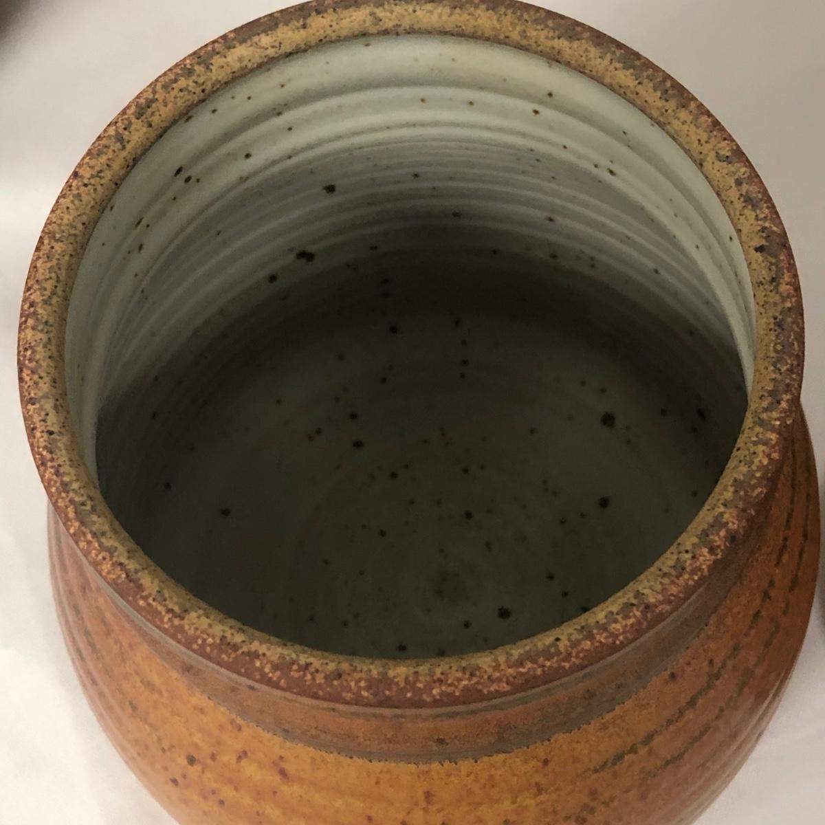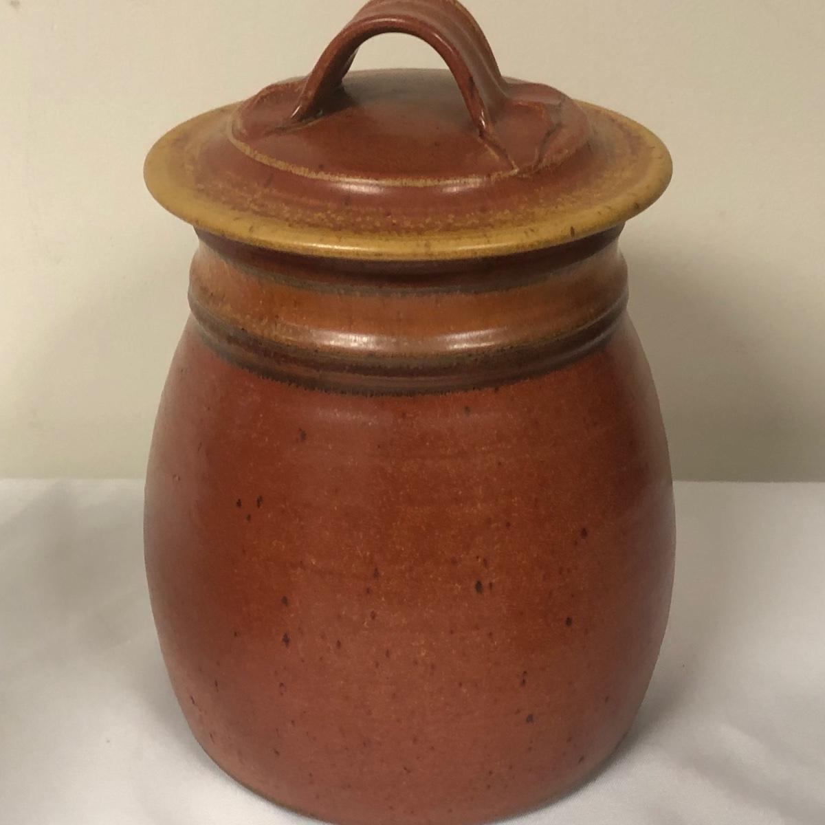 These three ceramic canisters are in good condition. All have lids and are signed on the bottom. Note there is one lid that has a chip on the underside edge (see photo). The largest canister measures 7” wide and 12.5” tall with the smallest measuring 5” wide and 8” tall. Shipping Available.