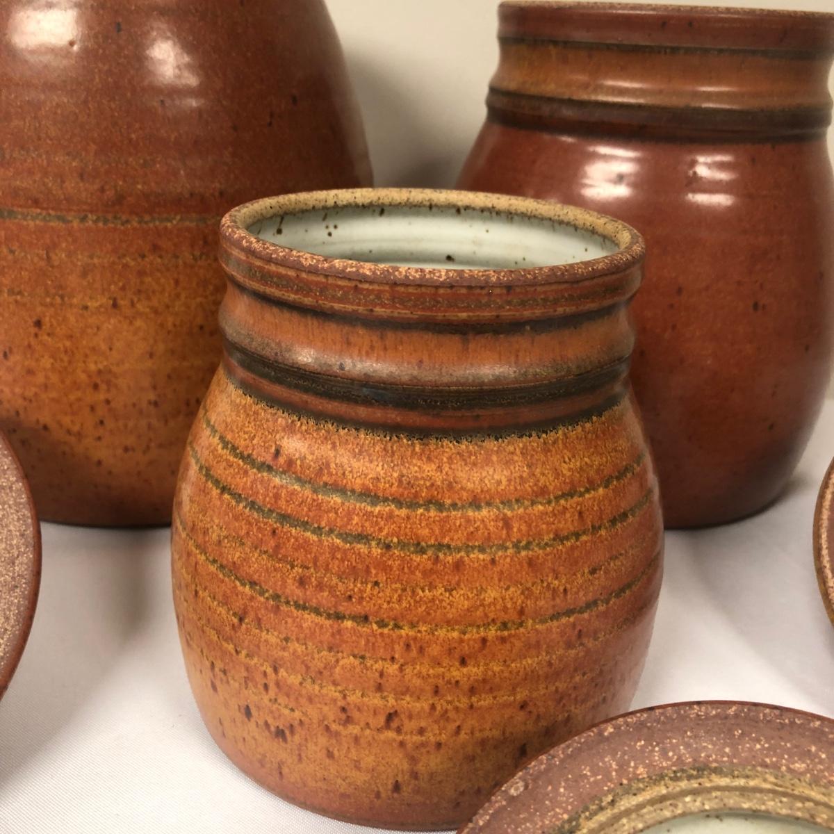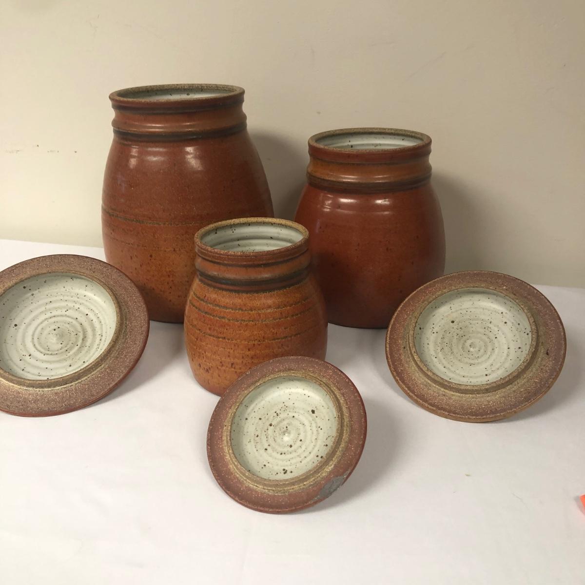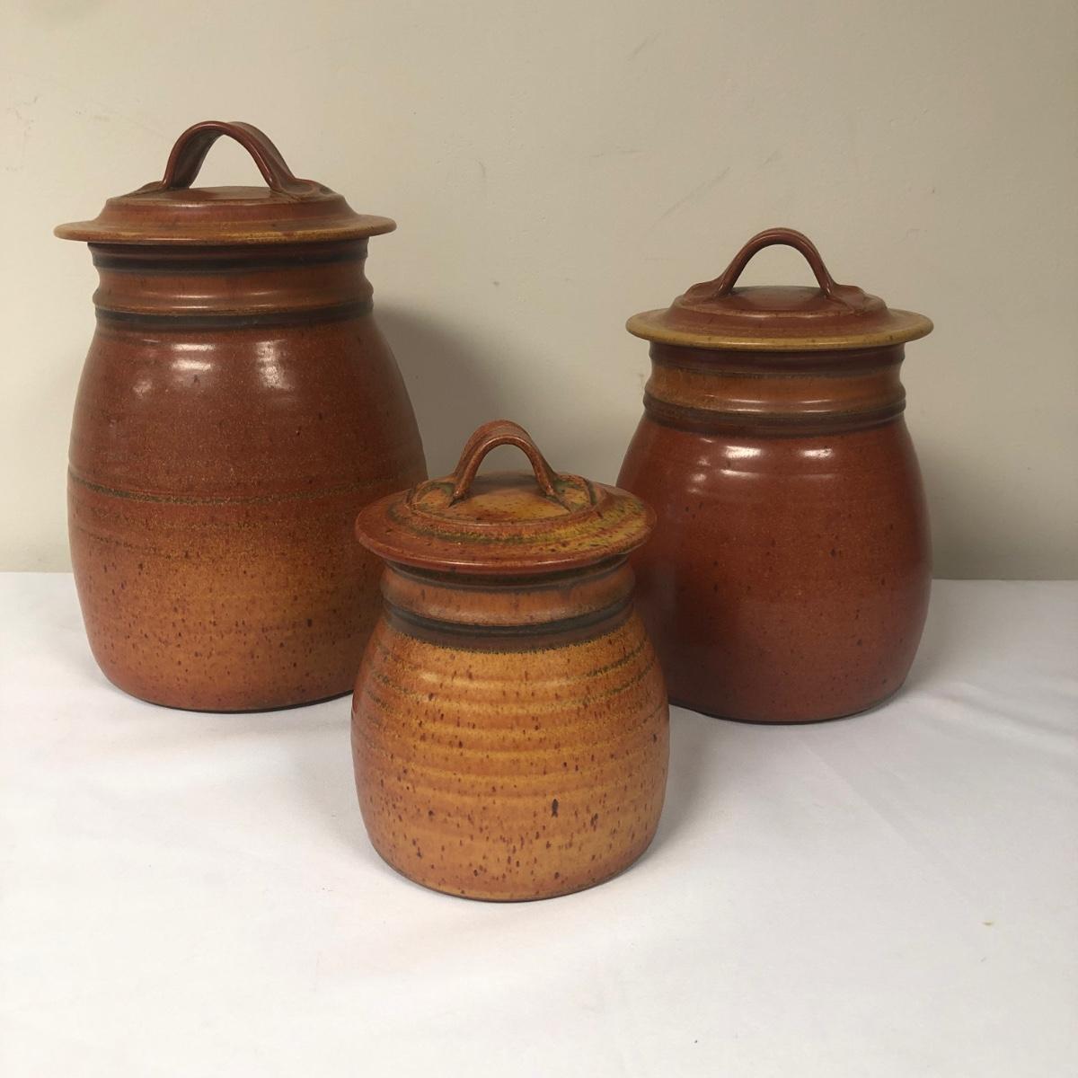 Three Signed Ceramic Canisters with Lids (BO-KM)