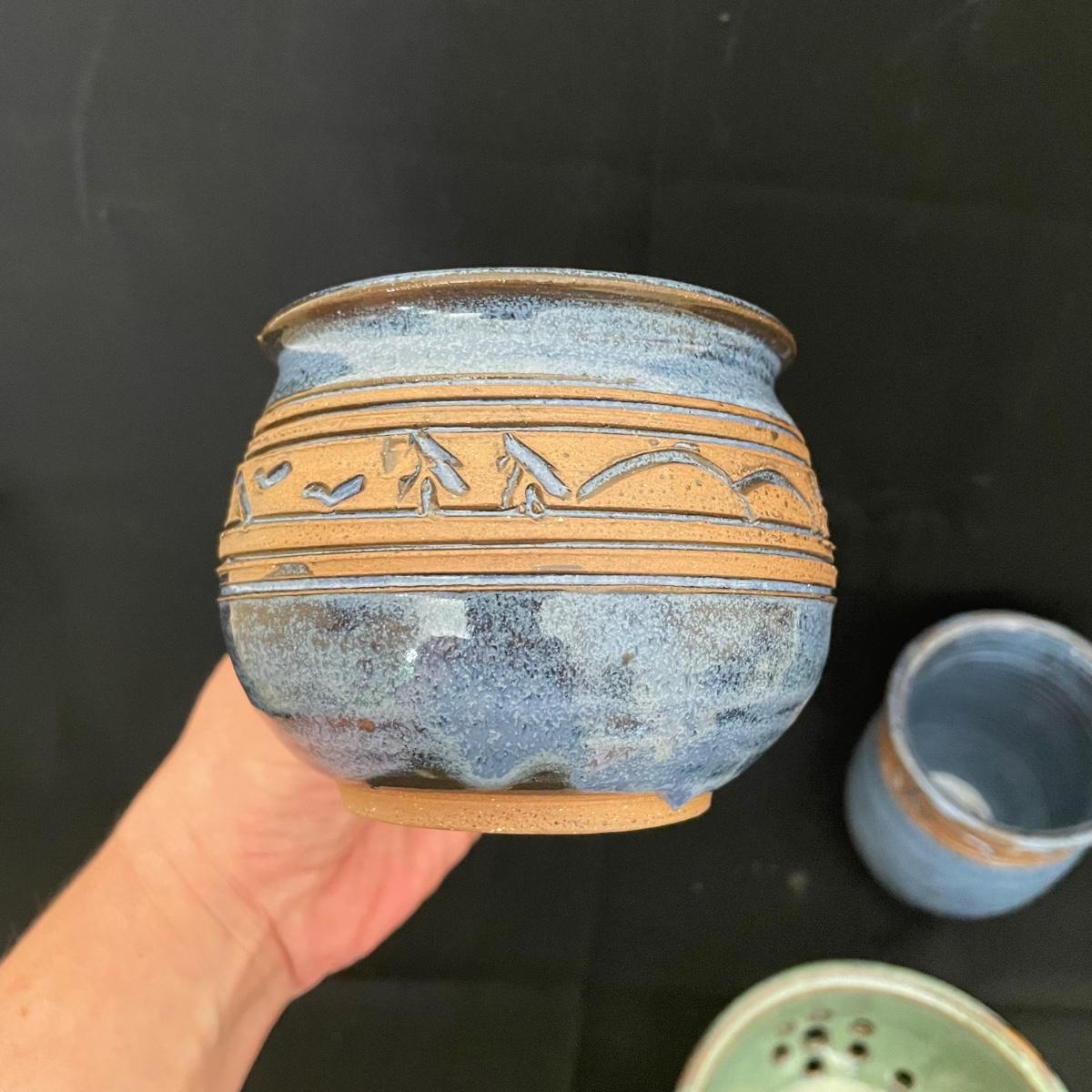 Three Signed Groundhog Blues Pottery Pieces (DR - SS)