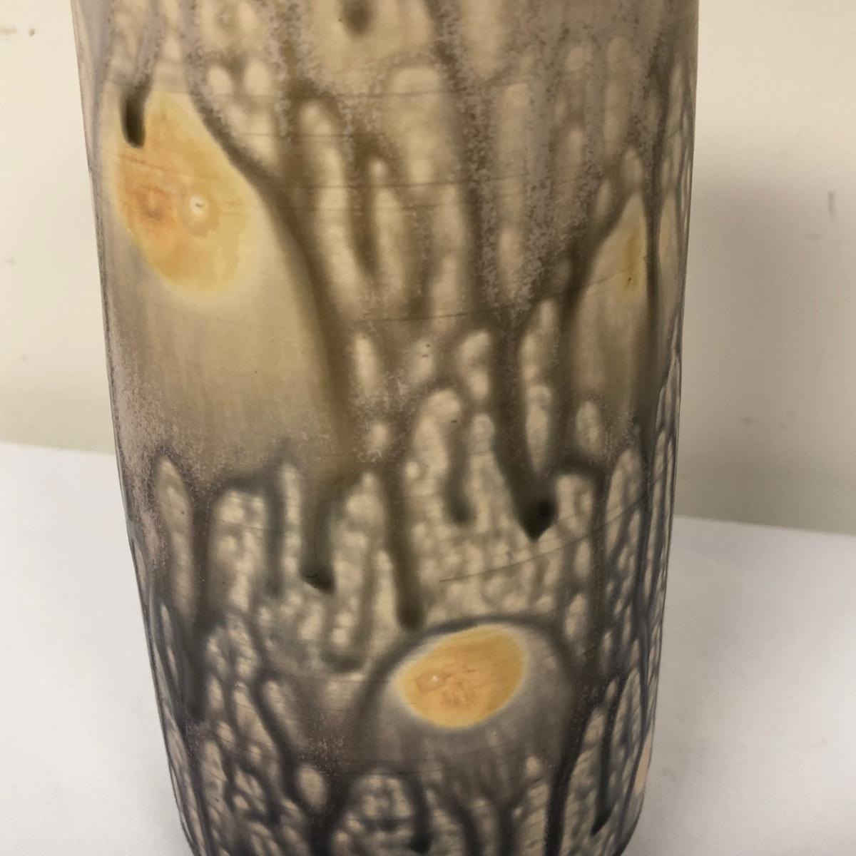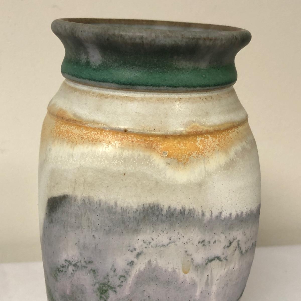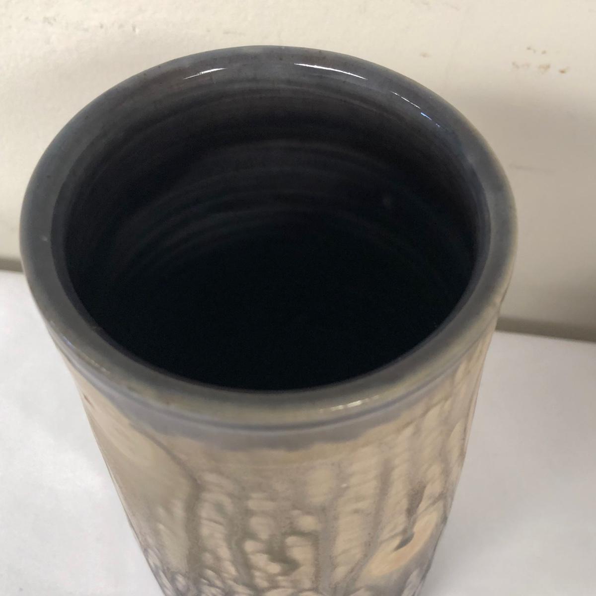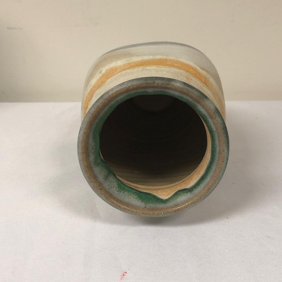 This lot includes three hand painted ceramic vases. All three have signatures on the bottom of them. The four sided “Dirt Works” vase is over 3.5” wide and stands 8” tall. The smallest vase is over 3” in diameter and stands over 4” tall. The last vase measures 3.5” in diameter and stands 9” tall. Shipping Available.