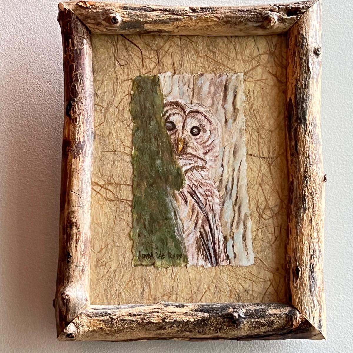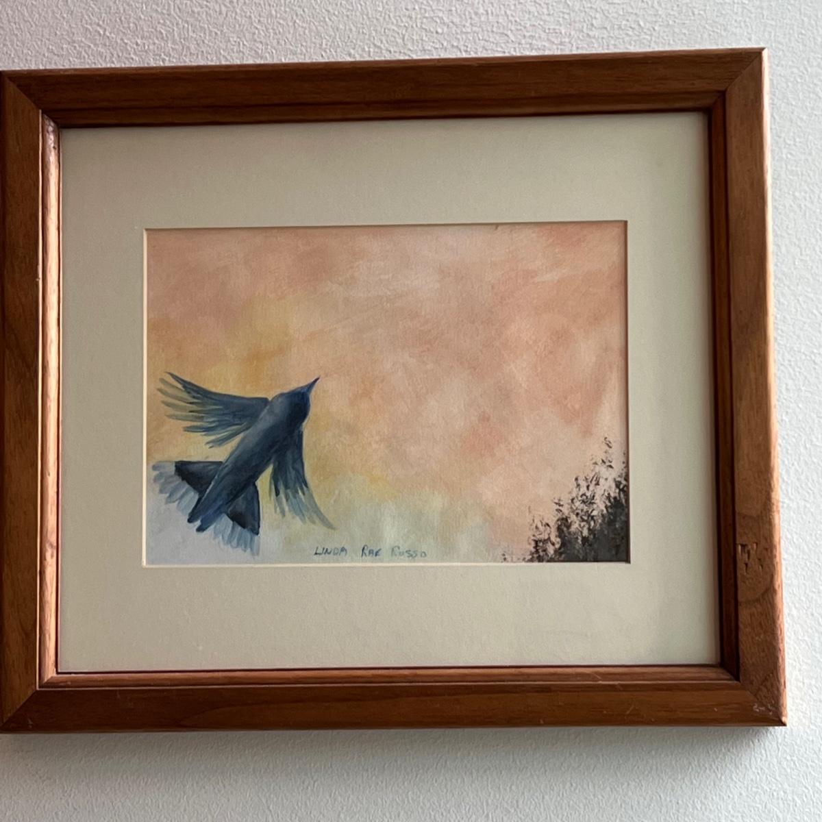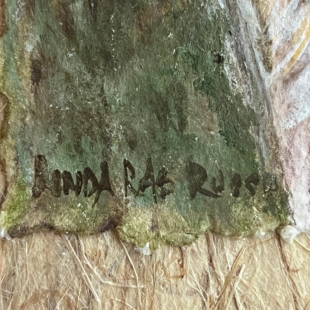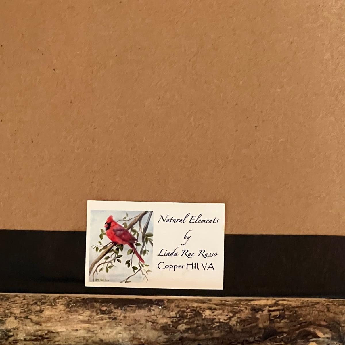 All three of these Linda Rae Russo prints are signed by the artist. Her card states the originals were oils on canvas. The two larger prints are under glass and in similar wood frames. The Bluebird frame is slightly smaller. The larger frame has one very minor ding, see images. Also under glass, the owl is mounted on a lovely natural fiber paper and has a hand made frame made from raw, weathered wood.