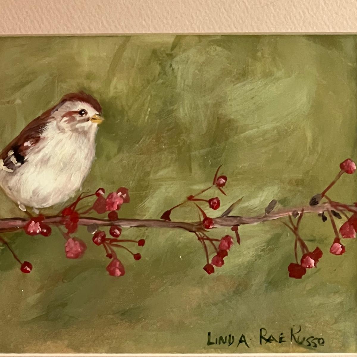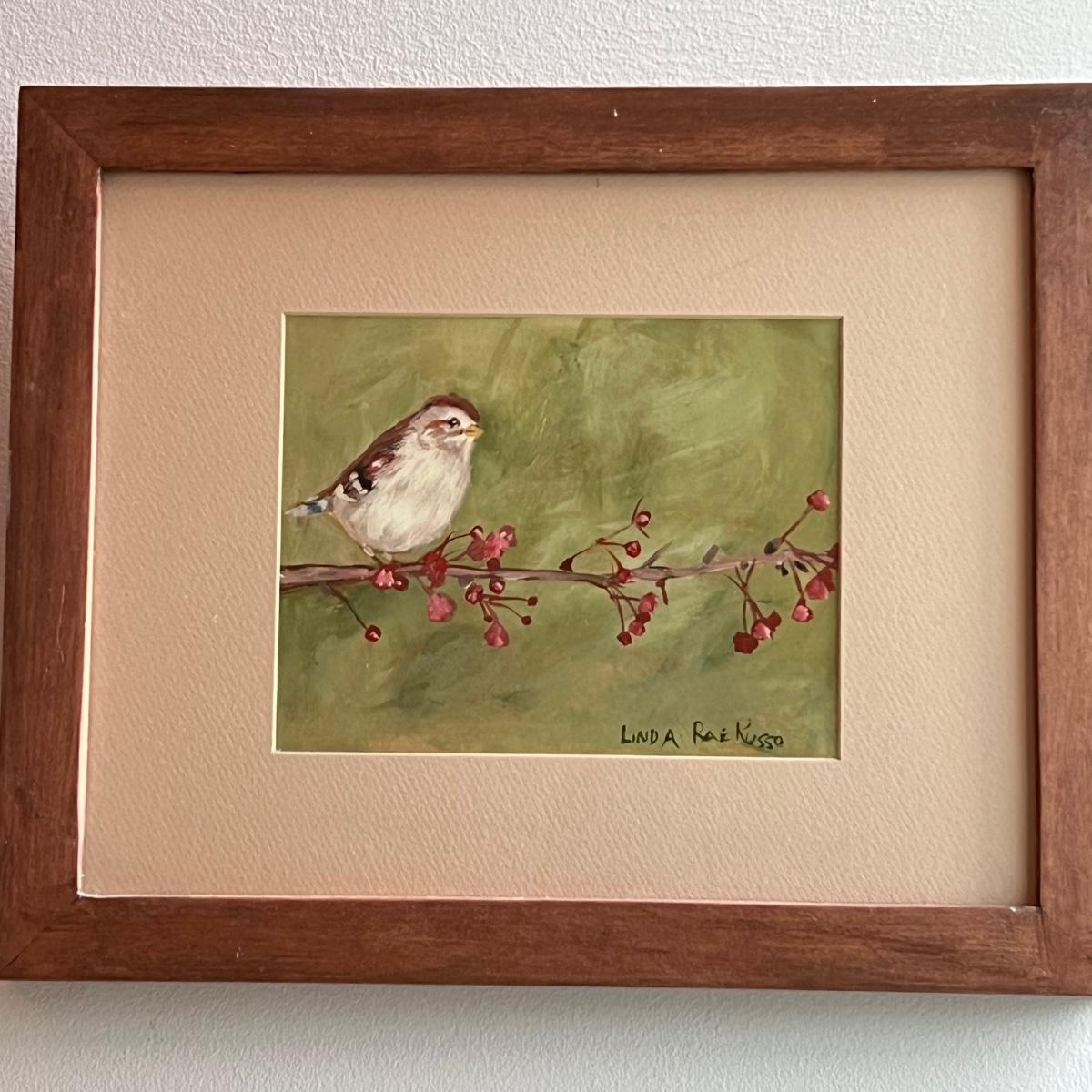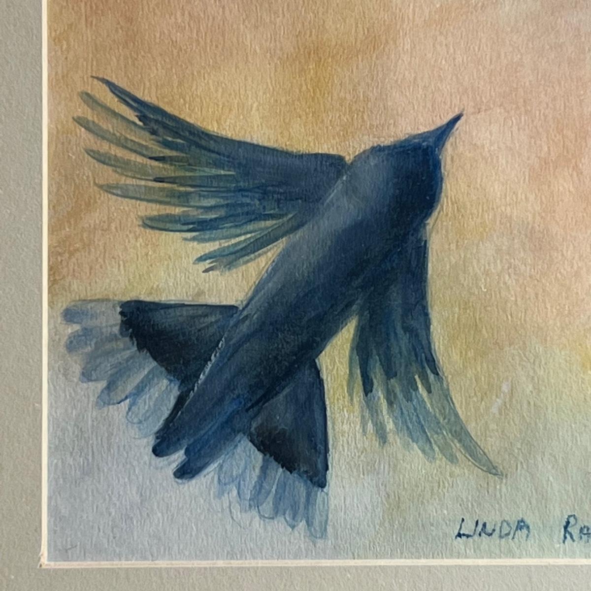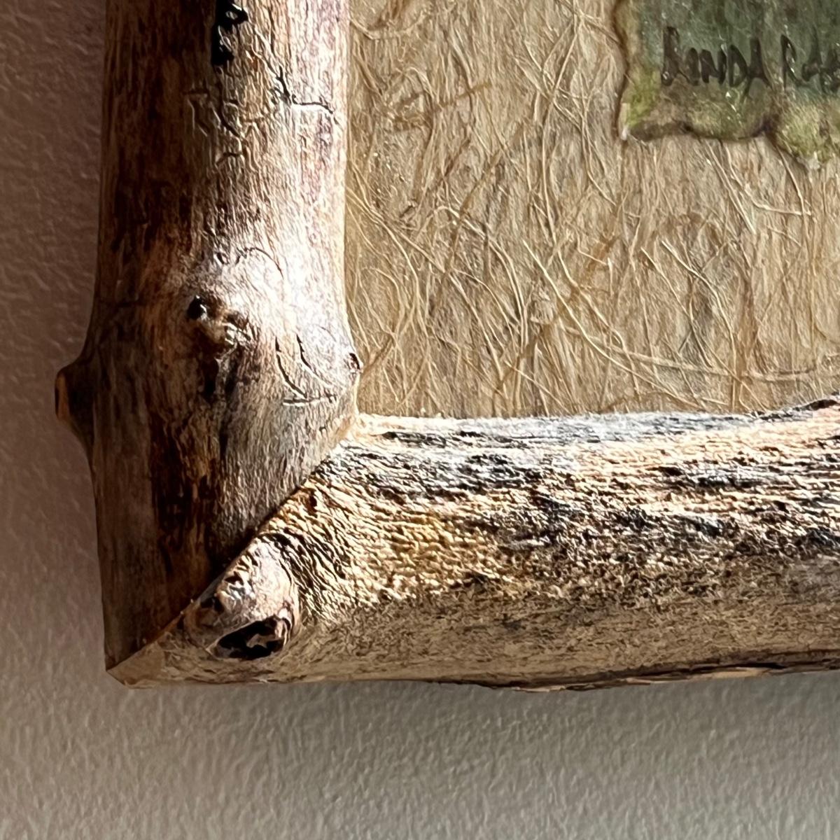 All three of these Linda Rae Russo prints are signed by the artist. Her card states the originals were oils on canvas. The two larger prints are under glass and in similar wood frames. The Bluebird frame is slightly smaller. The larger frame has one very minor ding, see images. Also under glass, the owl is mounted on a lovely natural fiber paper and has a hand made frame made from raw, weathered wood.