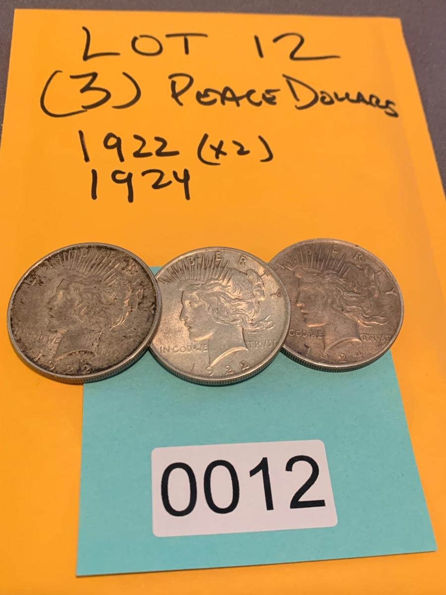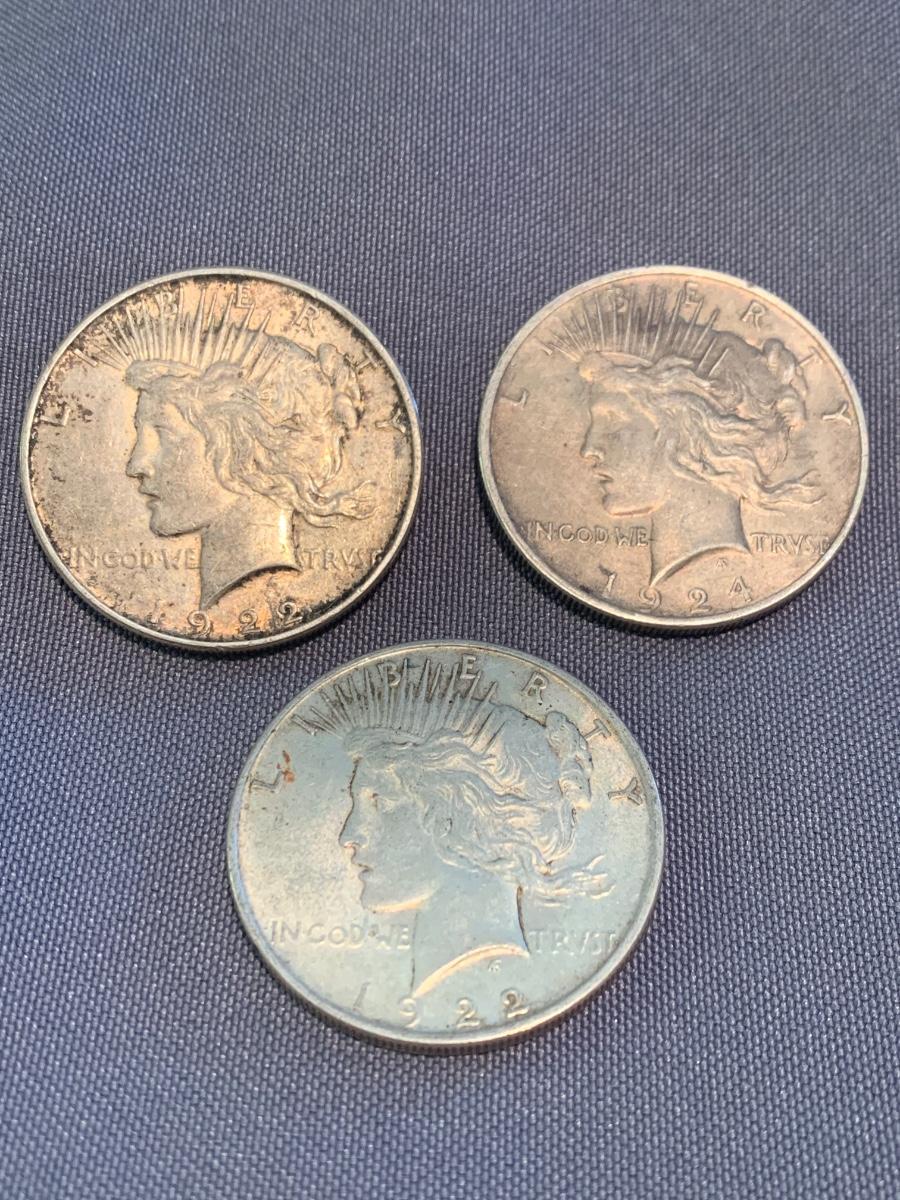 THREE Silver Peace Dollars 1922 ( 2) & 1924