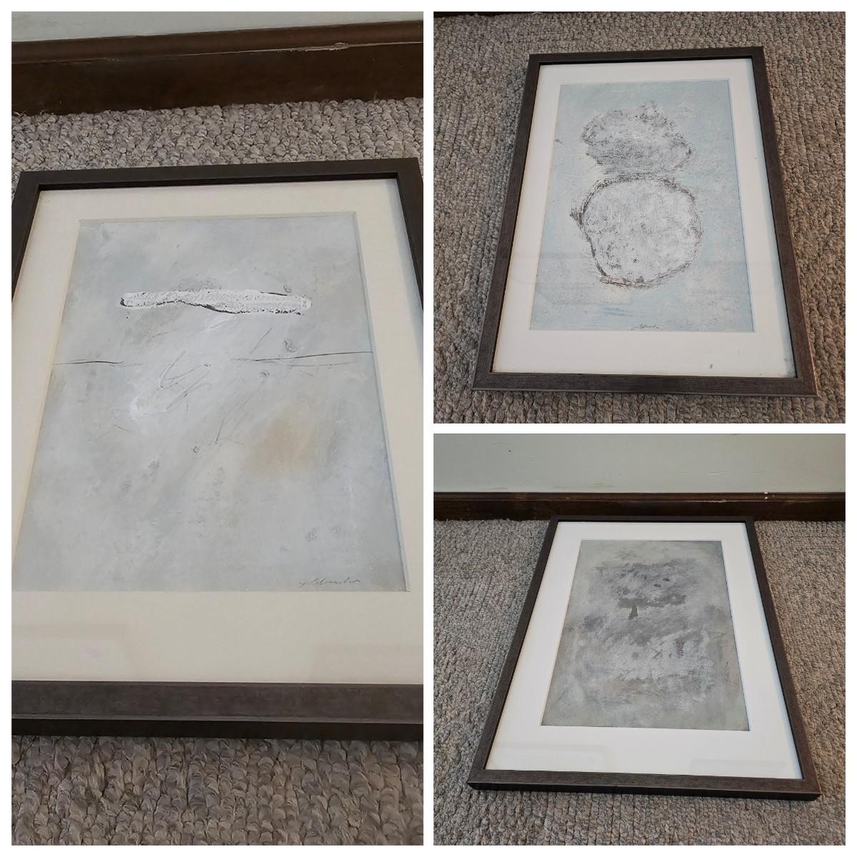 Three Soft Grey Mixed Media Paintings by Joyce Blunk (PC-JS)