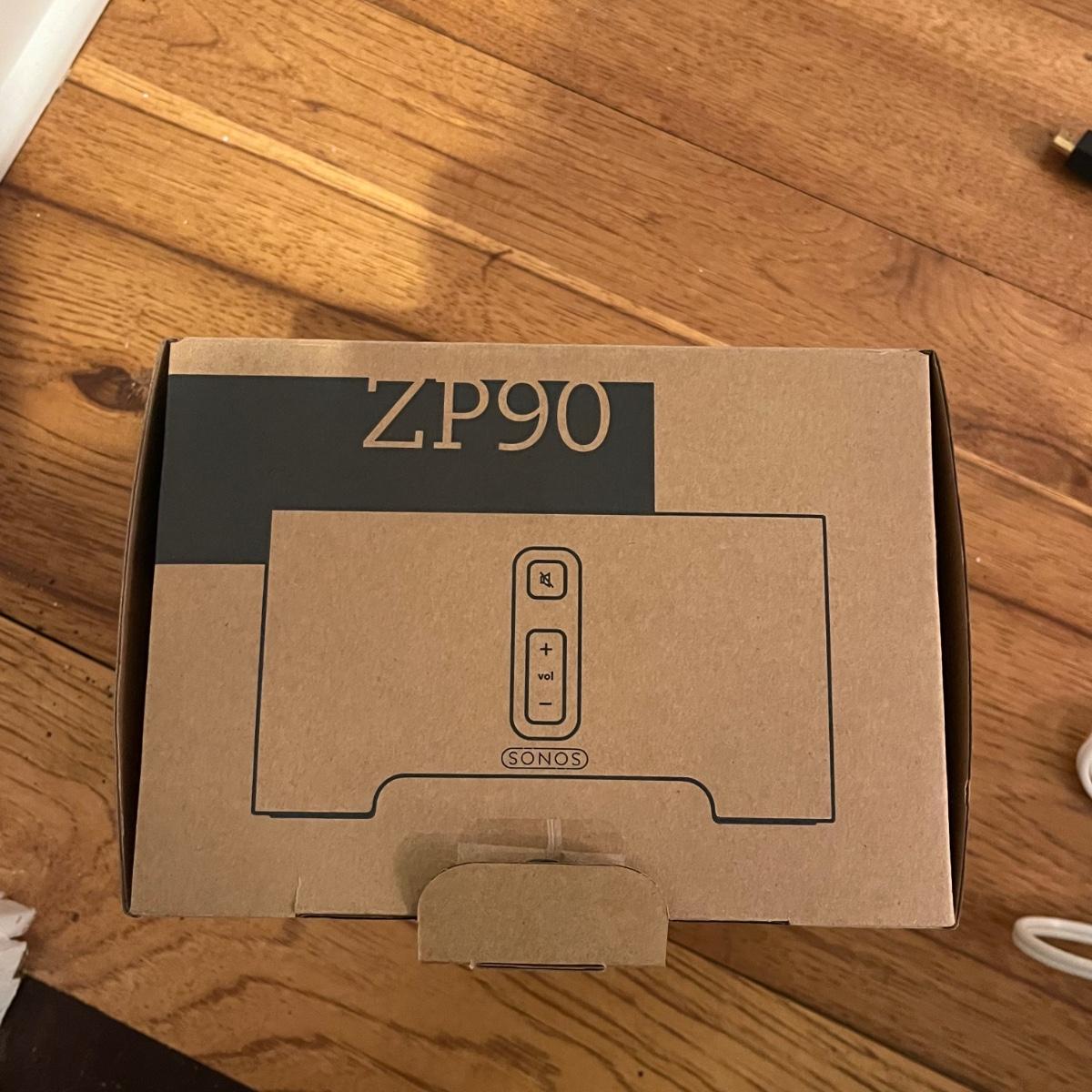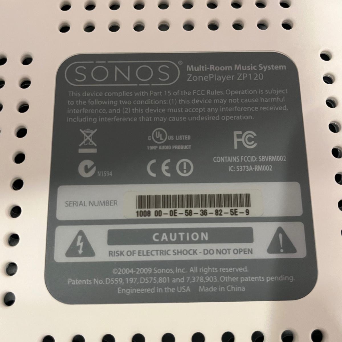 Lot includes three Sonos Zone Players 120 that powered on when plugged in. Also include one NIB Sonos Zone Player 90. Sonos 120 measures 7.5” x 8.5” x 3.5”H.