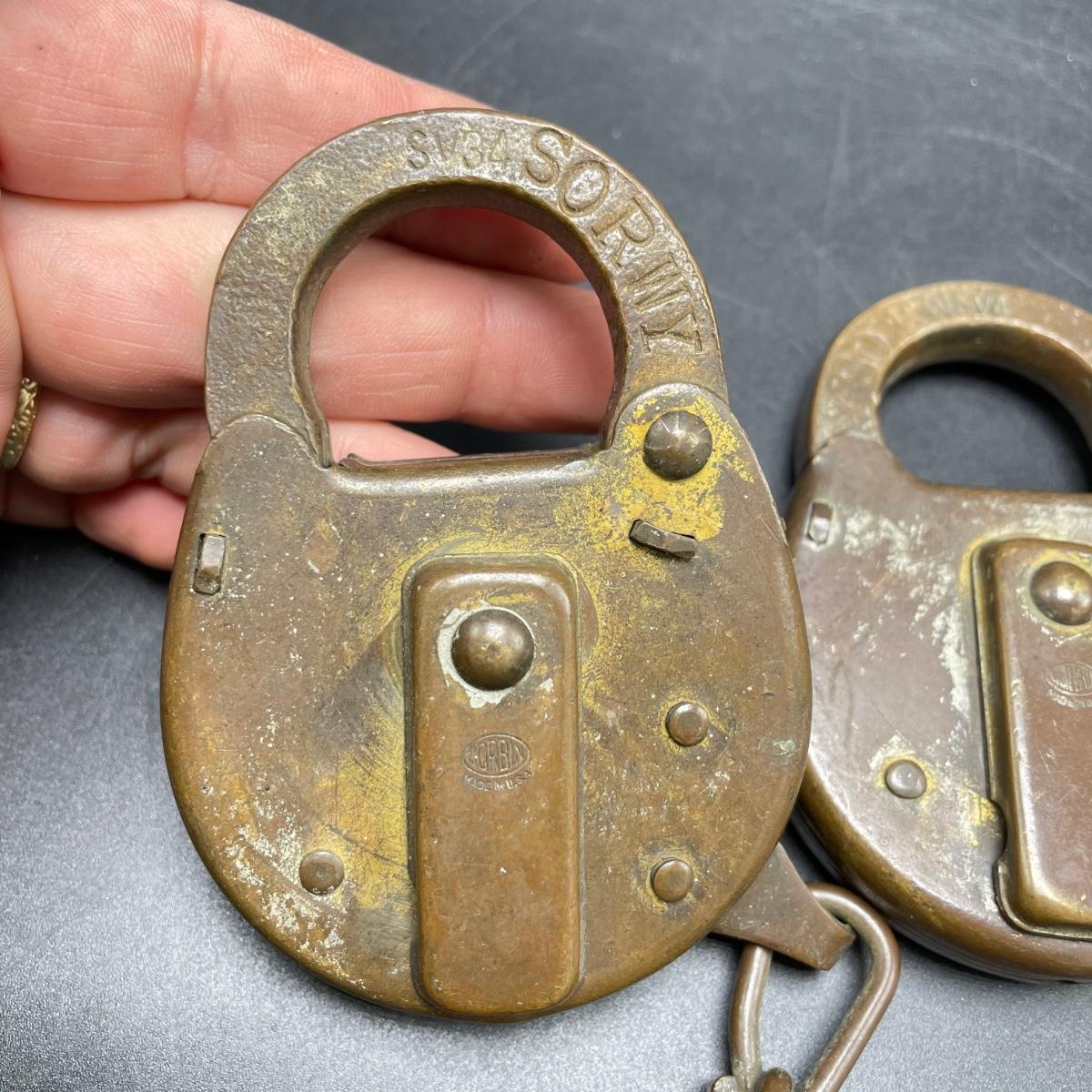 Three antique Southern Railway switch locks by Corbin. No keys included. See images, shipping available.