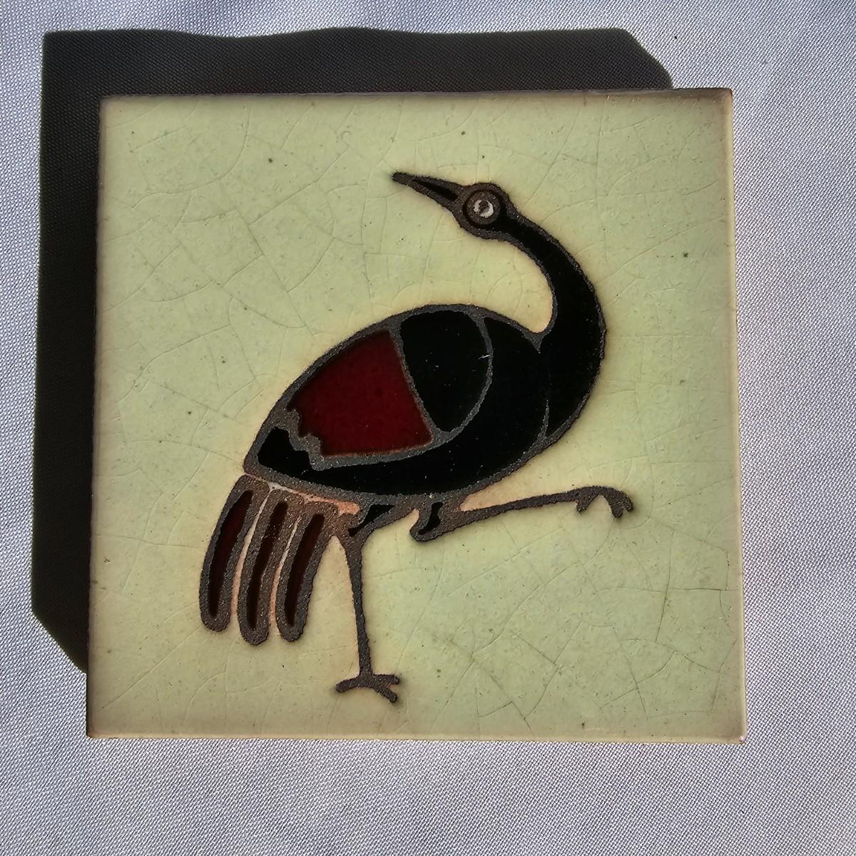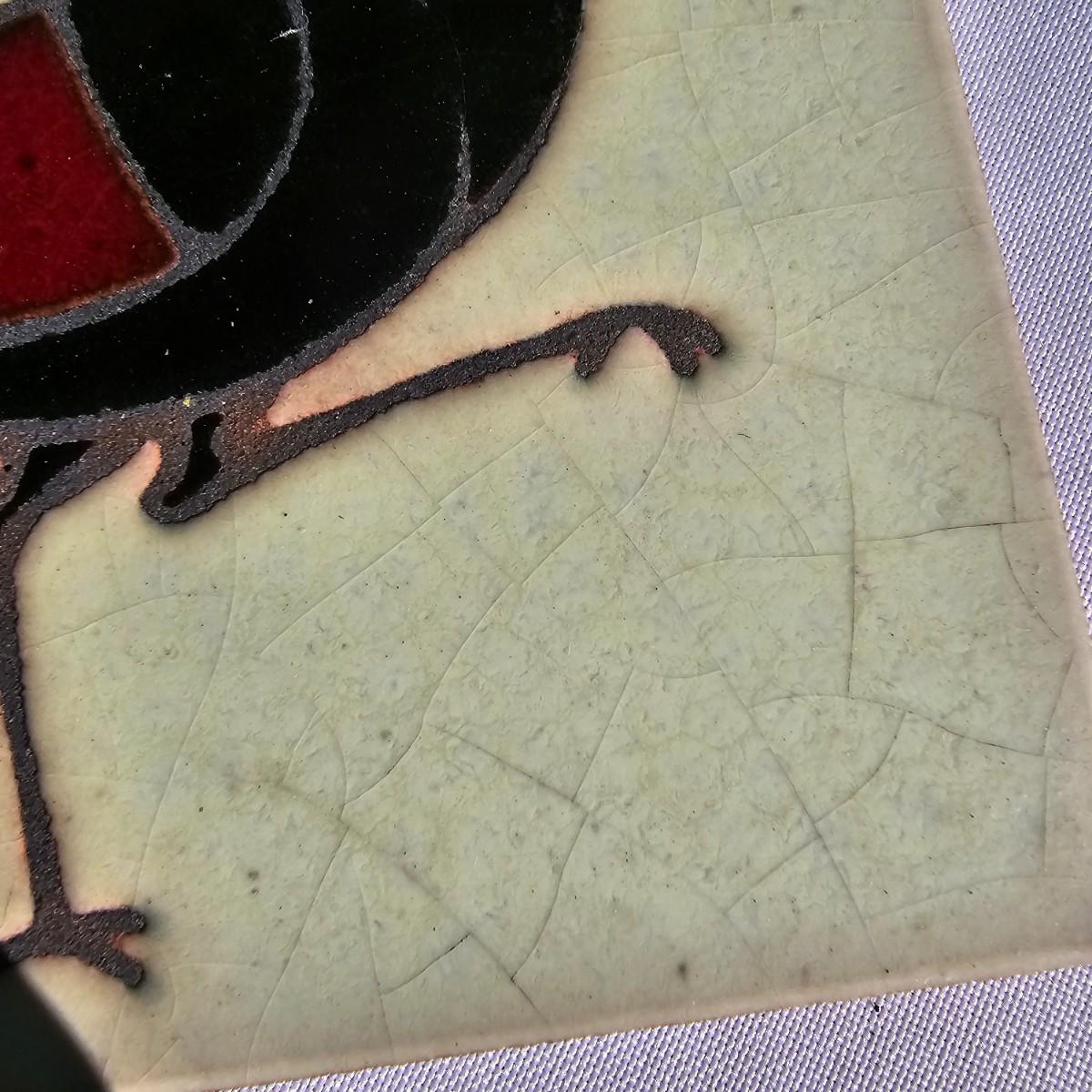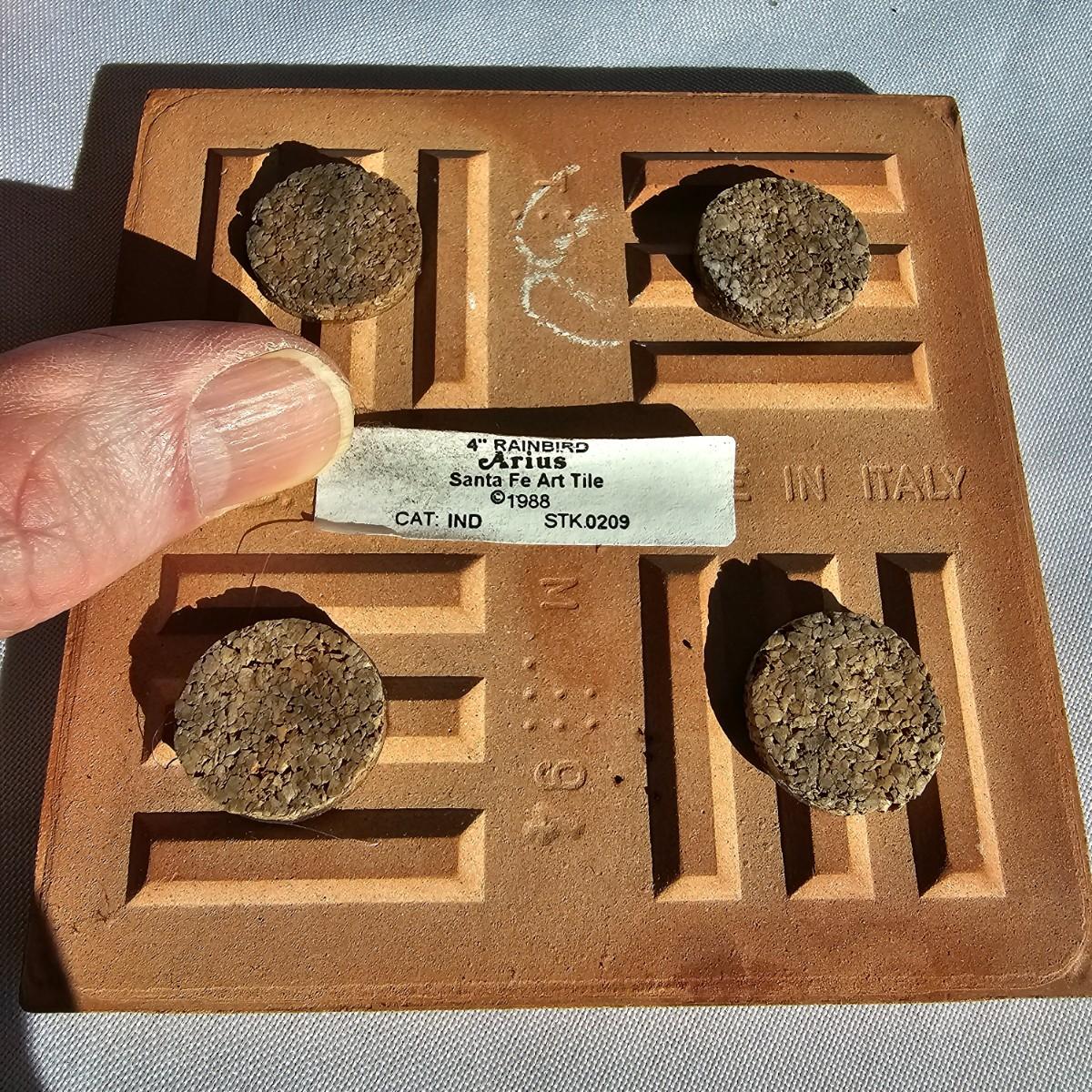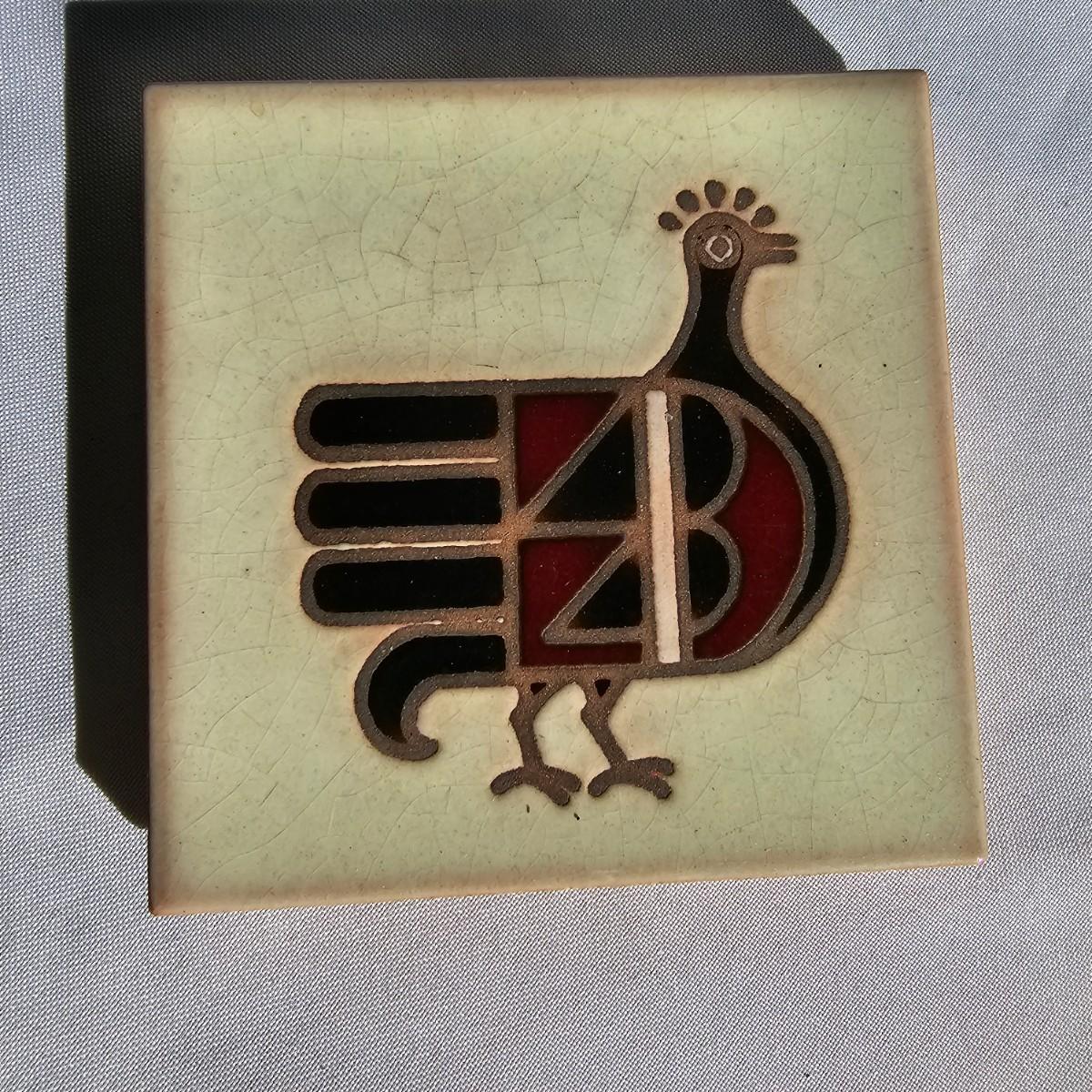 A trio of coaster tiles in a Southwest style. Label signifies that they are Arius Santa Fe tiles. Each tile is glazed, has cork feet on bottom. Shipping available.