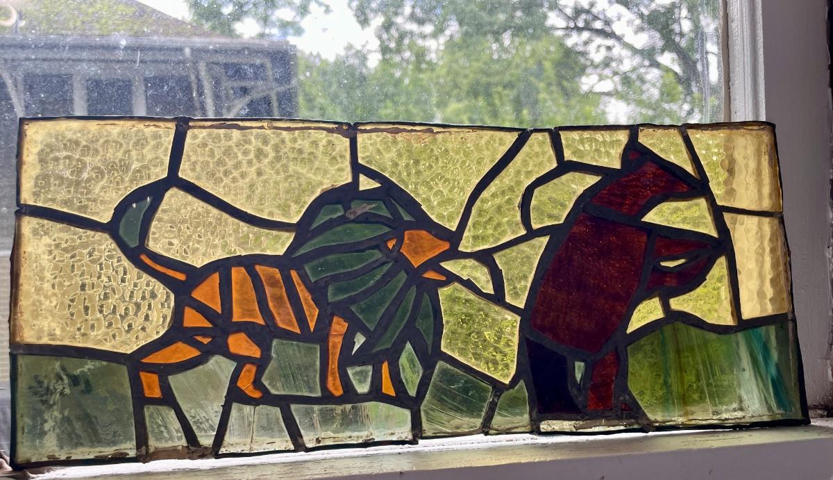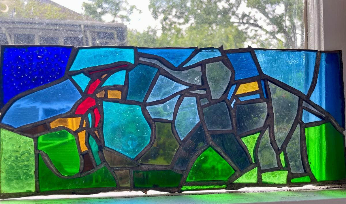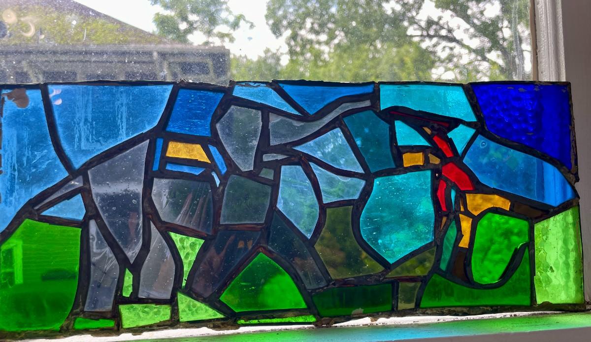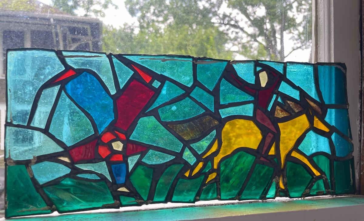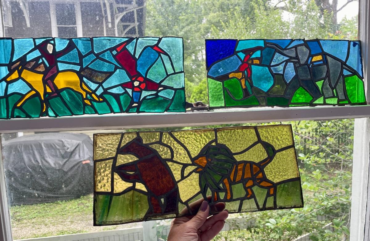 Three stained glass window panels