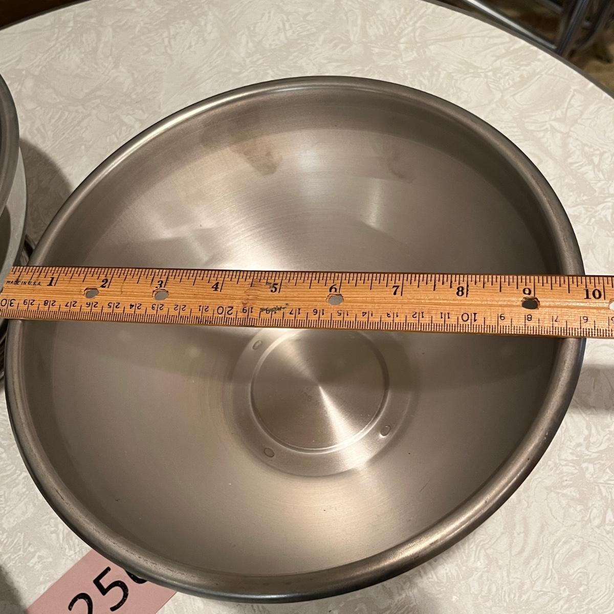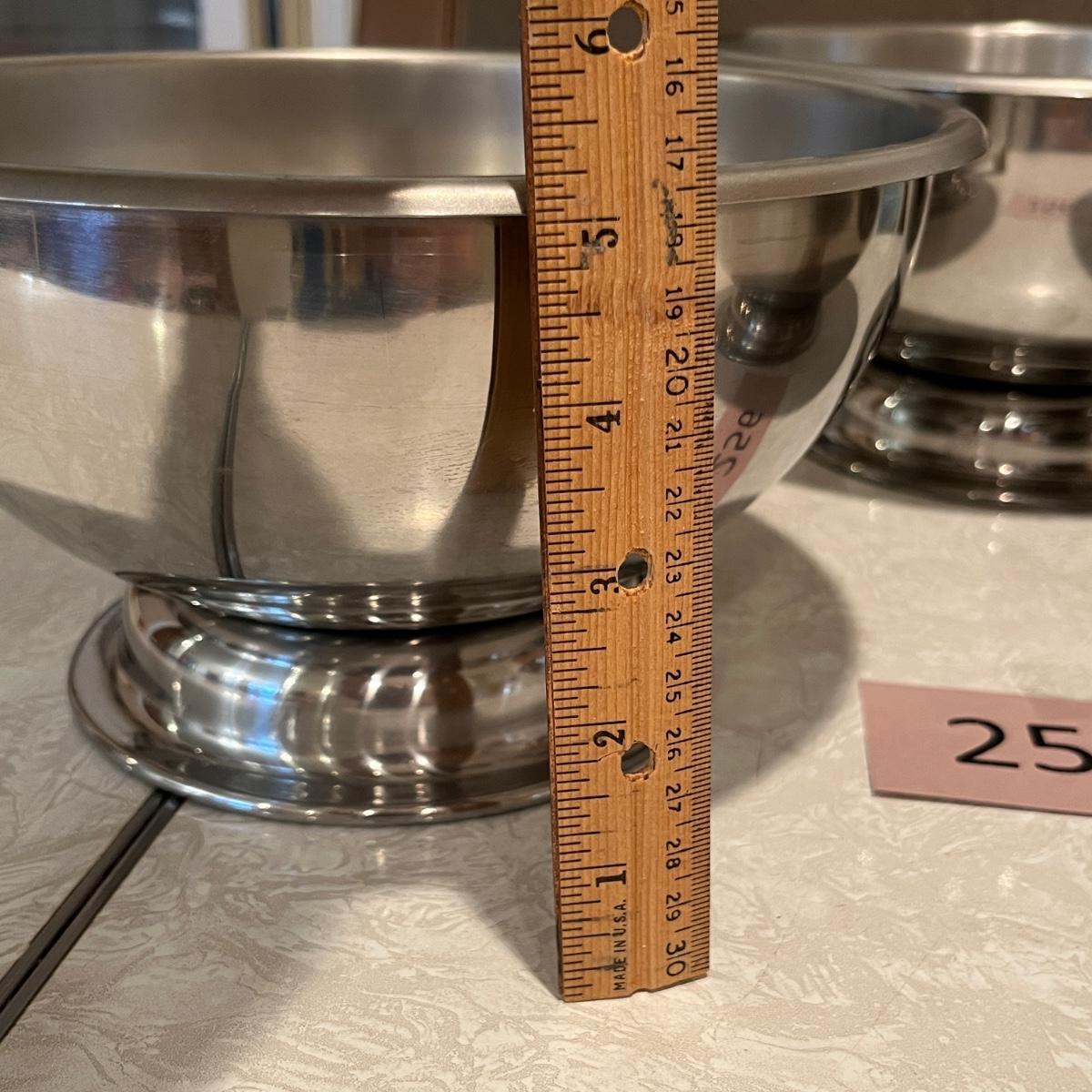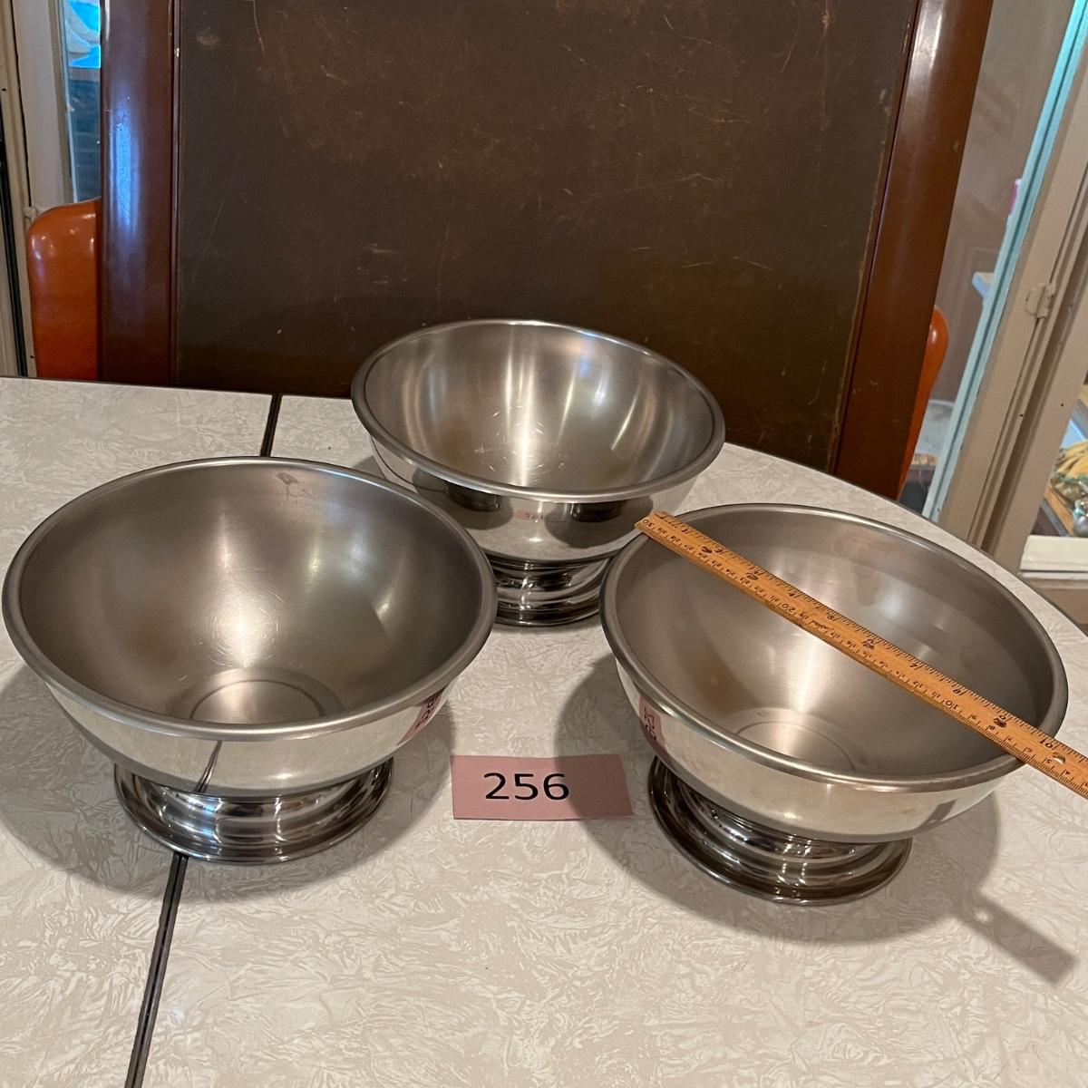 Three stainless still pedestal bowls