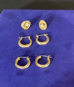 LOT#191: Three Pairs of Stamped 14K Gold Earrings #2
