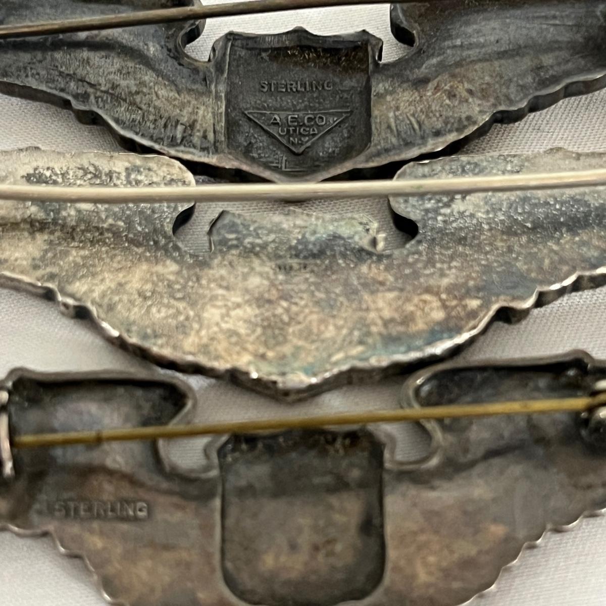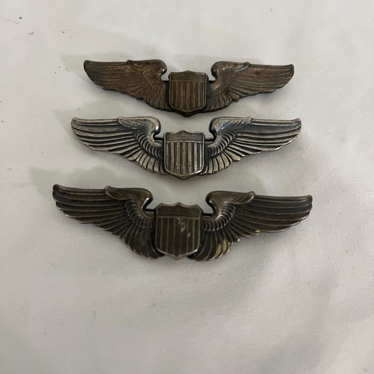 Lot includes what appear to be three Sterling Pilot Wings Air Force Pins that each measure 3” x .75” x .5”H. Please see photos for details.