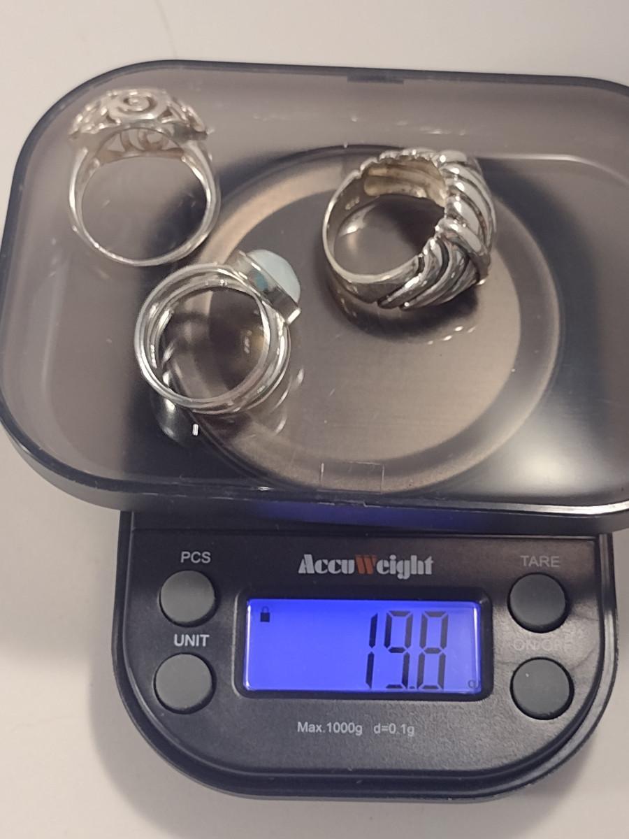 Three Sterling Silver Rings (#52). Approx weight 19.8 grams.