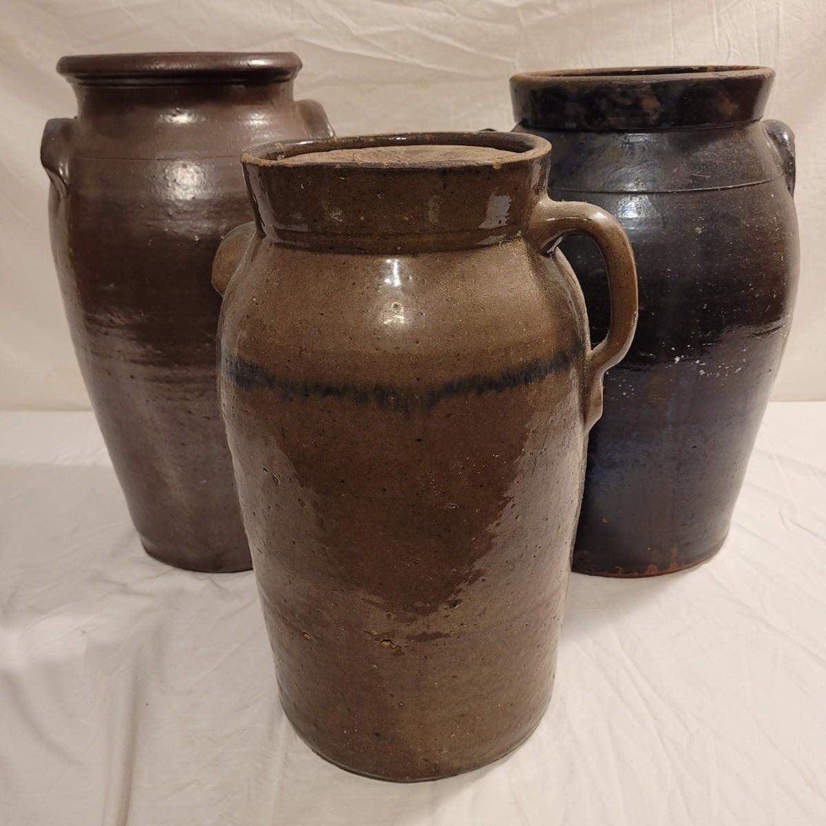 Three Antique Stoneware Butter Churn Crocks (FE-EL)