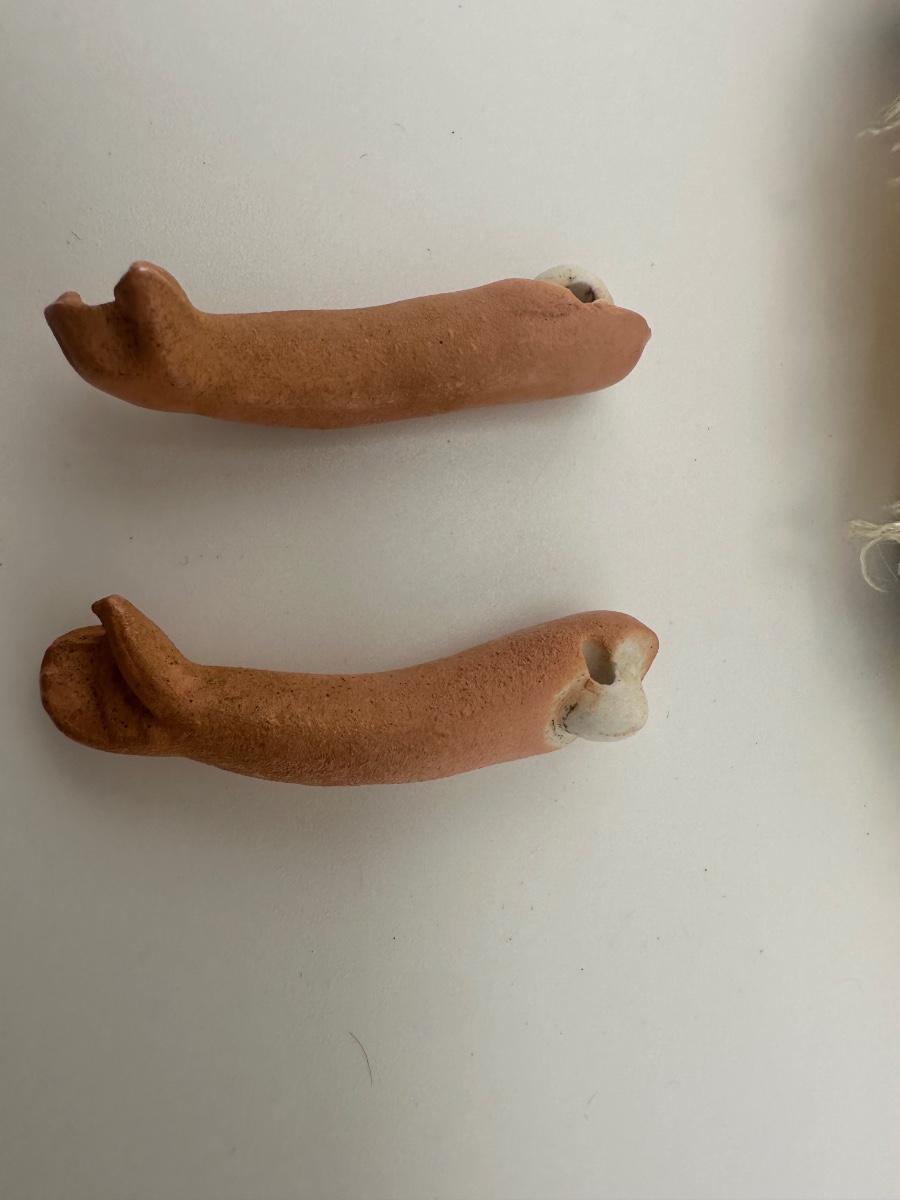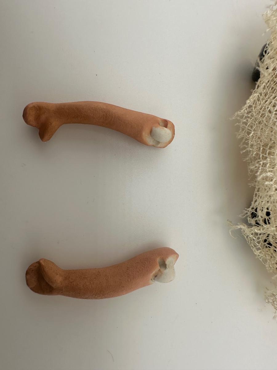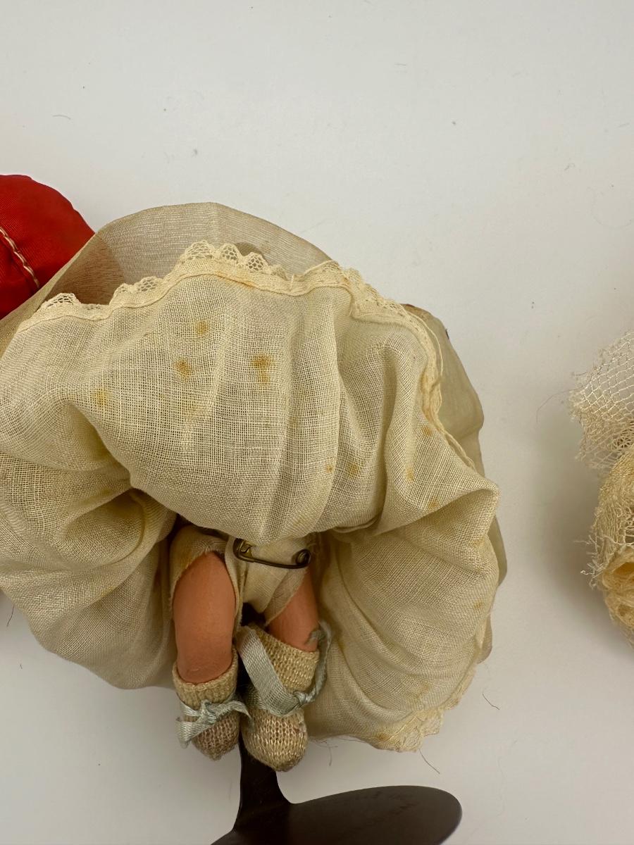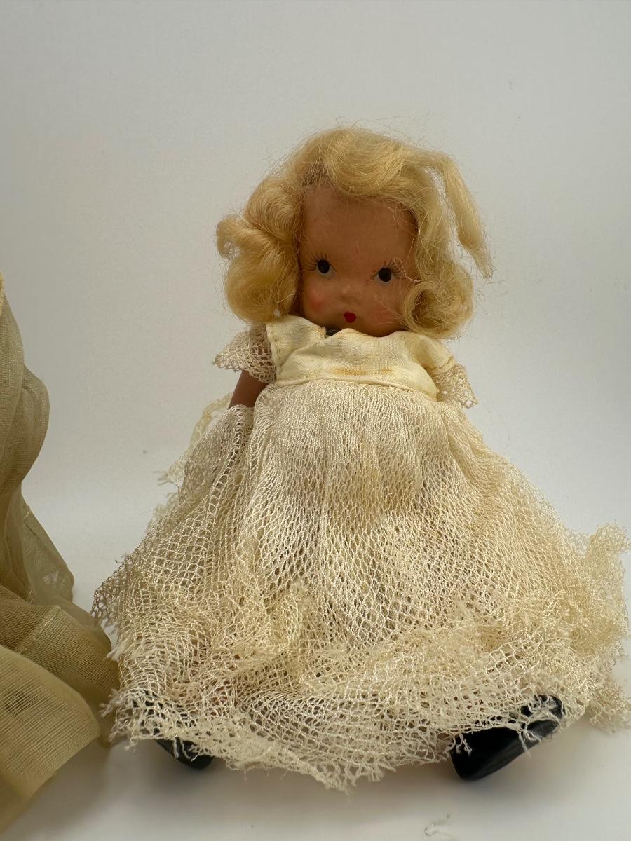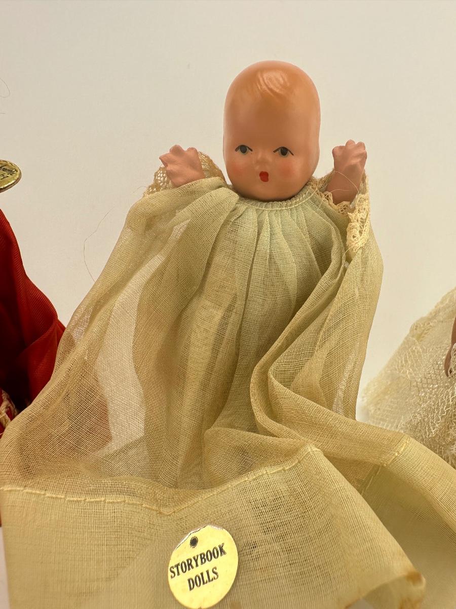 The white dressed doll arms are not attached. They are not broken just need to be put back on.