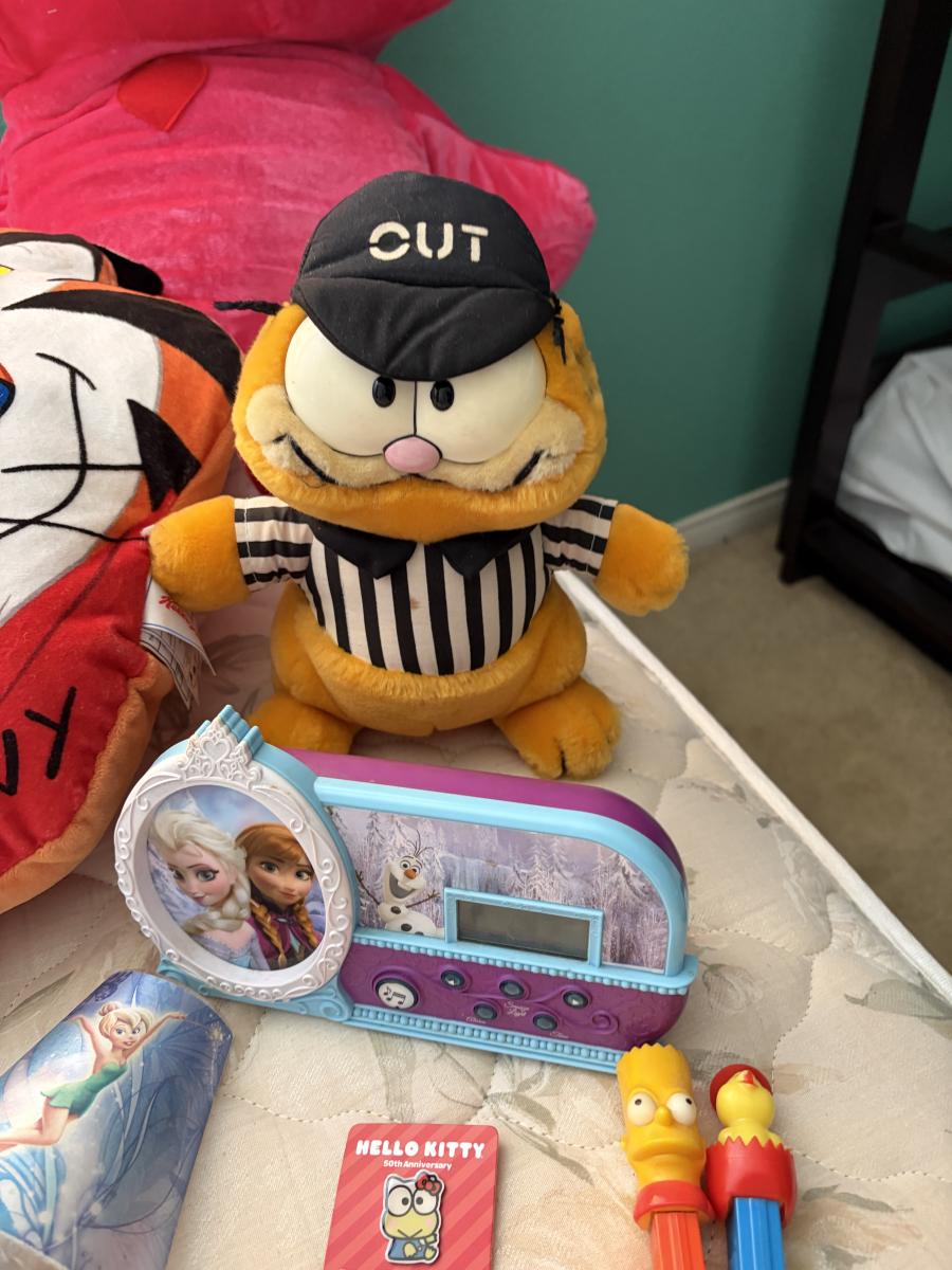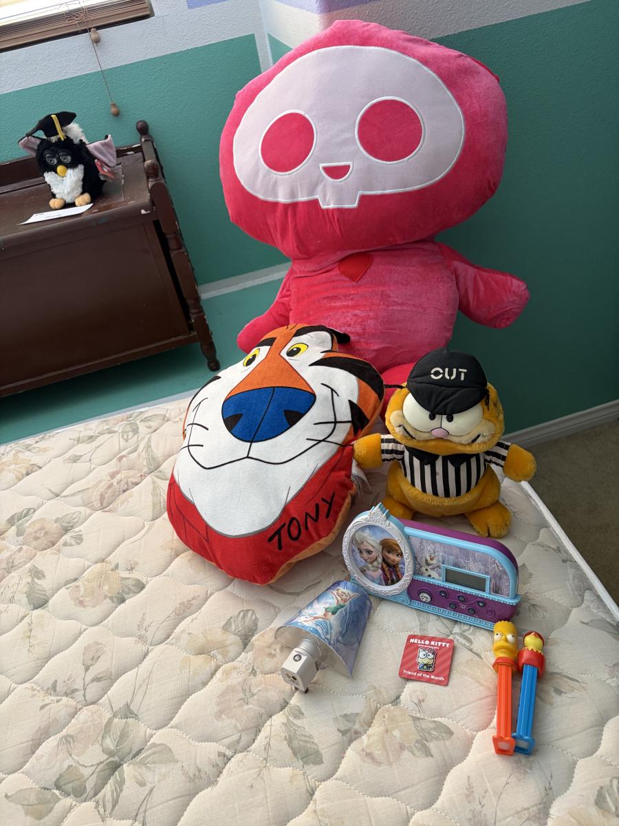 Three stuffed animals and toys