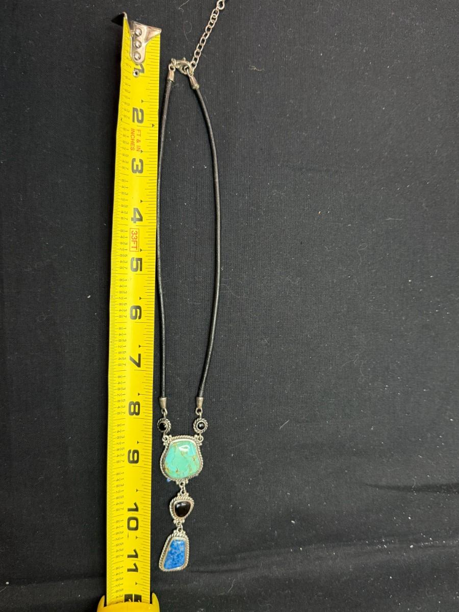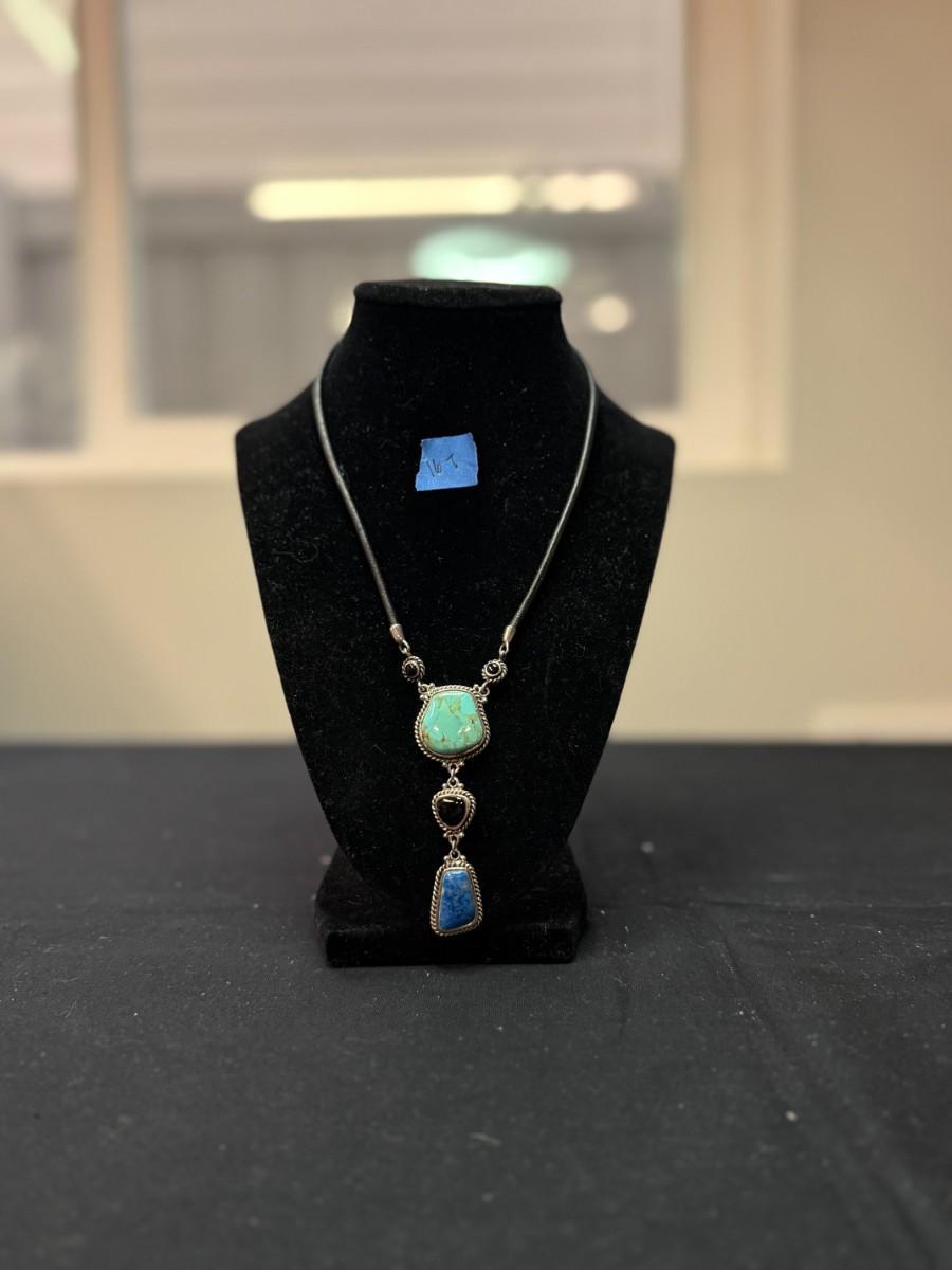 three teardrop necklace turquoise, black, and blue (925