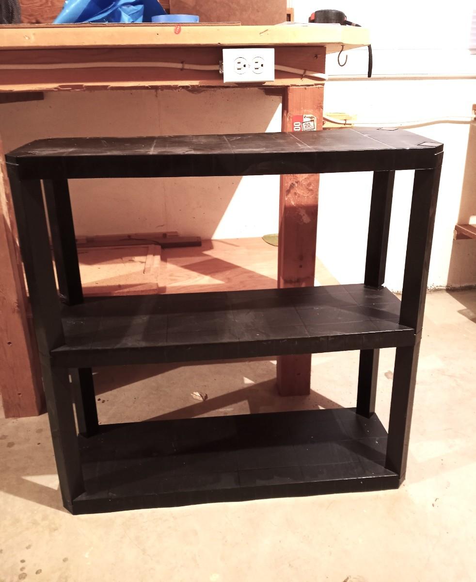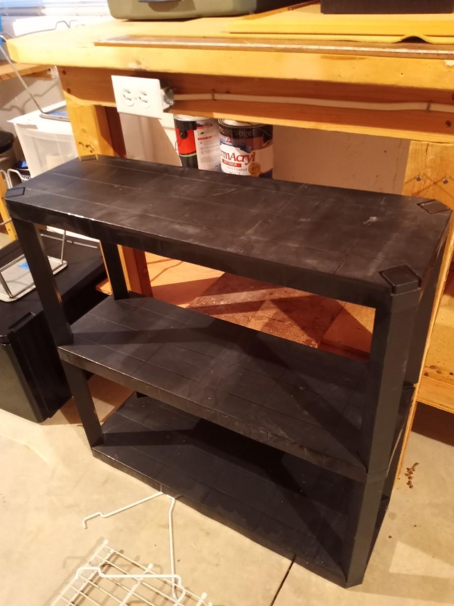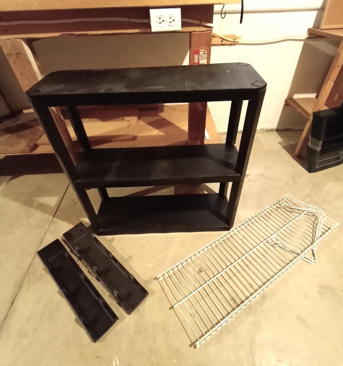 THREE TIER SHELF STAND APPROX. 30X10X29-TWO HANGING HOOK RACKS-WIRE SHELF APPROX. 36X12