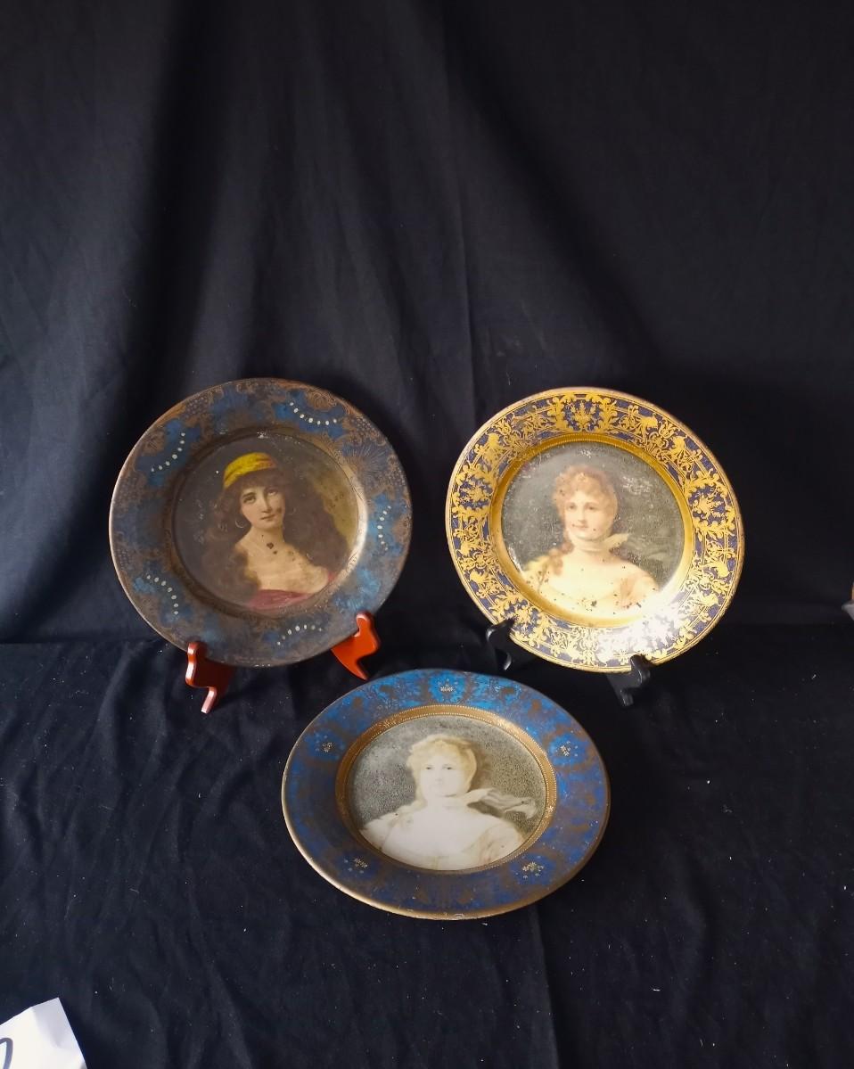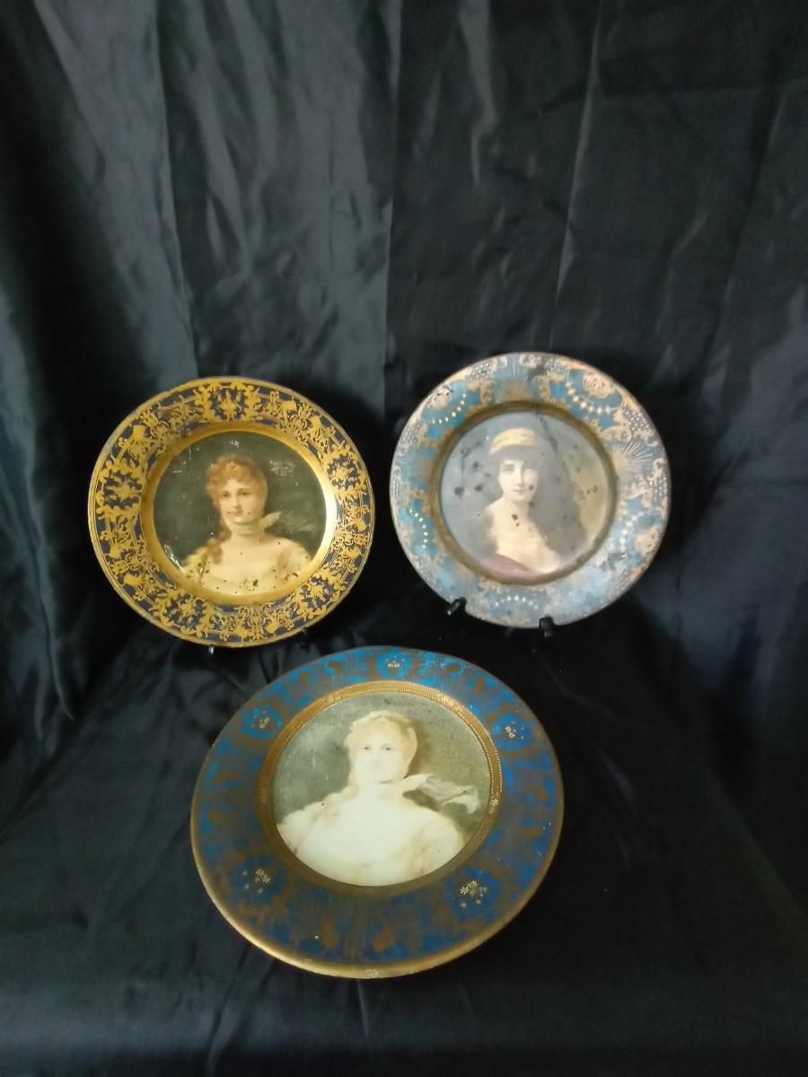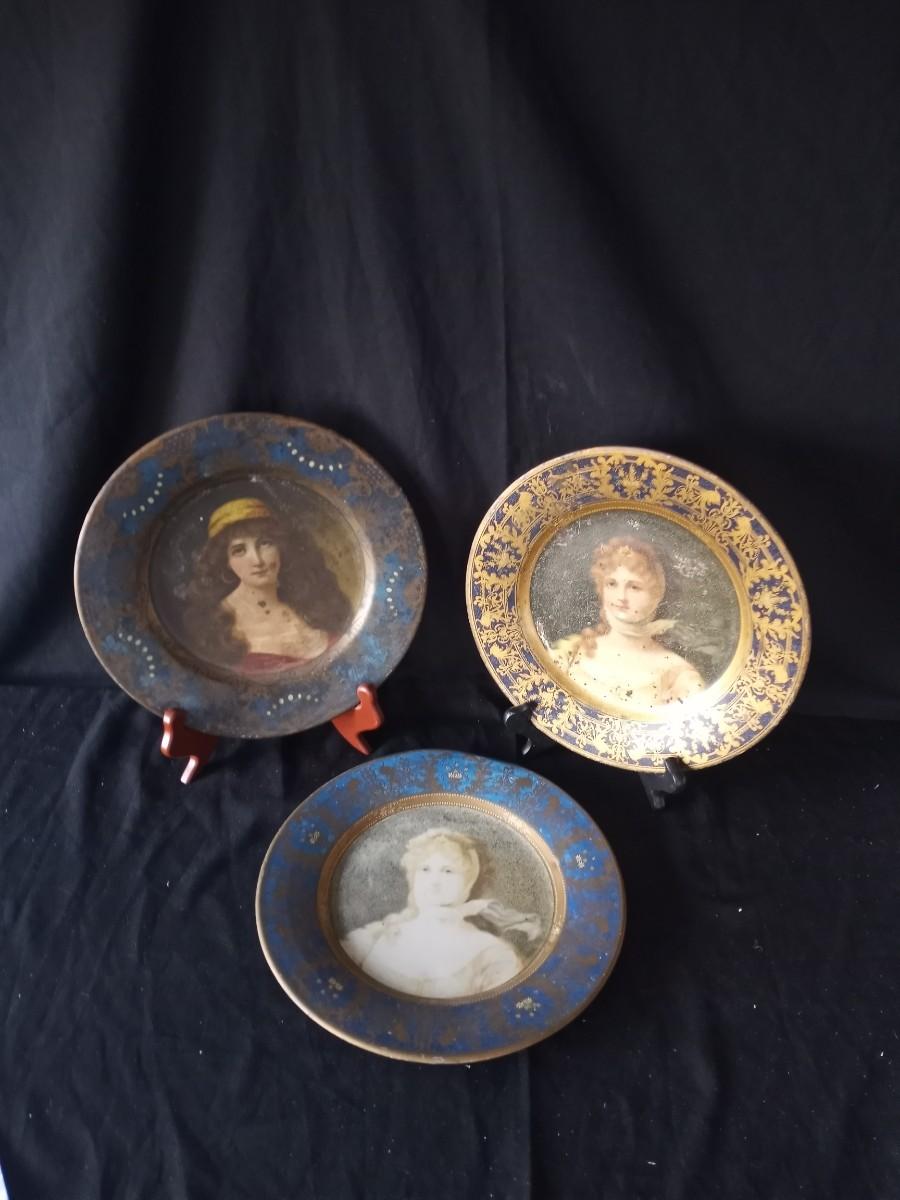 3 ANTIQUE TIN VIENNA ART PLATES 1905