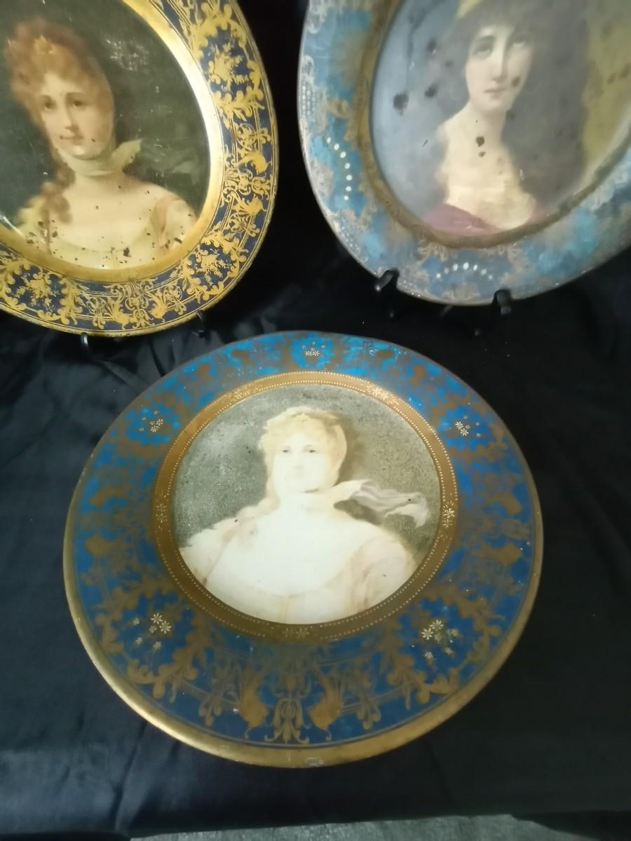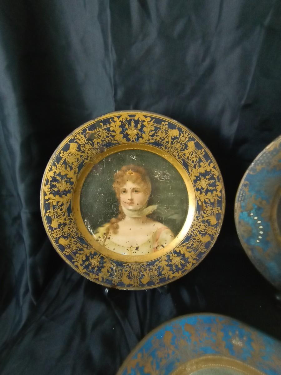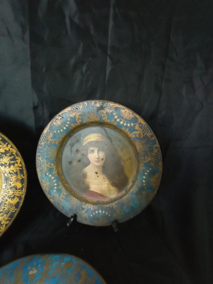 3 ANTIQUE TIN VIENNA ART PLATES 1905