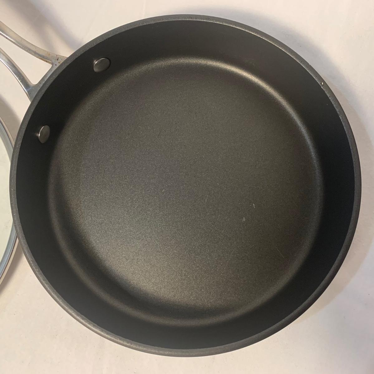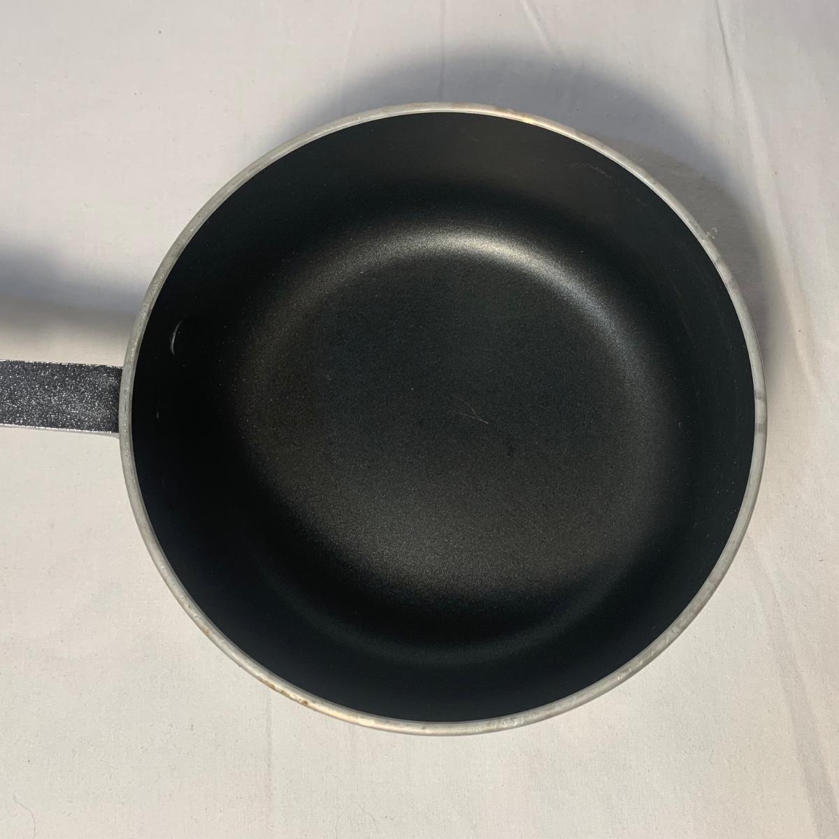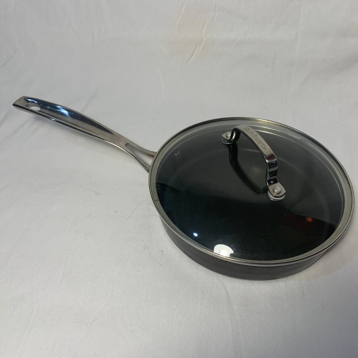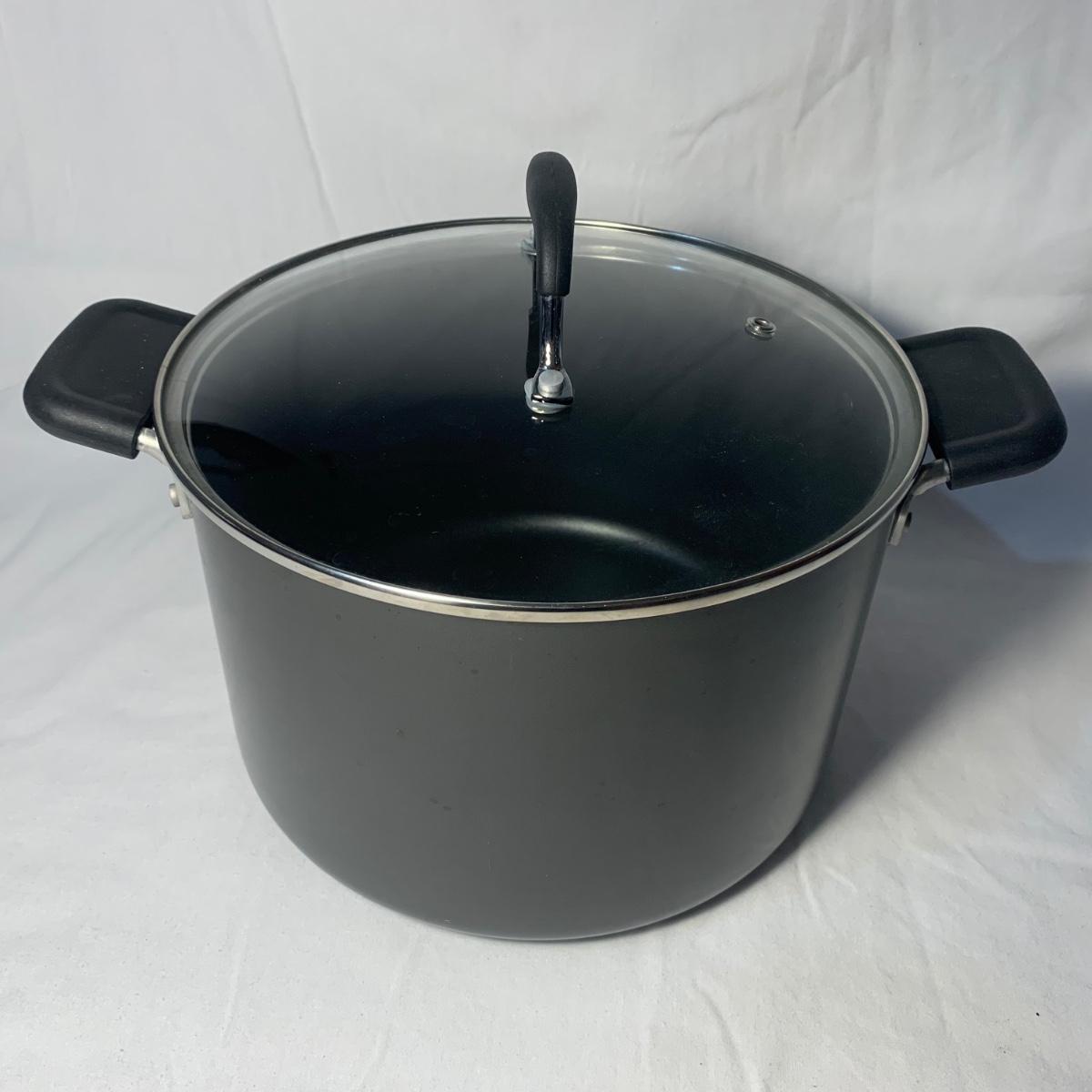 This lot includes three Titan Ware pots. One large soup pot with lid and two smaller lidded sauce pots. Lot also includes Cuisinart and Gotham Steel frying pans. Gotham Steel pan does not include a lid. All items are non-stick. See photos for more details.
