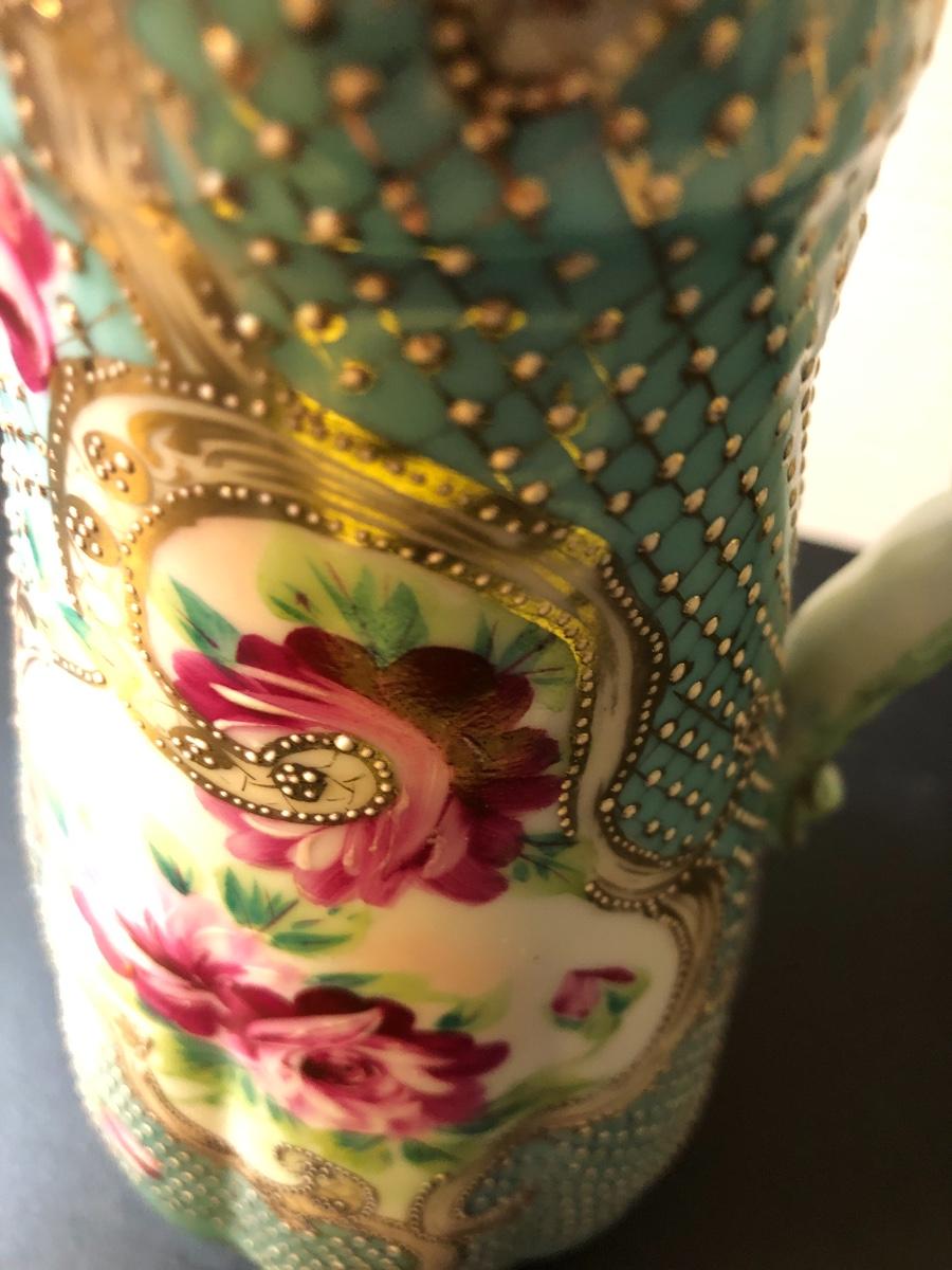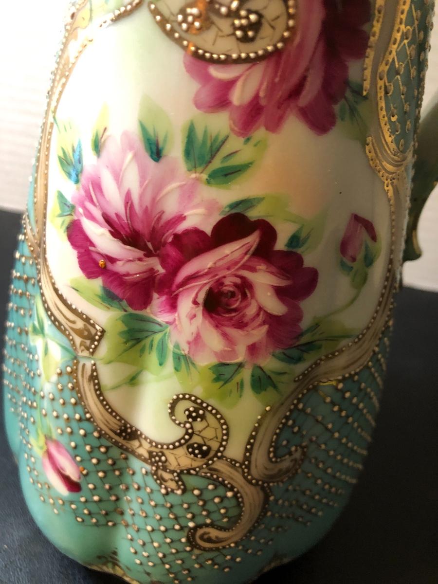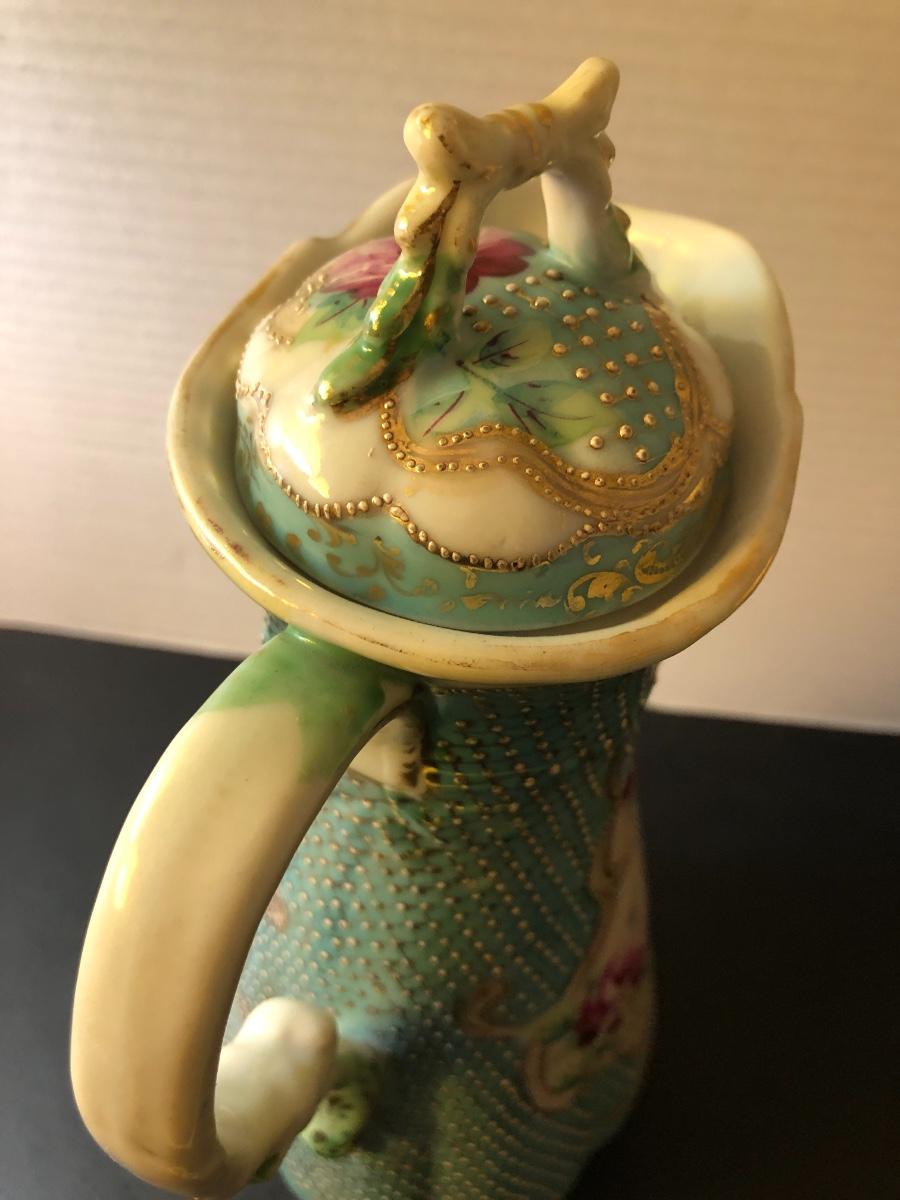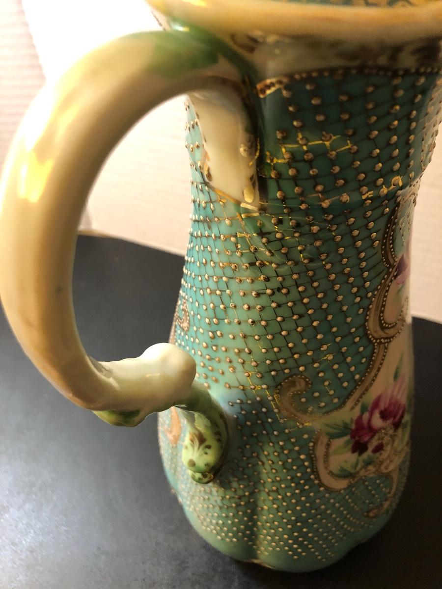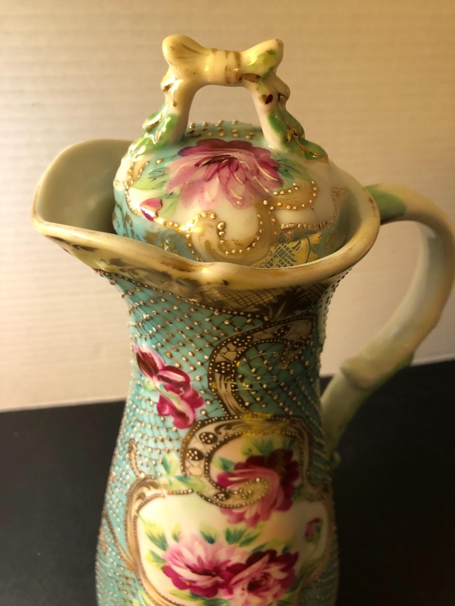 As always - NEVER A BUYER'S PREMIUM - NO CREDIT CARD FEES - All items start at $10 and are being auctioned with NO RESERVES to the high bidder. Bottom of lid to pitcher is chipped. See photos...