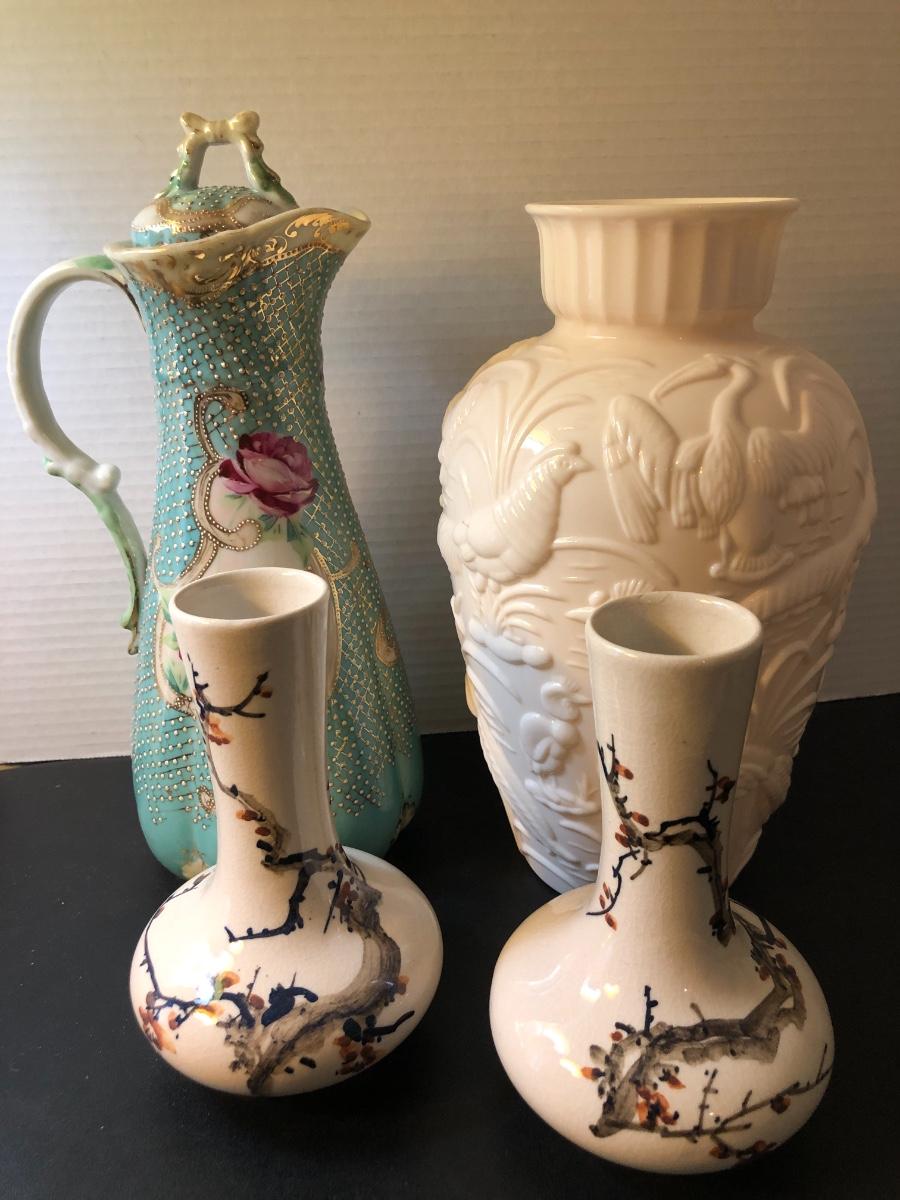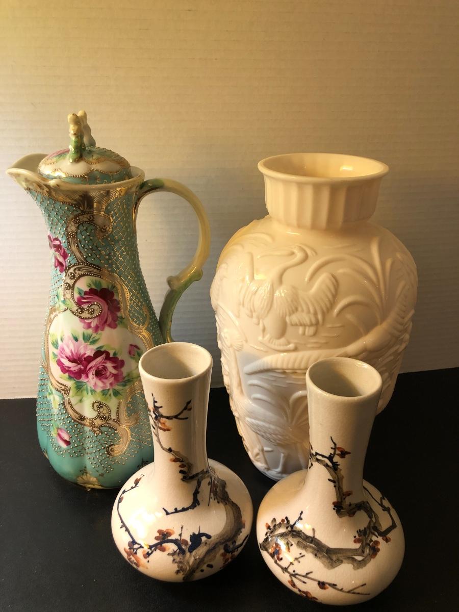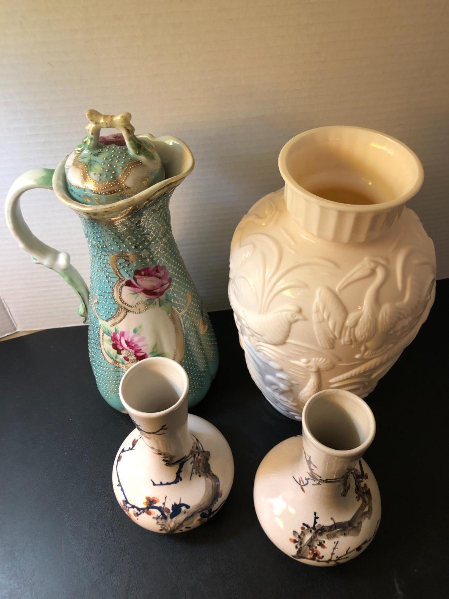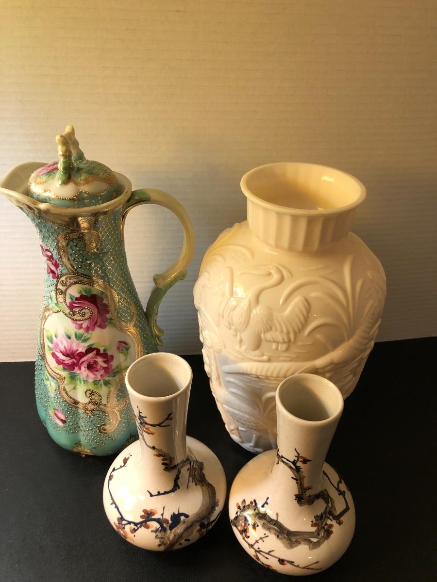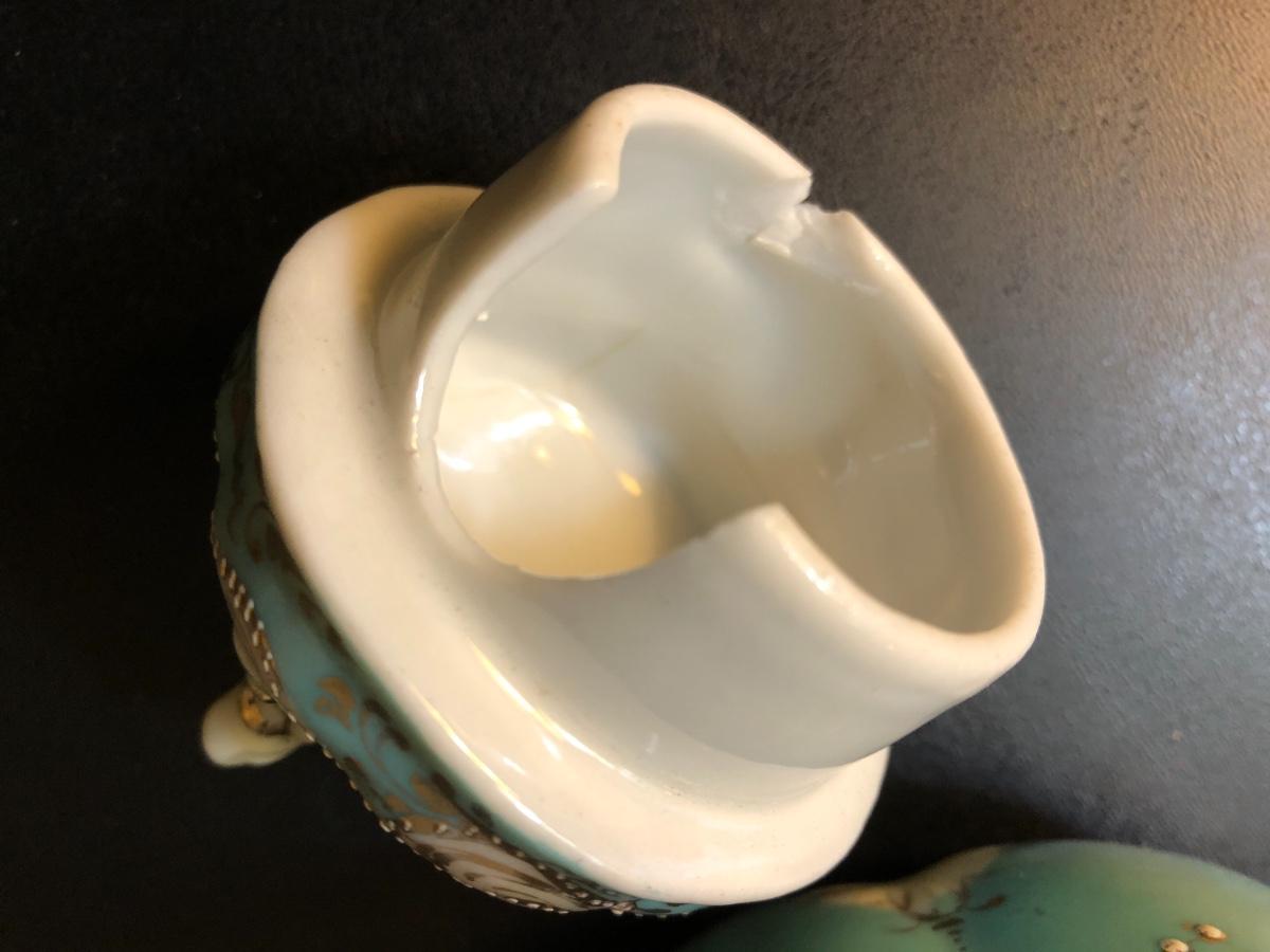 As always - NEVER A BUYER'S PREMIUM - NO CREDIT CARD FEES - All items start at $10 and are being auctioned with NO RESERVES to the high bidder. Bottom of lid to pitcher is chipped. See photos...