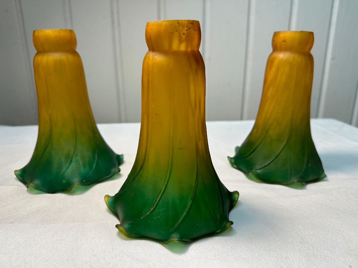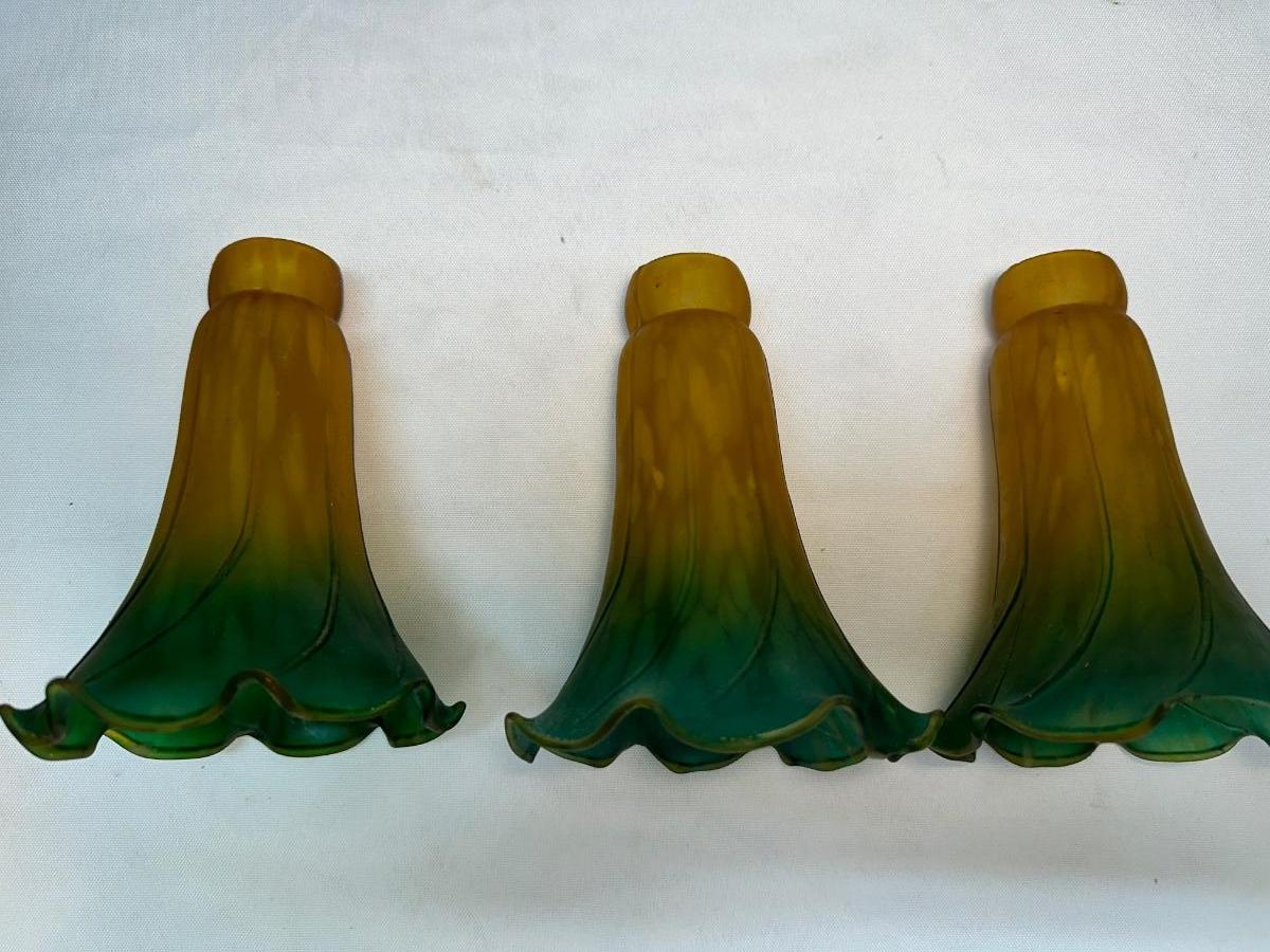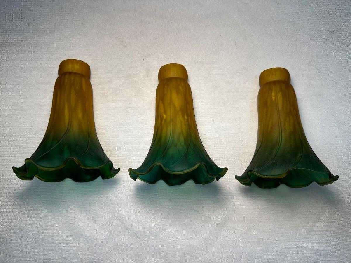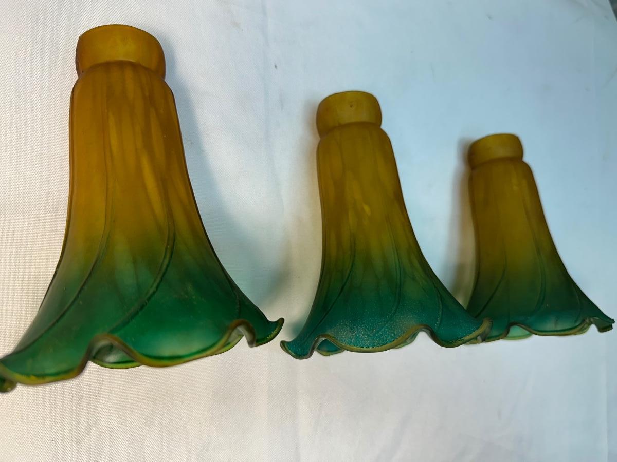 Three Vintage Amber, Green Lily Lamp Shades (See Description)