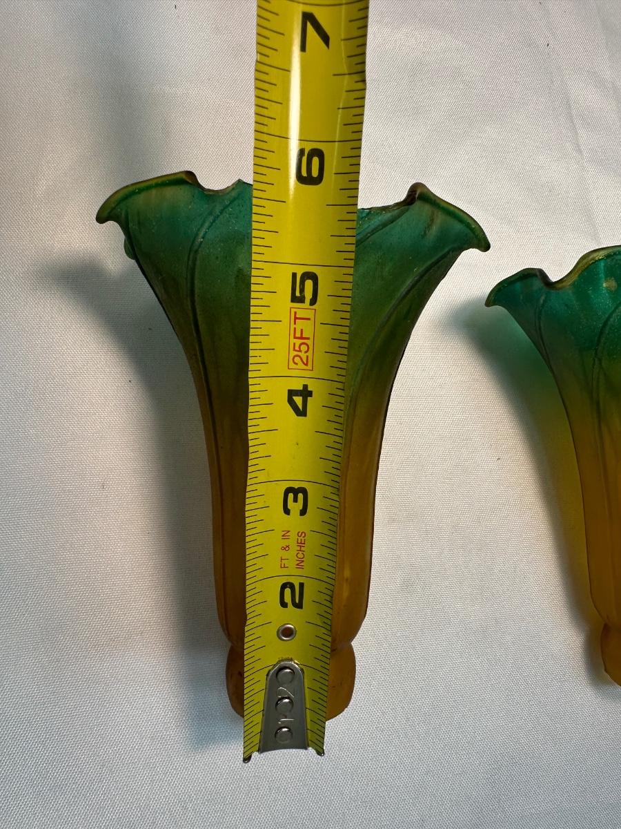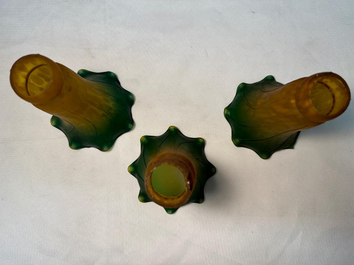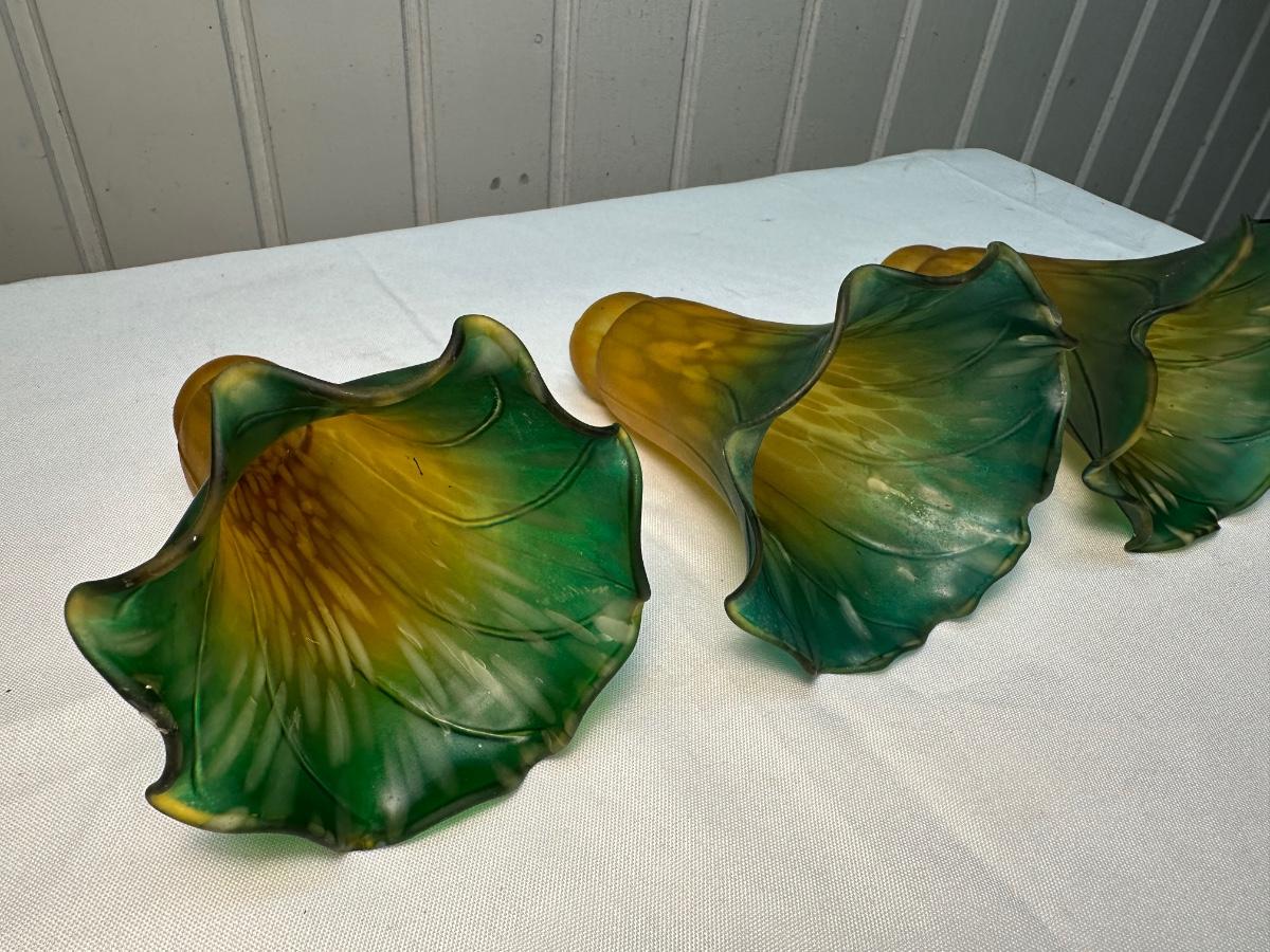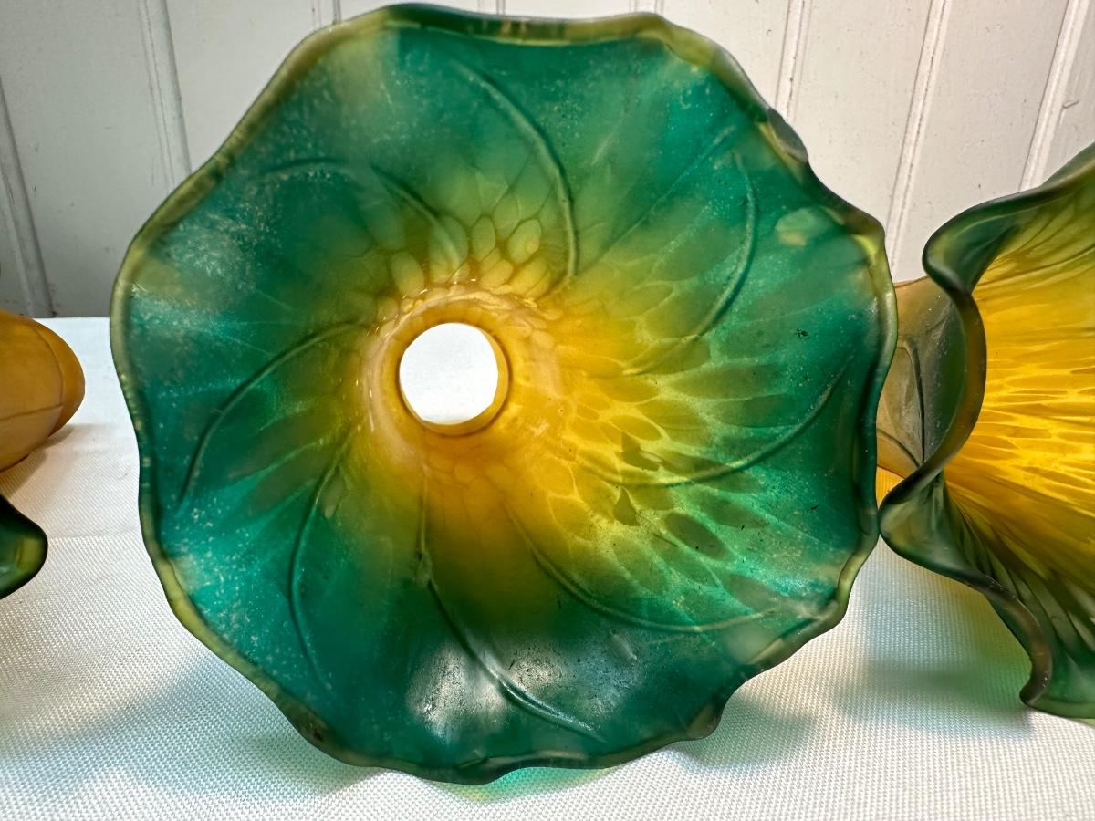 Three Vintage Amber, Green Lily Lamp Shades (See Description)