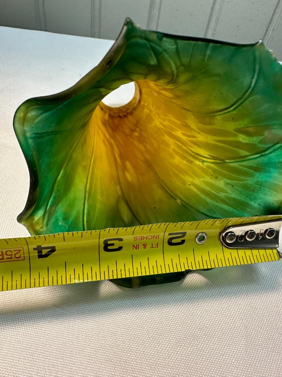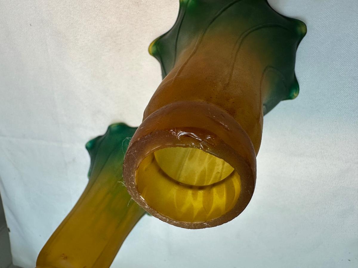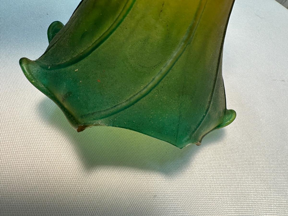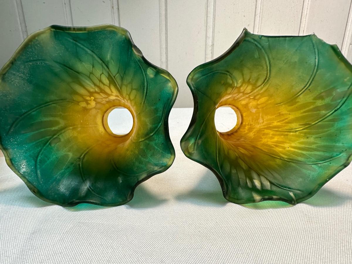 Three Vintage Amber, Green Lily Lamp Shades (See Description)