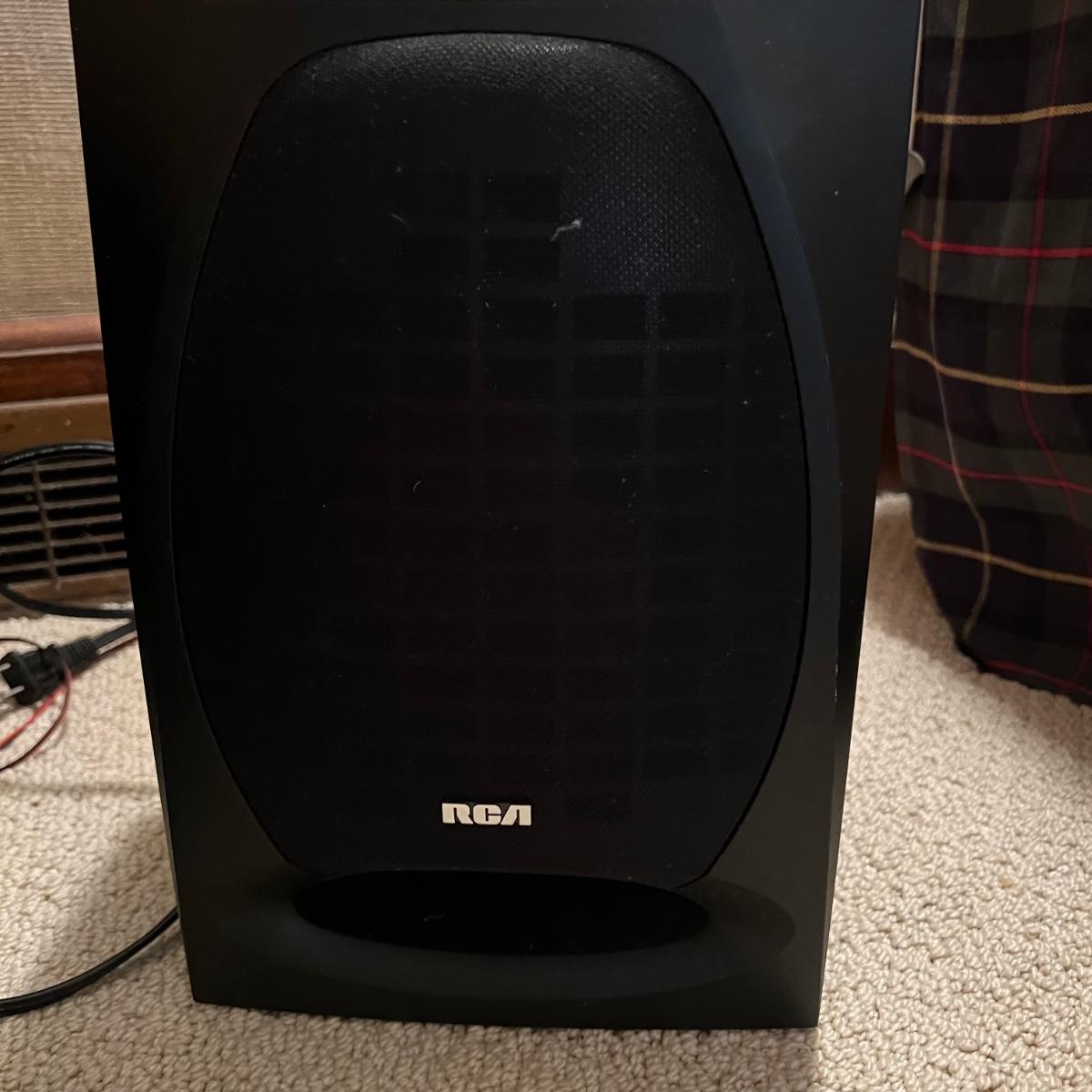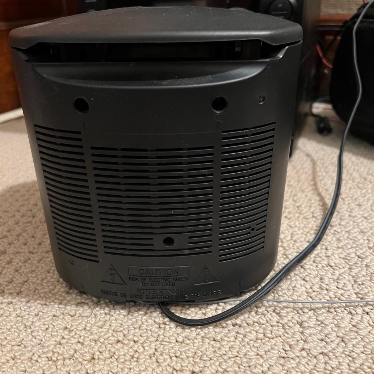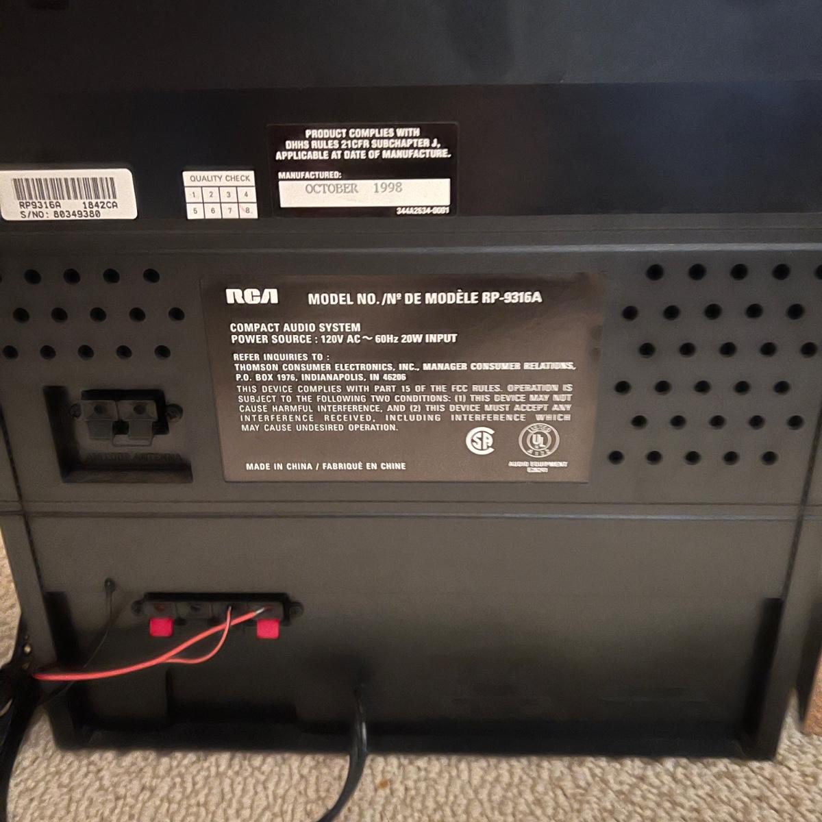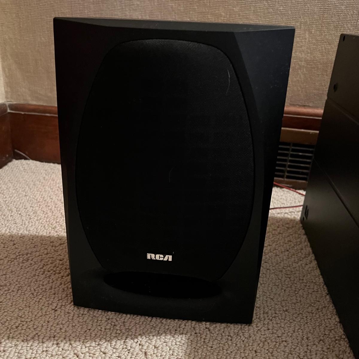 Three different Audio Units. A stand-alone Sony CD player, a JVC radio, cassette tape and CD box and a stacked cassette, radio and RCA CD, radio and duel cassette unit with two wired in RCA speakers. Some surface dust. All items powered on when plugged in.