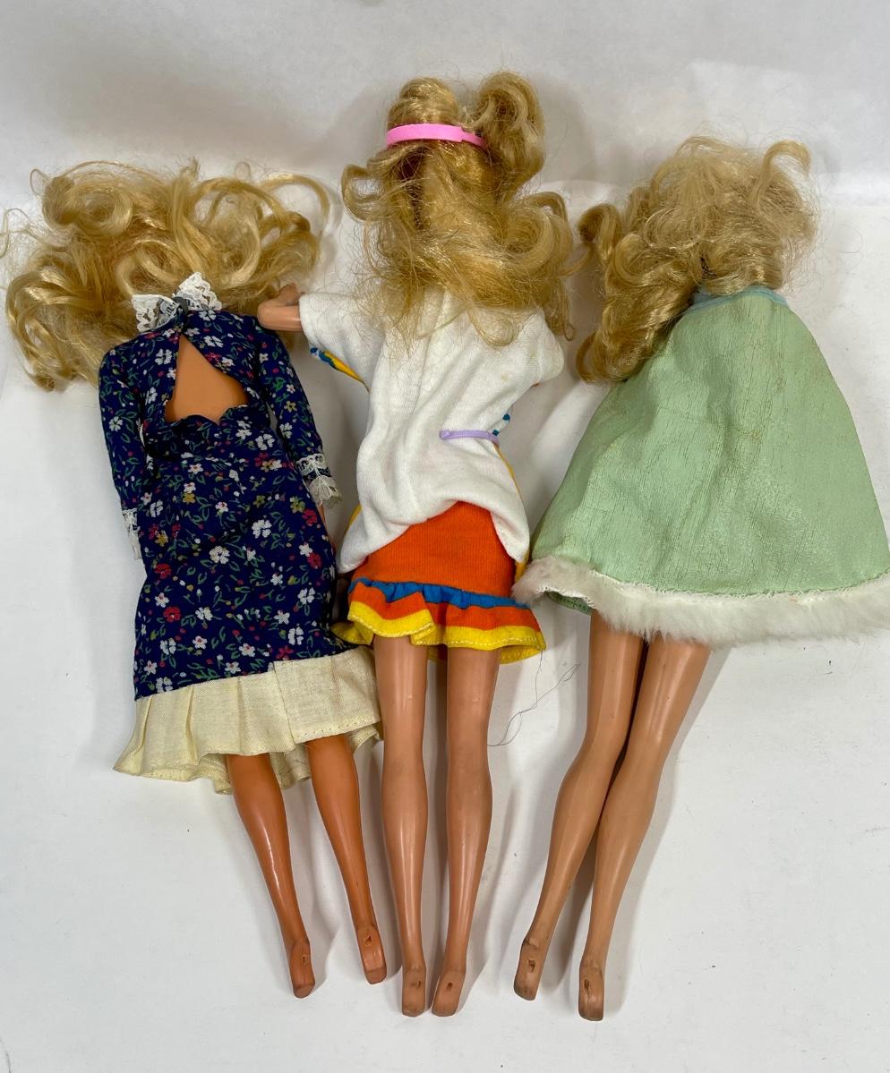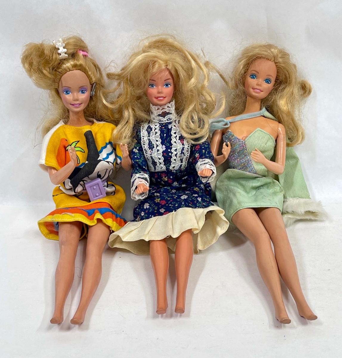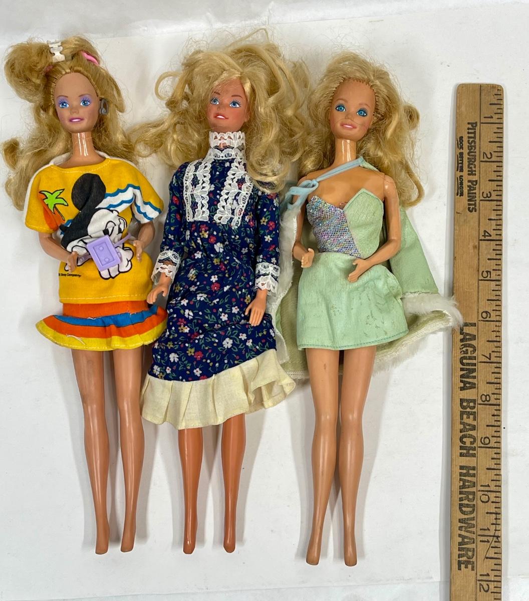 Three vintage Barbies Mickey Mouse dress, Prairie Dress, Cocktail Dress