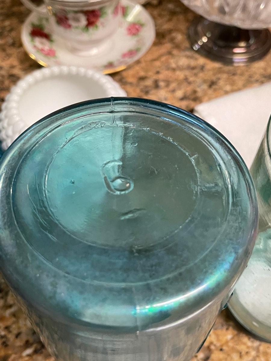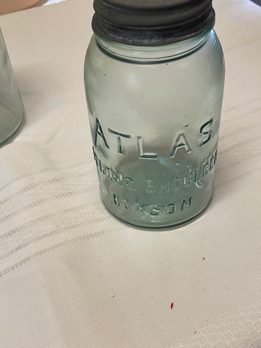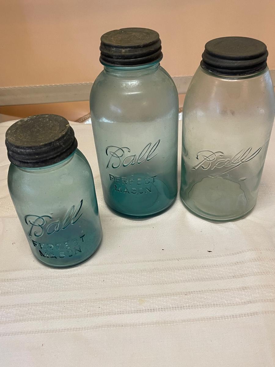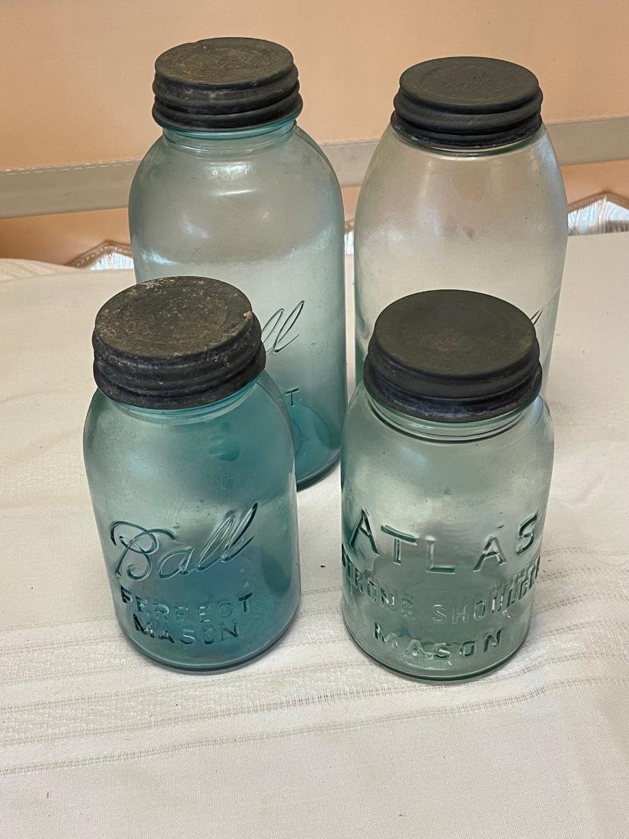 Three Vintage Blue Ball Mason Jars and One Vintage Atlas Blue Mason Jars
