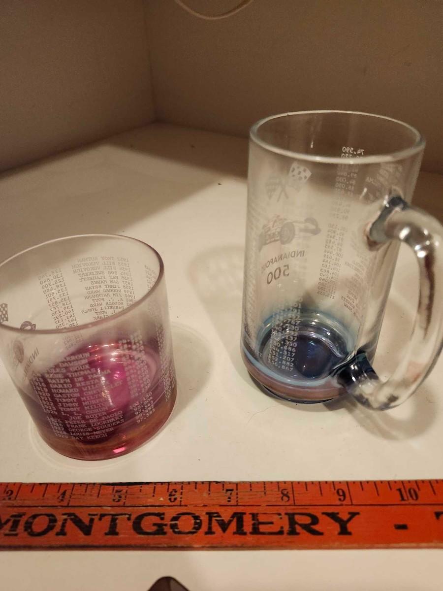 This glass mug weighs 9.4 ounces. 5-5/8” inches tall. Base is 2-1/4” inches in diameter and the rim is 2/3/4” inches in diameter.