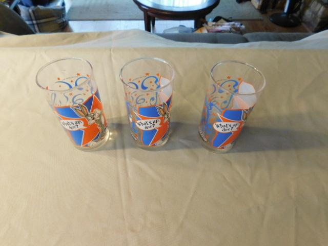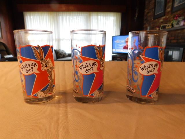 Three Vintage Bugs Bunny 'What's Up Doc?' Looney Tunes Collector Drinking Glasses