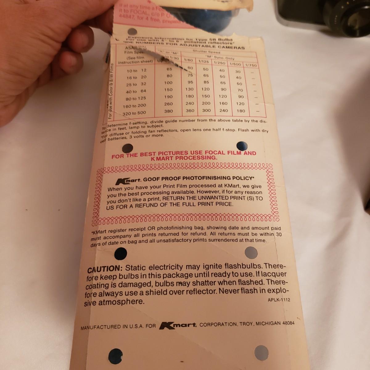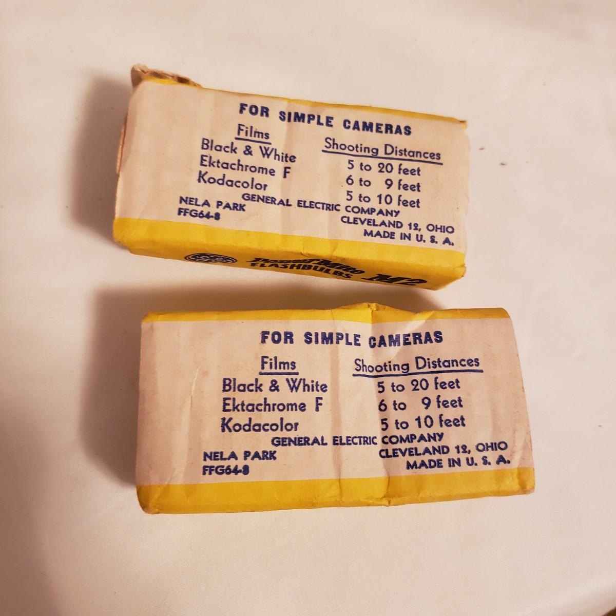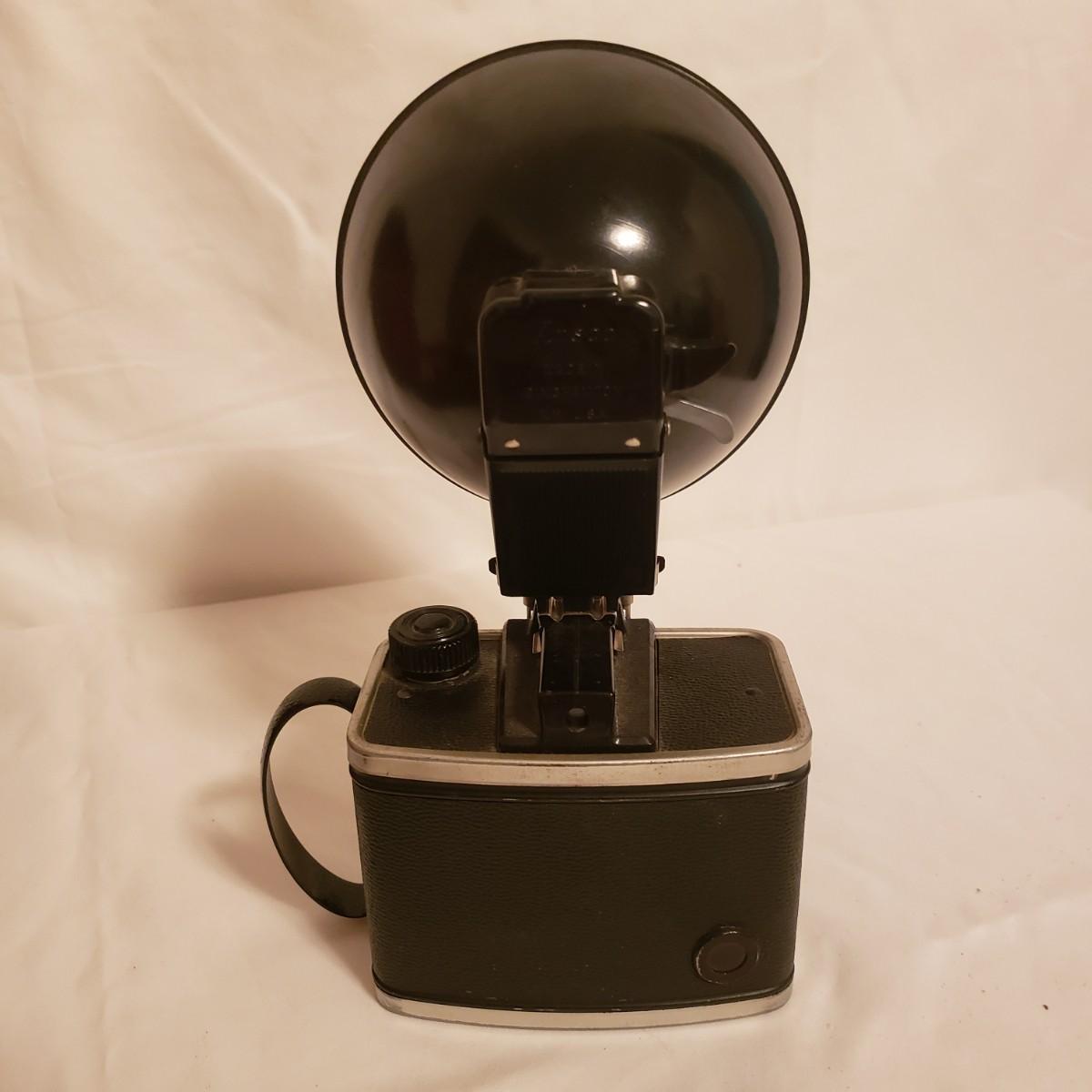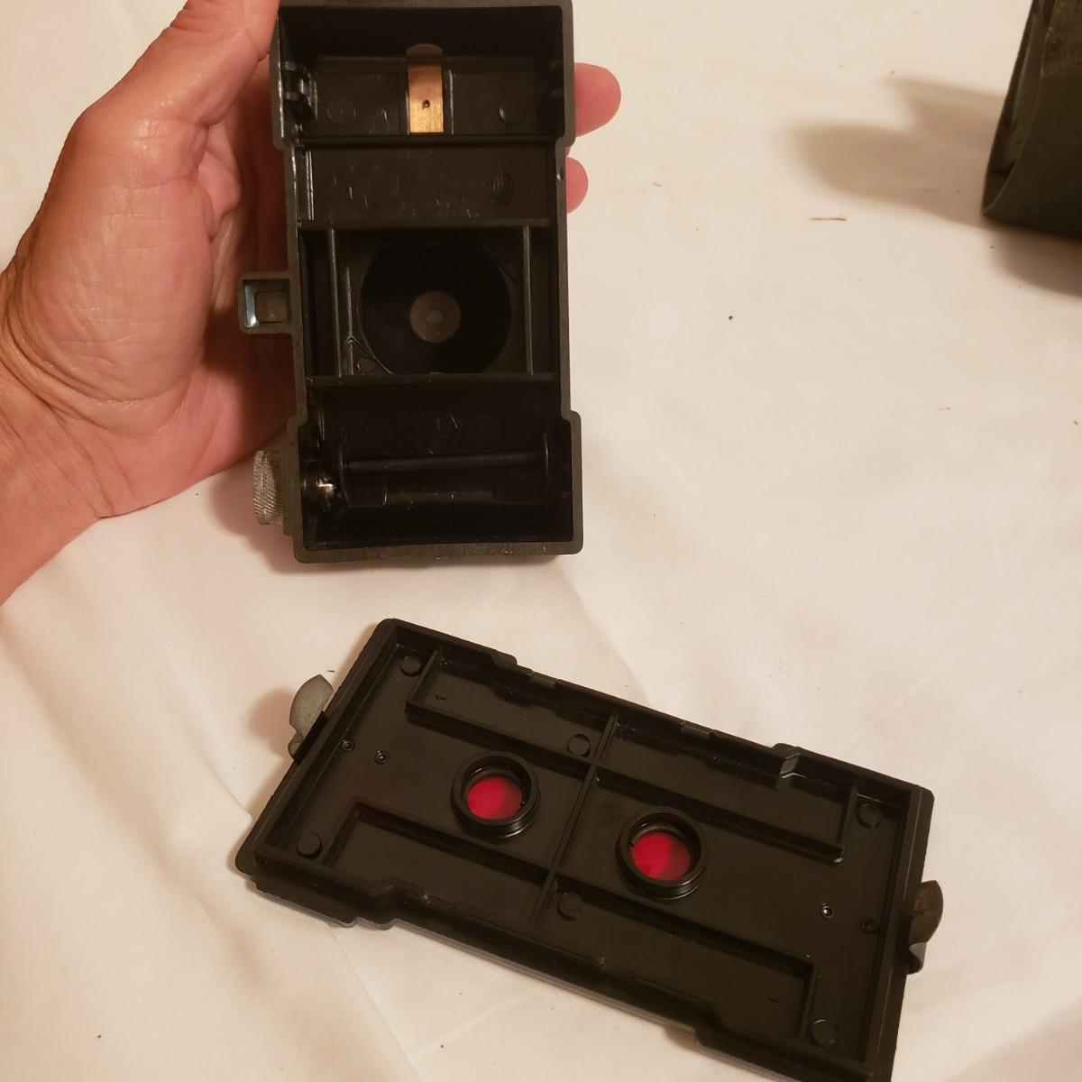This is a vintage camera lot with three cameras. The Kodak Brownie is the Starflash Outfit. Comes in the original box and has bulbs. The Falcon Miniature (5.5" x 2.5" x 3.5"H) comes in a hard case. The case appears to be hard cardboard or thin leather, its hard to tell. It still snaps! The Ansco camera comes in its original box! The leather handle is broken. Camera comes with blue bulbs from Kmart! See pictures for details.