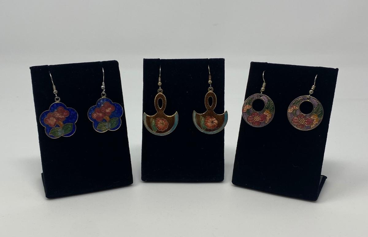 Three Vintage Cloisonne Enamel Dangle Earrings
