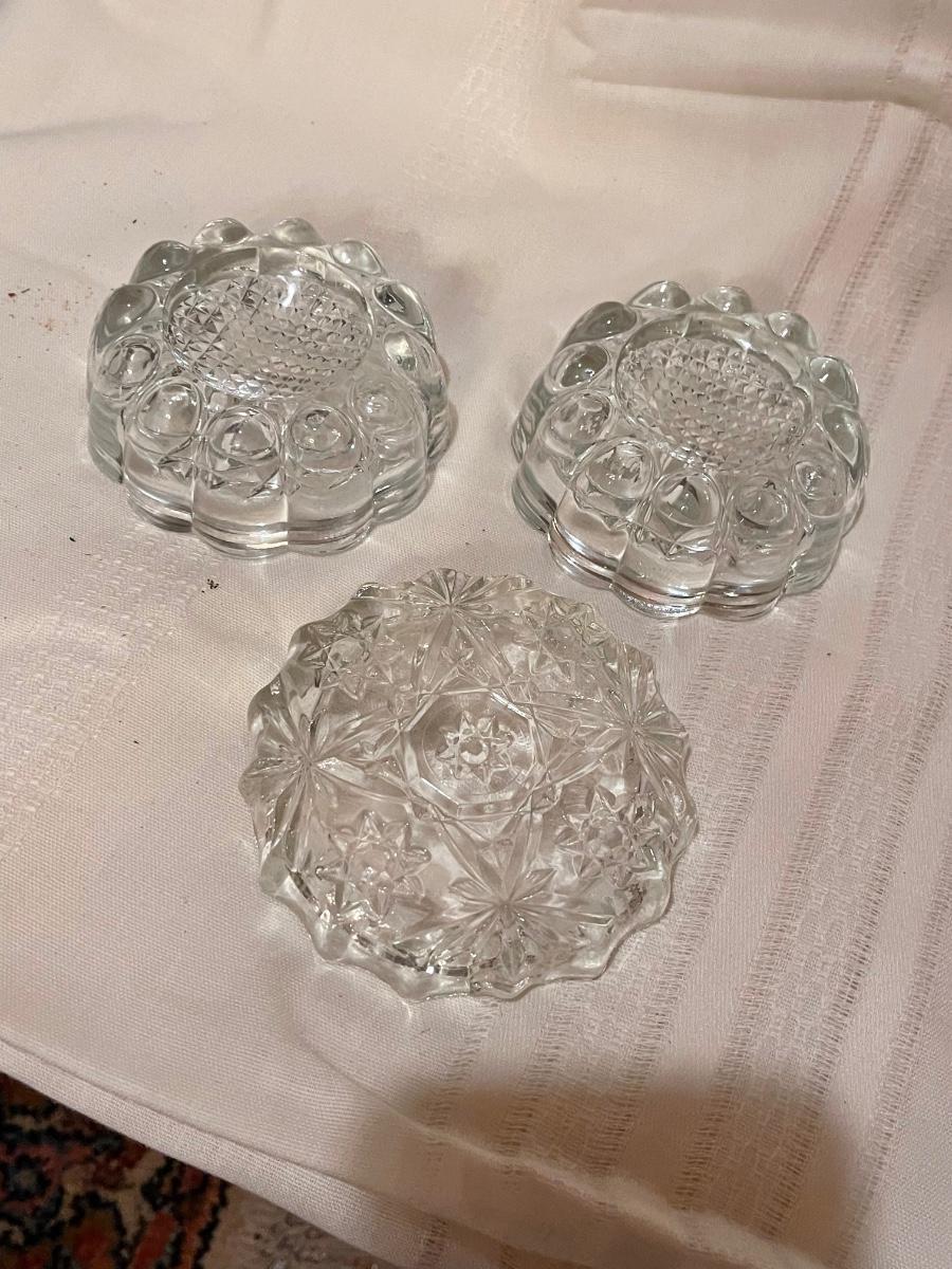 Two are 4" Old Harbor Crystal and one is Anchor Hocking 4" Star