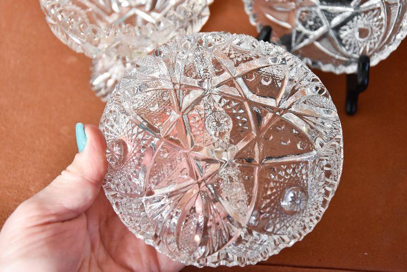 Lot 15: Three Vintage Cut Glass Candy Dishes