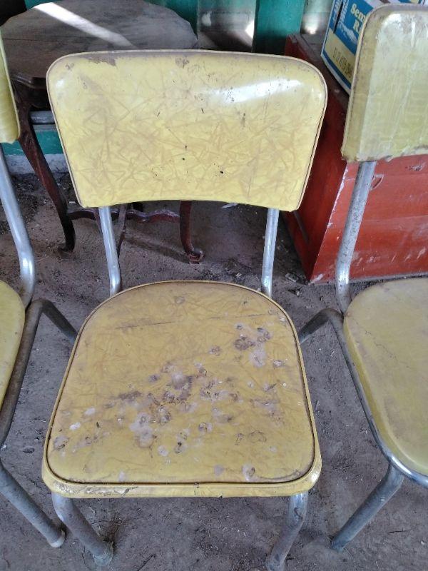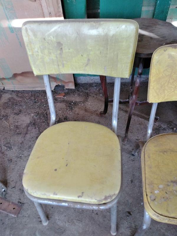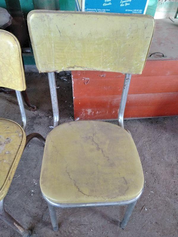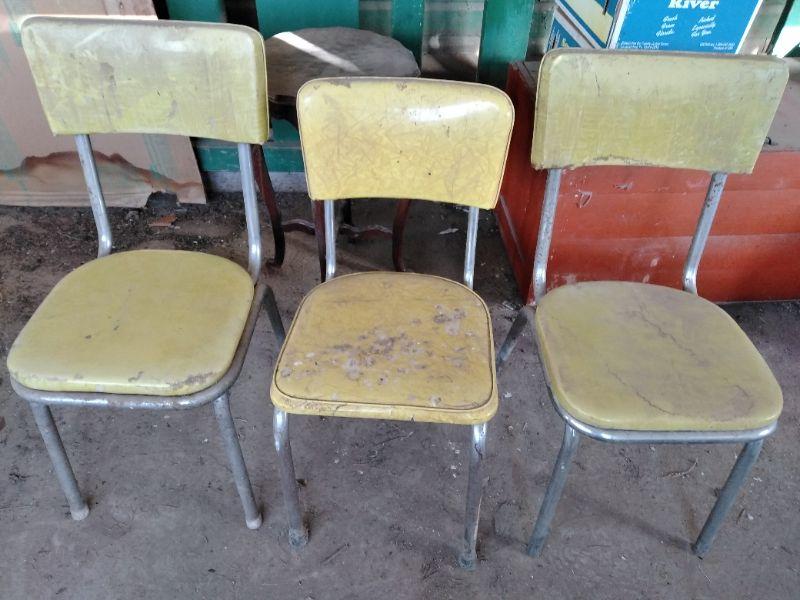 THREE VINTAGE VINYL AND METAL DINING CHAIRS