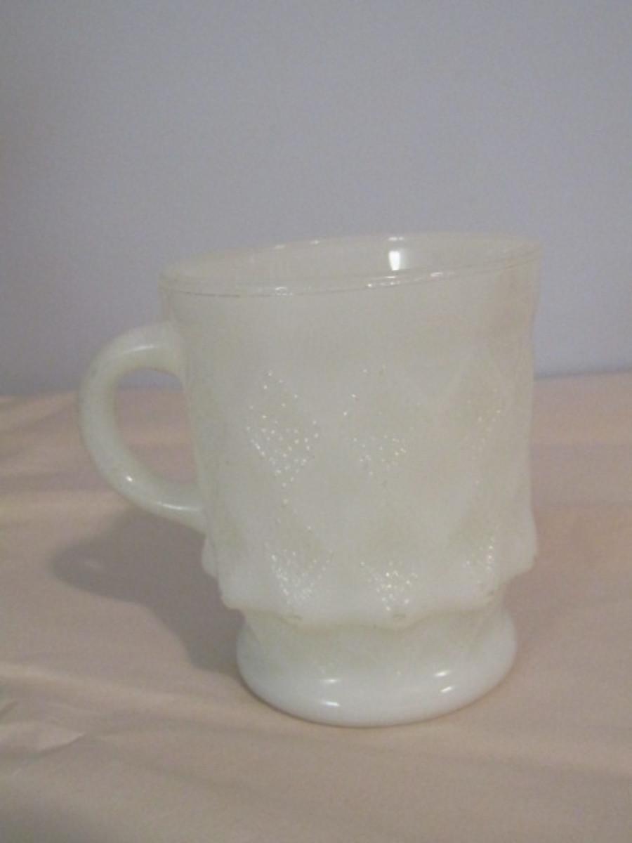 Three Vintage Fire King Pieces- Pie Plate with Metal Sleeve and Two Kimberly Mugs (E)