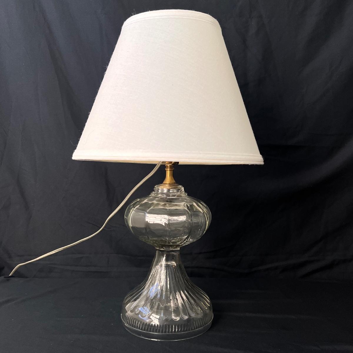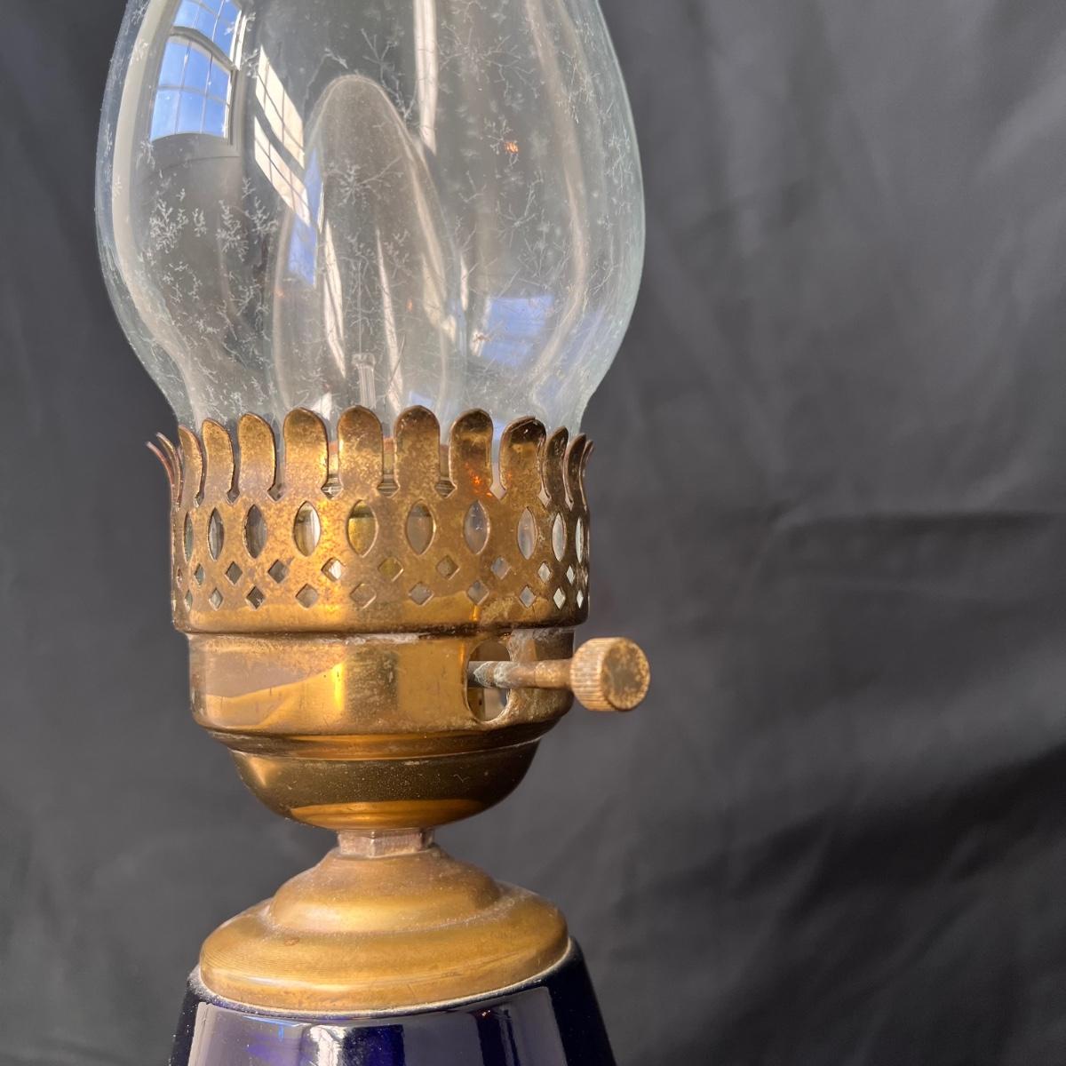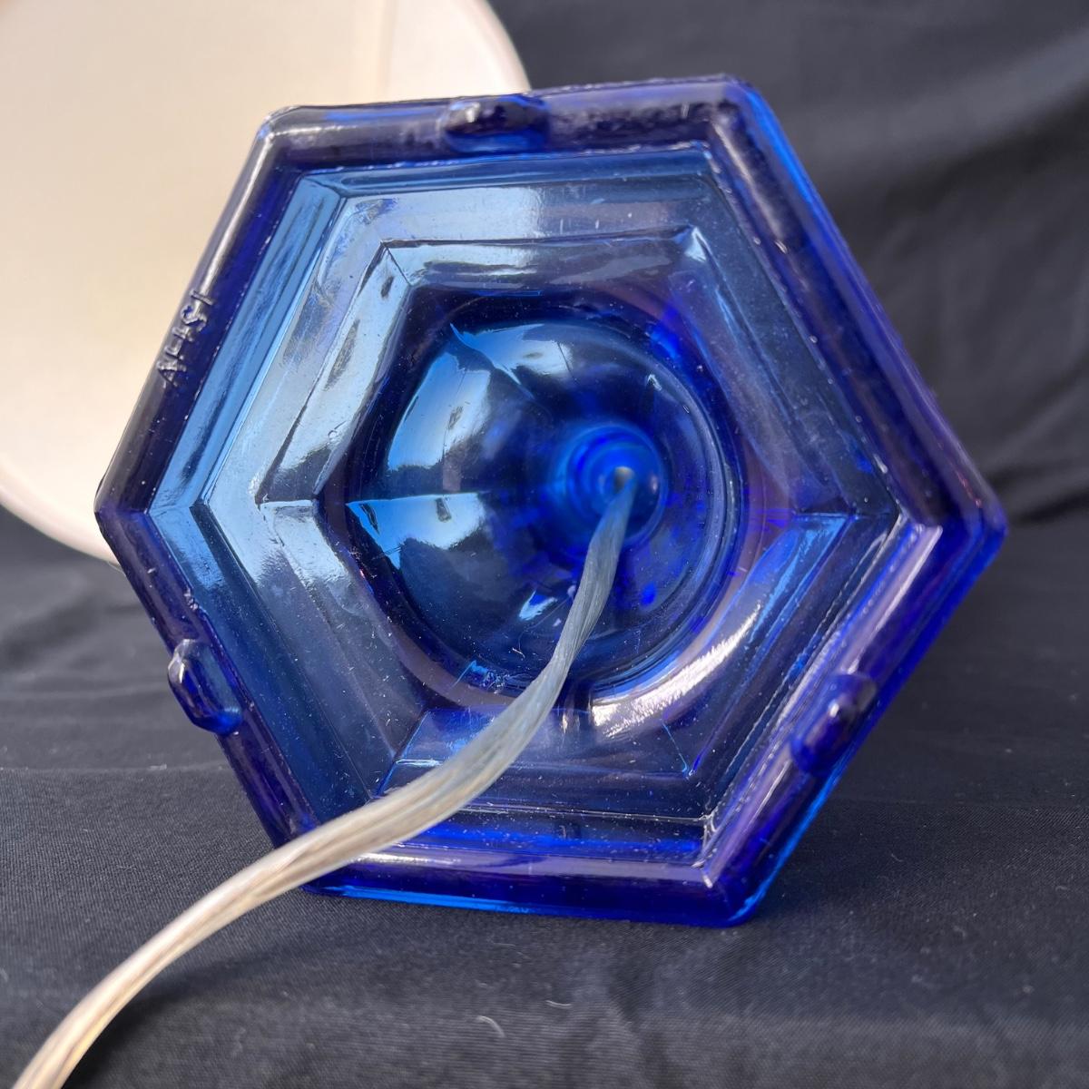 This lot includes three vintage glass lamps of various sizes. The clear lamp measures 11” x 19.5”H. The cobalt blue lamp with the cast iron base measures 6” x 19”H. The other blue lamp measures 11” x 21”H. Measurements are with globes and shades on. All lamps appear to be old oil lamps that have been converted into electric lamps. All lamps powered on when plugged in. Shipping available. Shipping can be costly. We suggest contacting our preferred local shipping provider, Postage Express, with dimensions and getting an estimate before bidding: (828) 255-9250 or shipping@postageexpressnc.com.