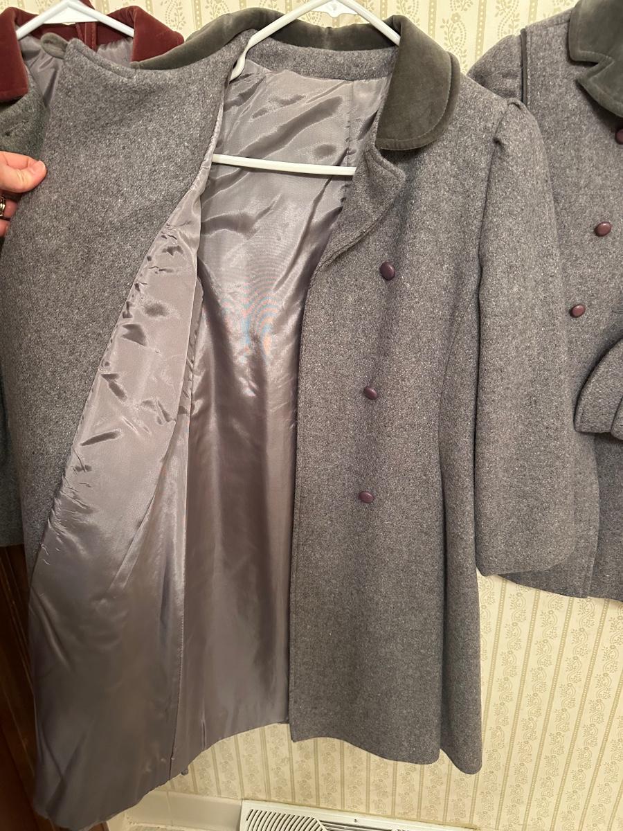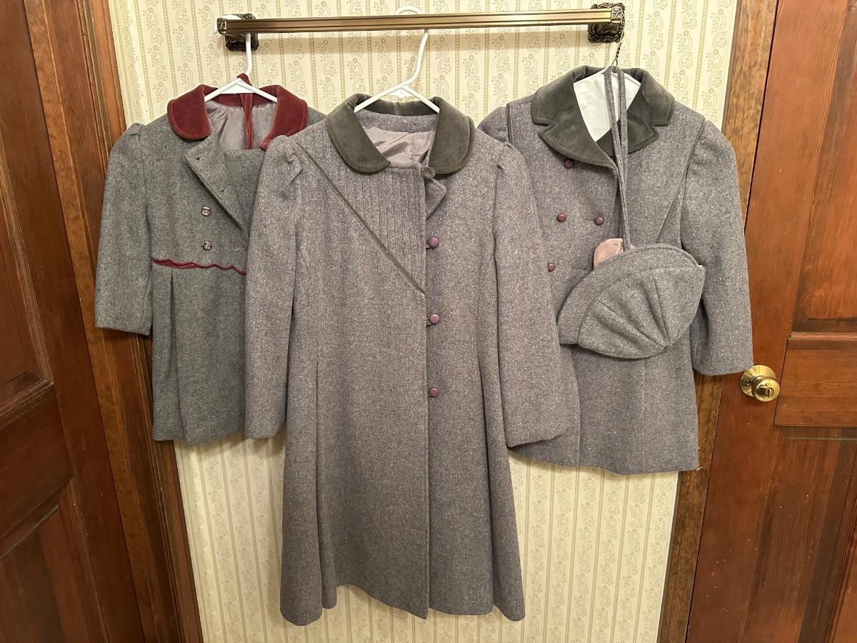 Three Vintage Grey Wool Coats, Girls Sizes 4, 6 & 14