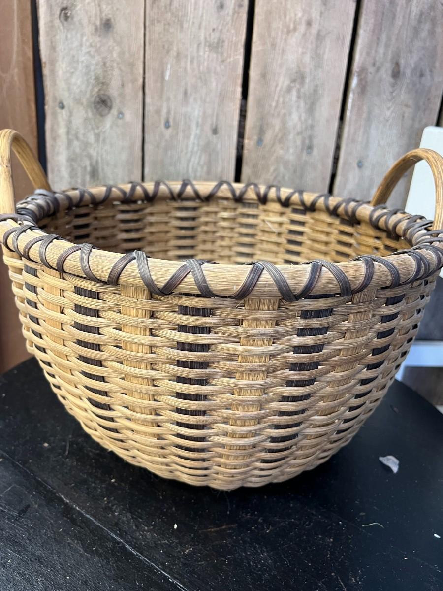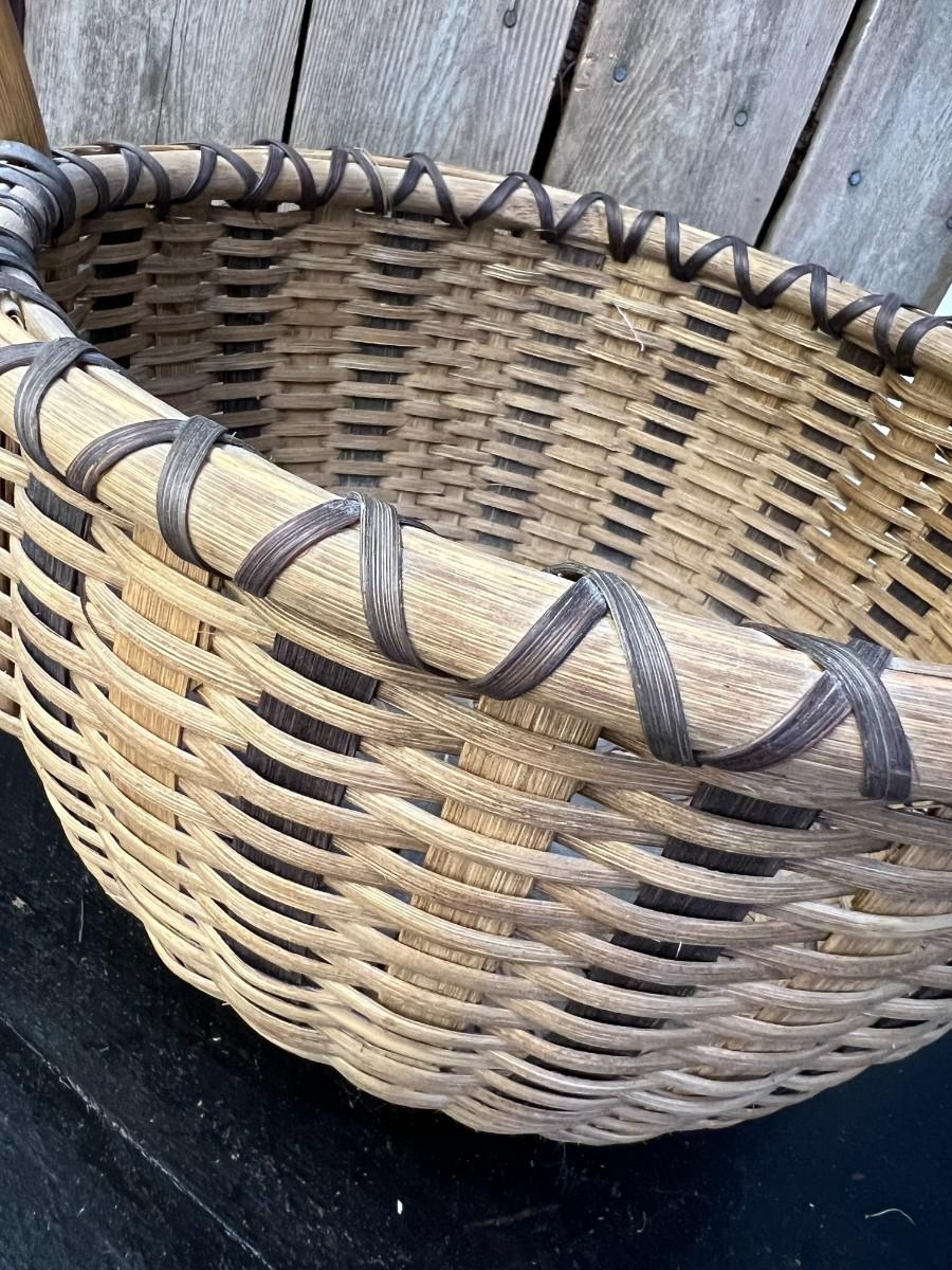 Mid-Century ear handled rattan handwoven round basket.